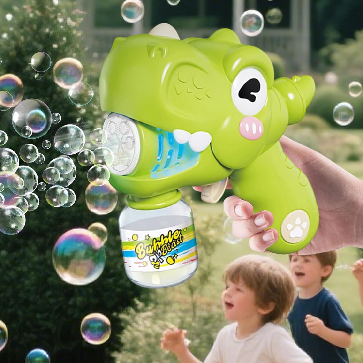 Divertimento Dinosauro Dinamico: Progettati con un tema fantastico da dinosauro cartone animato in colori rilassanti, i giocattoli per bolle per bambini simulano espressioni vivaci per fornire un divertimento senza fine e agiscono anche come coinvolgenti per foto o decorazioni per feste all'aperto, promuovendo la creatività e migliorando gli eventi family-friendly senza sforzo con un design dinamico che invita al gioco attivo e a momenti di condivisione in ambienti esterni. Uso Pratico e Semplice: Le bacchette per bolle semplificano il processo di utilizzo senza necessitare di batterie o montaggi complessi, permettendo di premere il pulsante per spruzzo continuo di bolle che si adatta perfettamente a scenari di condivisione in gruppo, aumentando il divertimento e l'interazione durante raduni all'aperto o incontri di gioco, assicurando una maneggevolezza senza sforzo per tutte le età e offrendo un'esperienza di gioco e accessibile per bambini e adulti in Funzionalità Senza Fuoriuscite: Queste bacchette per bolle per bambini sono realizzate con una struttura robusta e una tenuta avanzata per evitare fuoriuscite anche se inclinate, permettendo ai bambini di giocare senza interruzioni in ambienti come cortili o parchi giochi, mantenendo pulizia e semplicità d'uso per i caregiver, grazie a una tecnologia che favorisce un divertimento continuo e sicuro in diverse occasioni ricreative. Giocattoli Bolle per Bambini: Questi giocattoli per bolle uniscono materiali sicuri a un design ergonomico, riducendo il fastidio da uso prolungato e consentendo un divertimento senza preoccupazioni per i bambini durante appuntamenti di gioco o attività ricreative in cortile. La presa facile e le superfici lisce assicurano comfort e protezione, con una forma che previene irritazioni e favorisce ore di gioco piacevole con le bolle all'aperto, ideale per l'intrattenimento dei giovani utenti. Sviluppo Abilità Pratiche: Le bacchette per bolle con bocca di dinosauro mobile permettono agli utenti di controllarne l'apertura e la chiusura, promuovendo la coordinazione manuale e il pensiero immaginativo durante il gioco all'aperto o le attività di familiare. Questa interazione creativa genera momenti gioiosi e divertenti, supportando lo sviluppo delle capacità cognitive e motorie in situazioni ludiche, come picnic o riunioni, il gioco pratico e l'immaginazione sono valorizzati