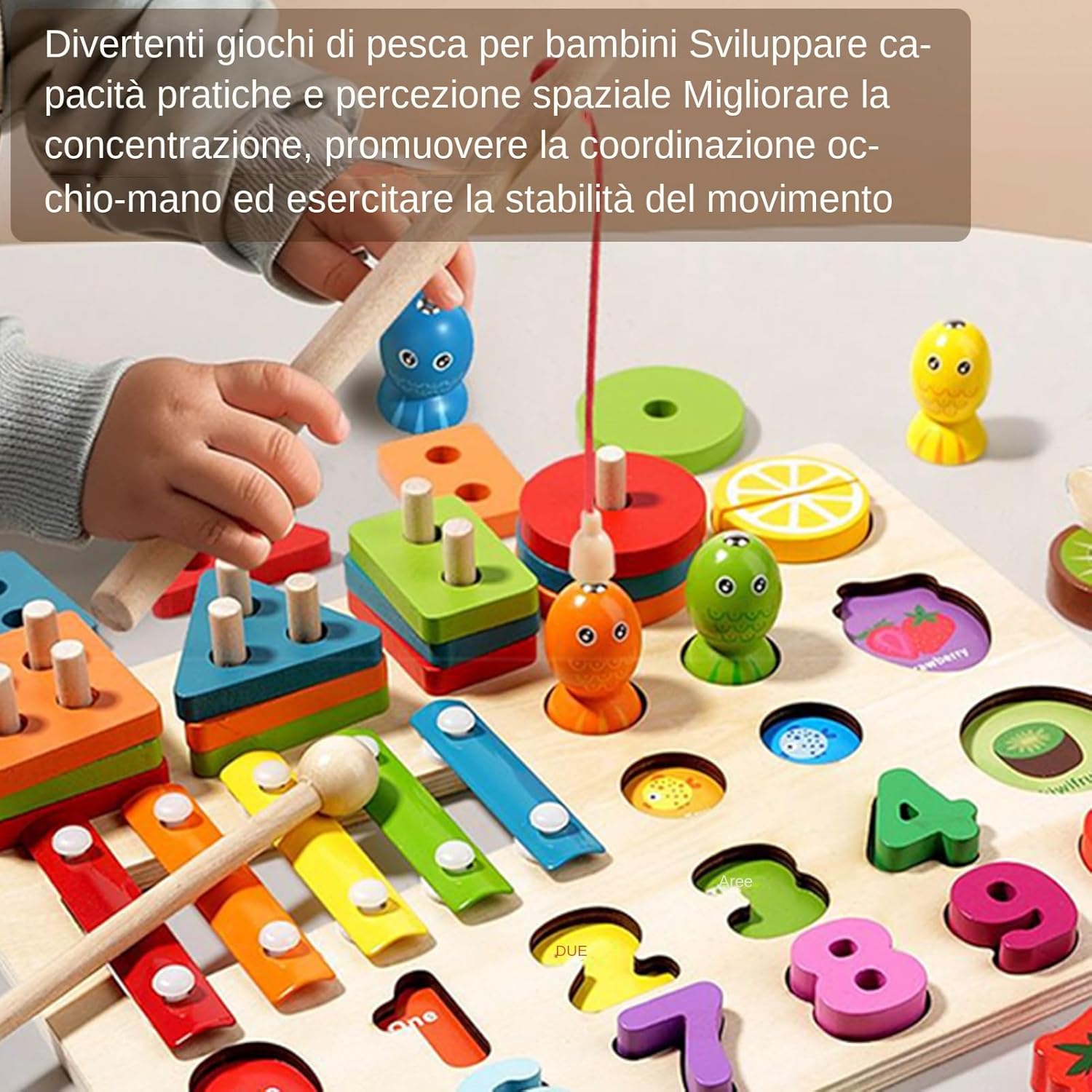 Regalo Creativo: Incoraggia lo sviluppo cognitivo infantile mentre sperimentano il divertimento di ordinare le forme, eccellente che dimostra attenzione e favorisce la loro creatività illimitata e uso immaginativo nelle fasi di crescita Sicurezza Garantita: Materiale in legno spesso non facile da danneggiare, con finitura levigata per superfici uniformi, previene imperfezioni e garantisce comfort durante le lunghe sessioni di gioco infantile Resistenza: Combinando legno naturale con vernice ad acqua, offre una texture soffice ideale per la pelle sensibile dei bambini, priorizzando salute e comfort durante il gioco. Scopi Versatili:Coinvolge le menti giovani combinando giochi di forme, riconoscimento numerico e identificazione frutta, rafforzando l'attenzione, le abilità di coordinazione e l'amore per la scoperta Semplice da usare: L'interazione con moduli multipli stimola il pensiero logico, gettando le basi per lo sviluppo cognitivo precoce, promuovendo abilità motorie fini e capacità esplorative attraverso un utilizzo intuitivo