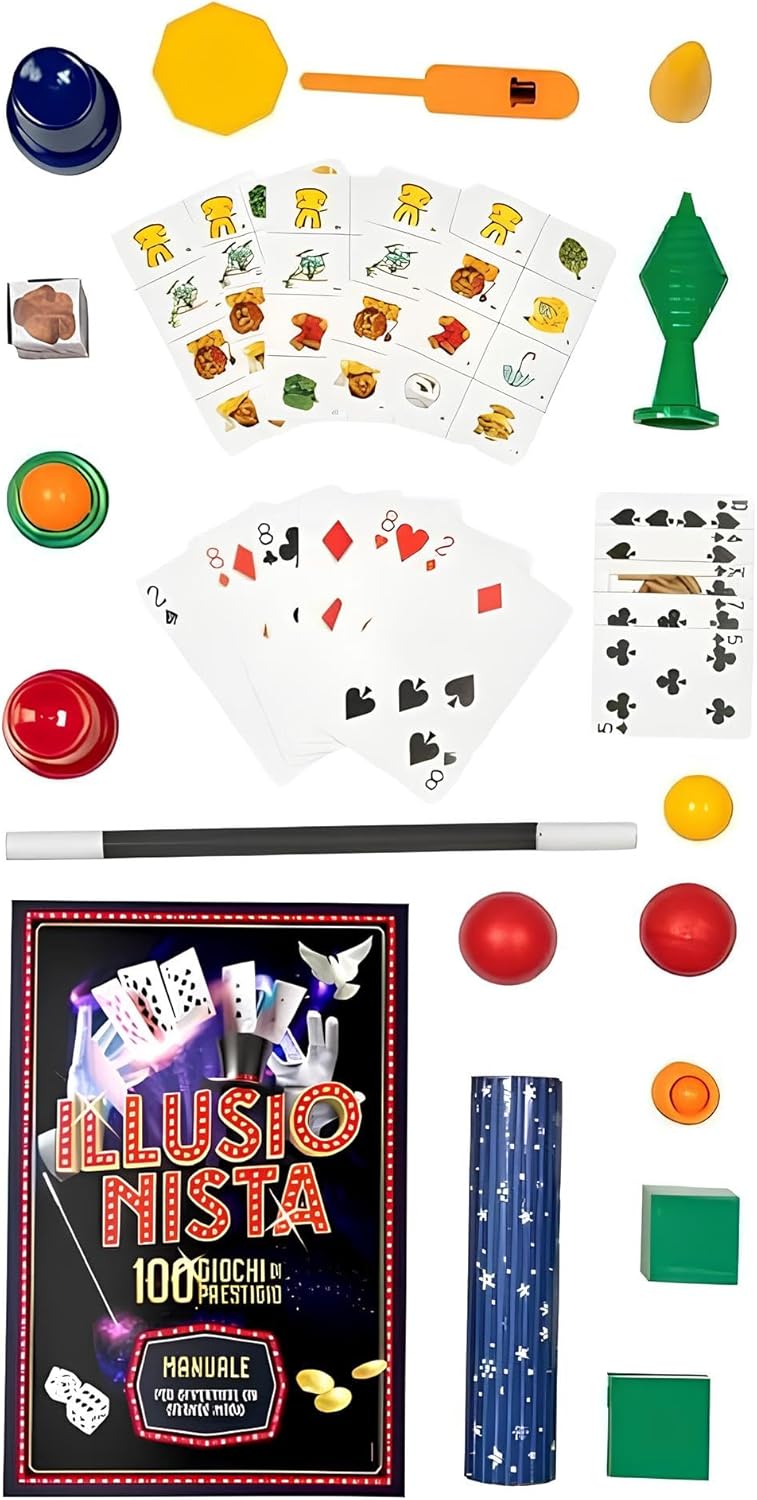 Kit Completo di Giochi di Magia per Bambini – Impara 100 Trucchi Magici Facili e Divertenti: Questo set di giochi di magia è il regalo ideale per i bambini che amano il mistero e la prestidigitazione. Con oltre 100 trucchi di magia facili da imparare, i giovani maghi possono iniziare a eseguire impressionanti giochi di prestigio in pochissimo tempo. Ogni trucco è progettato per essere semplice da eseguire, pur offrendo un effetto spettacolare che affascina gli spettatori. Accessori Inclusi per Un'Esperienza Magica Completa – Perfetto per Iniziare a Fare Magia: Il kit Magic Show include tutti gli accessori necessari per eseguire fino a 100 trucchi magici, tra cui carte da gioco, corde, monete e altri strumenti essenziali. Ogni gioco di prestigio è studiato per essere facile da eseguire, ma con risultati che sembrano magici e sorprendenti, perfetti per principianti e aspiranti maghi. Trucchi di Magia Professionali per Maghi Principianti – Semplici Ma Straordinari: Questo gioco magico è stato progettato appositamente per i principianti che vogliono imparare i segreti della magia senza sentirsi sopraffatti. I trucchi sono impressionanti ma facili da usare, il che significa che i bambini possono acquisire fiducia rapidamente e iniziare a fare magie in poco tempo. Le istruzioni passo-passo guidano i bambini attraverso ogni trucco, rendendo l'apprendimento facile e divertente. Migliora la Creatività e le Abilità Cognitive – Un Gioco che Stimola la Mente: Oltre a essere un gioco di magia divertente, questo kit promuove lo sviluppo delle abilità cognitive, della concentrazione e della memoria. Ogni trucco richiede attenzione e pratica, migliorando la coordinazione mano-occhio e le abilità motorie fini mentre i bambini esplorano il mondo della magia. È un modo fantastico per stimolare la loro creatività e il pensiero critico. Un Magico Show per Famiglia e Amici – Perfetto per Ogni Occasione: Grazie a questo kit, i bambini possono organizzare il proprio magic show davanti a familiari e amici, creando momenti di divertimento e sorprese che renderanno ogni evento speciale. Sia che si tratti di una festa di compleanno, di una serata in famiglia o di una semplice giornata di gioco, questo set di giochi di magia è un modo fantastico per intrattenere tutti e far sorridere con un tocco di magia. Regalo Ideale per i Piccoli Maghi – Stimola l'Autostima e la Concentrazione: Il gioco di magia è anche un regalo perfetto per i bambini che vogliono sviluppare abilità sociali e comunicative. Con ogni trucco completato, i bambini guadagnano autostima e fiducia in se stessi, mentre migliorano le loro capacità di concentrazione e presentazione. È il regalo ideale per stimolare l'immaginazione e il desiderio di apprendere in modo divertente.