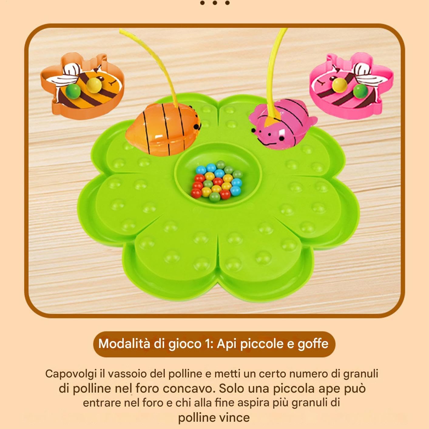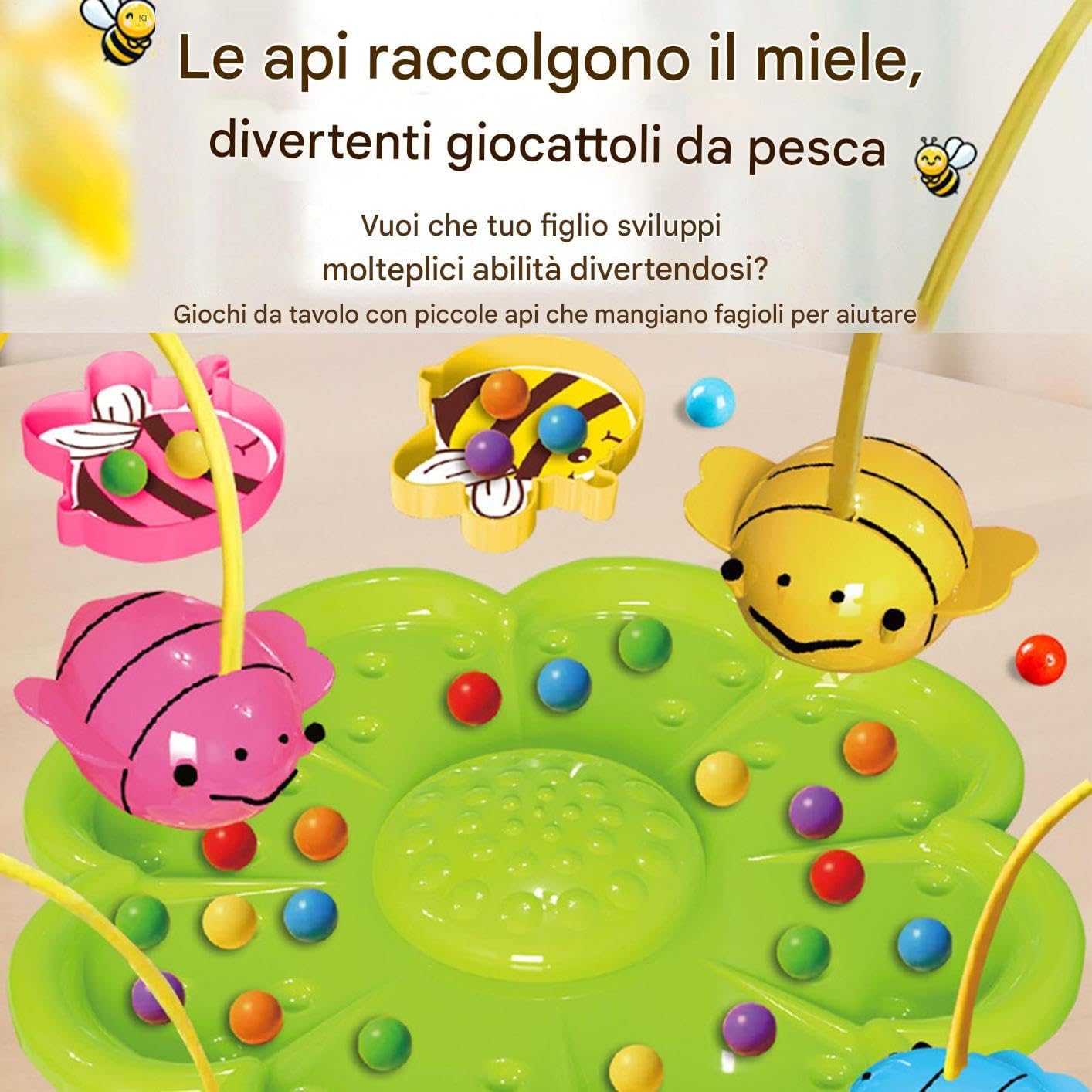 Gioco Immersivo Natura: Design encantatore a tema ape e bacchetta magnetica promuovono esplorazione tattile simulando l'impollinazione delle offrendo divertimento e apprendimento durante il gioco creativo Design Protettivo: Struttura con materiali sicuri e superfici levigate, garantisce gioco sicuro in casa, scuola o asilo , priorità alla sicurezza infantile senza componenti appuntiti o pericolosi Migliora la Coordinazione: Combina e concentrazione per sviluppare il pensiero logico e affinare la coordinazione occhio-mano, offrendo un modo coinvolgente di acquisire abilità attraverso attività interattive che stimolano l'apprendimento pratico e divertente Stimolo Visivo: La combinazione di brillanti ed stici assicura la massima attenzione infantile, trasformando ogni sessione di gioco in un'esperienza piacevole con un'estetica vivace nel gioco di educativo Gioco Interattivo: Potenzia comunicazione e teamwork tramite sfide multiplayer divertenti, promuovendo competizione familiare con turni nella raccolta condivisa di perle colorate