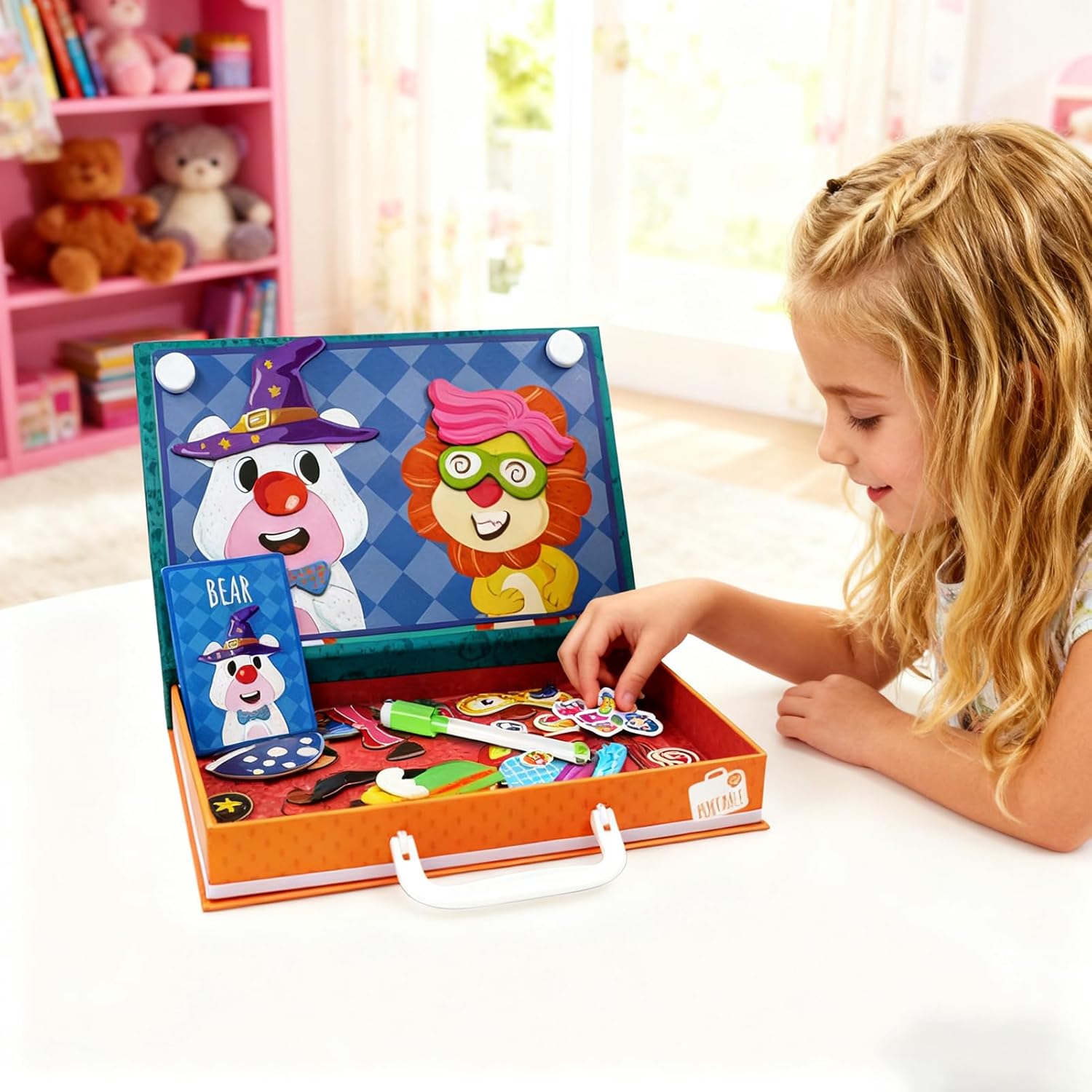 Attività di Genitore-Figlio: I puzzle magnetici per bambini favoriscono la creatività e la comunicazione mentre le famiglie collaborano in attività di decorazione del viso, rafforzando le connessioni emotive e fornendo un modo significativo per genitori e figli di interagire insieme, facilitando momenti di condivisione e crescita reciproca in un'atmosfera rilassata e piacevole di Puzzle Coinvolgenti: I puzzle magnetici per bambini offrono multiple opzioni di personaggi tematici che abbracciano professioni e stagioni, incentivando un miglioramento 'osservazione e del pensiero logico. I bambini si immergono in esperienze di risoluzione di puzzle a casa o in classe, sviluppando abilità cognitive attraverso il gioco interattivo e coinvolgente. Design Magnetico Interattivo: Il puzzle magnetico incoraggia il gioco immaginativo attraverso facciali da mescolare e combinare, favorendo creatività e divertimento durante i viaggi per bambini e famiglie, con un design interattivo che promuove ore di attività ludiche e creative in qualsiasi situazione. Struttura Robusta e Stabile: Questo puzzle magnetico è progettato con pezzi magnetici spessi e bordi lisci, assicurando una maneggevolezza sicura e il supporto per le abilità motorie fini. Fornisce un utilizzo di lunga durata per gli appassionati di giocattoli educativi, per sessioni di gioco ripetute che mantengono intatto il suo valore educativo e la sua integrità strutturale. La costruzione resiste all'usura, promuovendo esperienze di apprendimento ludico e sicuro per bambini, Divertimento Portatile a Doppia Faccia: I puzzle magnetici presentano una tavola magnetica a doppia faccia che garantisce una conservazione sicura durante i viaggi e offre un intrattenimento coinvolgente su entrambi i lati, rendendoli un'attività ideale confezionata in una scatola regalo compatta per viaggi su strada o riunioni familiari. La doppia faccia a tavola magnetica assicura doppio divertimento e versatilità, permettendo di giocare in modo pratico e senza interruzioni. Il design port