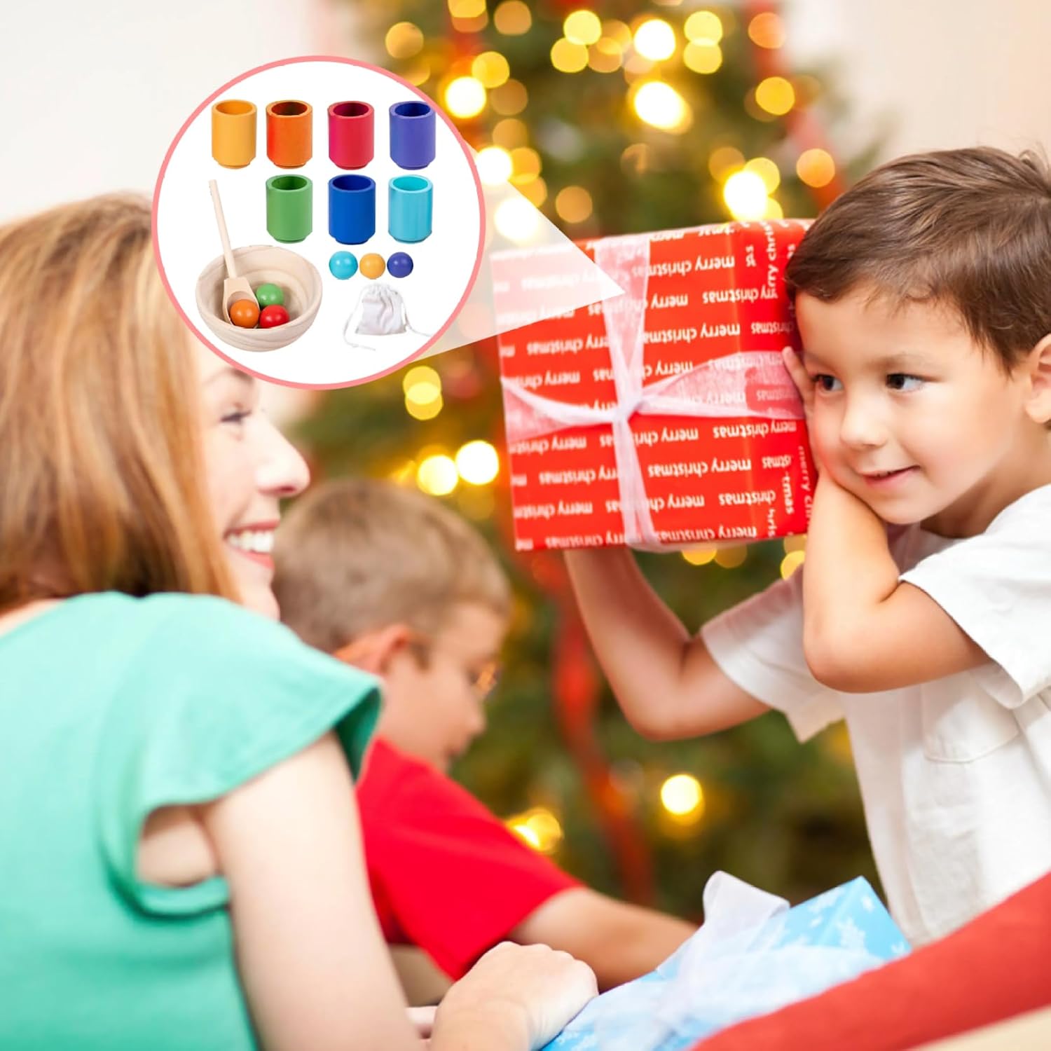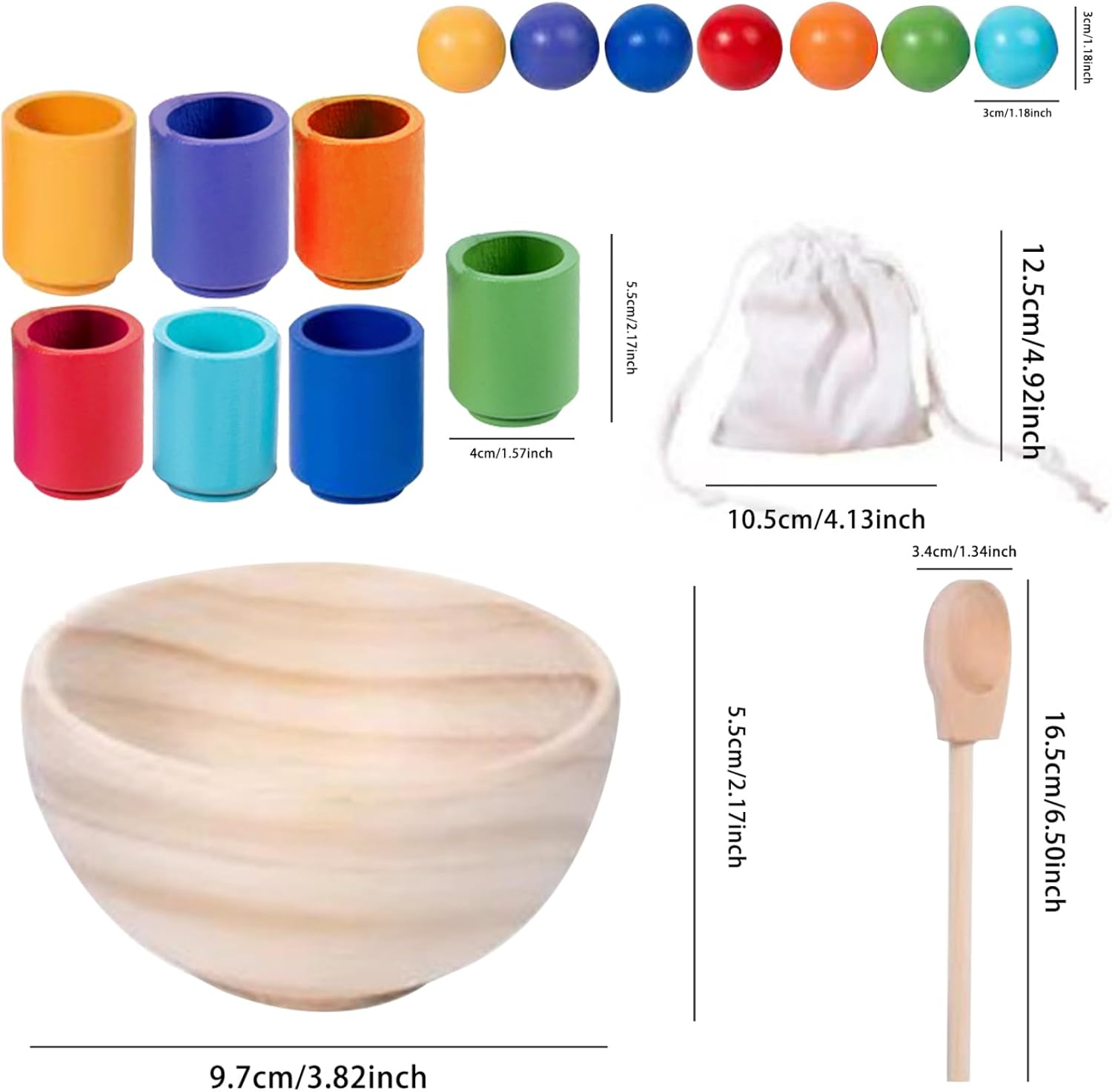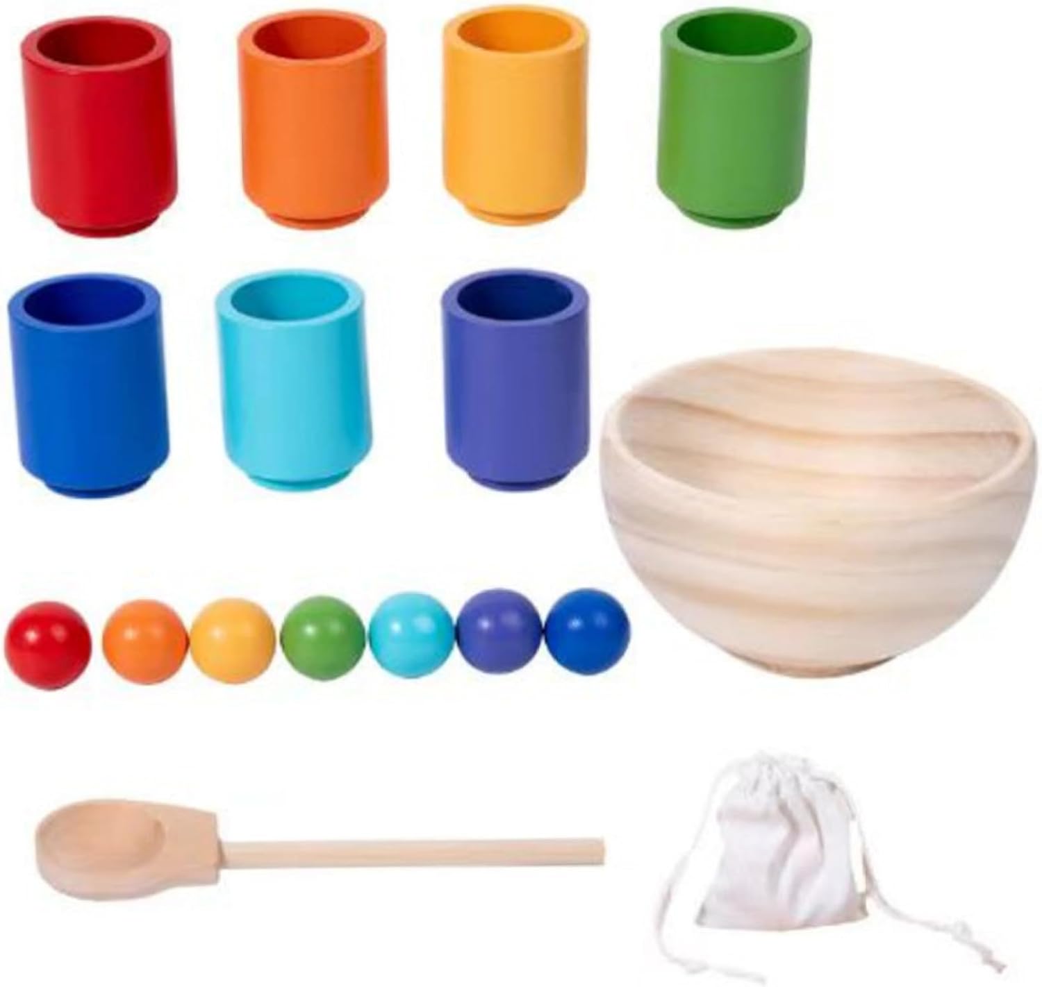 Sviluppa le capacità motorie: questo gioco di classificazione dei colori aiuta i bambini a migliorare le loro capacità motorie..Manipolando le tazze e posizionando al loro interno le palline colorate, i bambini migliorano la coordinazione occhio-mano e affinano le loro capacità di presa e rilascio. Materiale sicuro: realizzati con legno di qualità e vernice atossica, senza danni, senza sbavature e superficie liscia, senza ferire le mani dei bambini, questi giocattoli per lo smistamento dei colori garantiscono durata e sicurezza durante il gioco, offrendo un'esperienza di apprendimento tattile e ricca di sensi. Sviluppo cognitivo del colore: i giocattoli per l'ordinamento dei colori stimolano il pensiero critico e le capacità di risoluzione dei problemi..I bambini divertono a scoprire il modo perfetto per mettere le palline nelle tazze, promuovendo il ragionamento logico e la consapevolezza spaziale. Giocattoli perfetti per l'apprendimento in età prescolare: simpatico strumento didattico e utile risorsa di apprendimento per genitori e insegnanti da utilizzare nell'asilo nido o a casa..Adorabili giocattoli per ragazzi e ragazze di età superiore a 3 anni. Regali di Natale/Compleanno/Giorno dei bambini qualsiasi festività per bambini. Set completo: la confezione include 7 palline di legno colorate, 7 tazze di legno, una ciotola di legno e un cucchiaio di legno, una borsa per riporre le palline, totale 17 pezzi/set, aiuta a mantenere tutto in ordine.