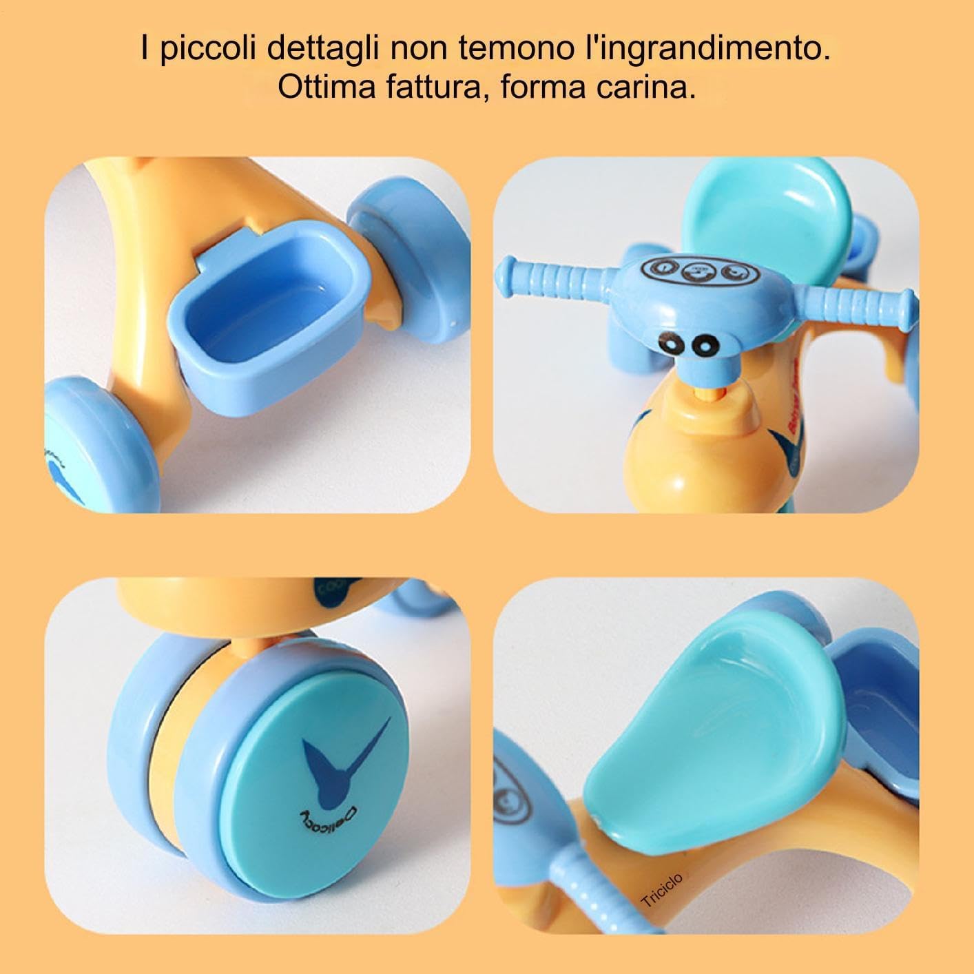 Promuovere l'innovazione: il processo di assemblaggio del triciclo giocattolo consente ai bambini di aumentare la loro creatività e migliorare la loro destrezza. Progettato specificamente per le mani piccole, tuo figlio adorerà la gioia della creazione e lo sviluppo di abilità pratiche. Un'avventura ispirata ai cartoni animati: dai a tuo figlio una corsa memorabile con disegni divertenti e affascinanti di tricicli giocattoli. Con immagini di cartoni animati e colori vibranti, è un ottimo modo per ispirare l'immaginazione e la creatività di tuo figlio e divertirsi. Dexterità migliorata: migliora le capacità motorie, la logica e la risoluzione dei problemi del bambino con il nostro triciclo giocattolo. Una volta assemblati, i bambini possono partecipare a giochi di dita educativi e avere un'esperienza di apprendimento divertente. Sicuro ed ecologico: realizzato con materiali sicuri ed ecologici, questo triciclo giocattolo garantisce la sicurezza dei bambini mentre giocano, consentendo ai genitori di far esplorare i propri figli liberamente con tranquillità. Ottimo regalo: dai a tuo figlio l'opportunità di migliorare le proprie capacità e abilità con il nostro triciclo giocattolo. come regalo per il tuo bambino da imparare e crescere durante il gioco. per compleanni e vacanze