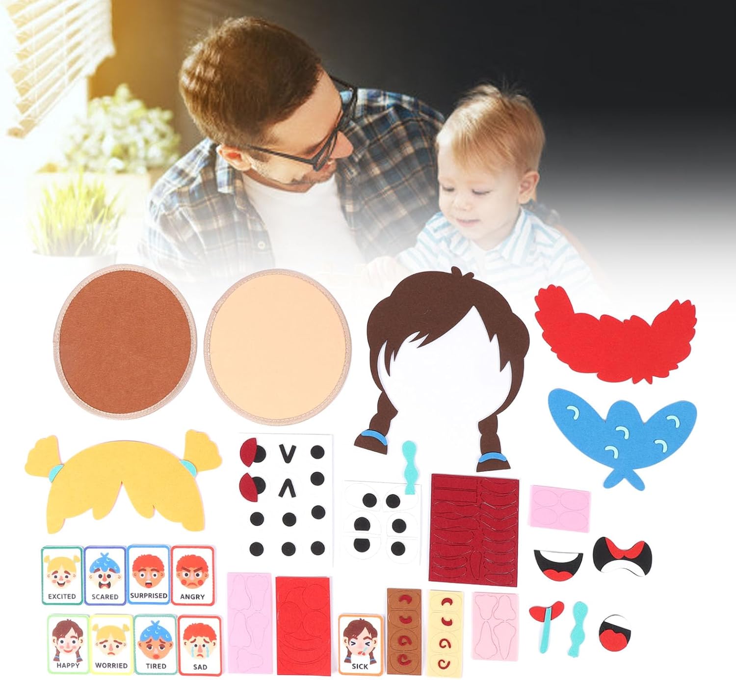 [Creatività potenziata] I bambini possono creare e condividere storie usando le espressioni facciali e le schede di attività, promuovendo una comprensione più profonda delle interazioni emotive. [Opzioni di gioco versatili] Buono per i tempi di gioco, il legame genitore-figlio o come doni ponderati, questi giocattoli hanno sentito espressioni facciali e schede di attività per accendere la creatività nei bambini. [Consapevolezza emotiva potenziata] Questo kit basato su feltro aiuta i bambini a riconoscere ed esprimere varie emozioni come gioia, tristezza e preoccupazione, promuovendo l'intelligenza emotiva. [Migliori capacità comunicative] giocattoli interattivi per articolare i loro sentimenti in modo efficace, migliorando l'empatia e le abilità sociali in diversi contesti sociali. [e facile da pulire] Realizzato con feltro premium, questo set è facile da mantenere, rendendolo ideale per l'uso interno, in classe, esterno o di viaggio.