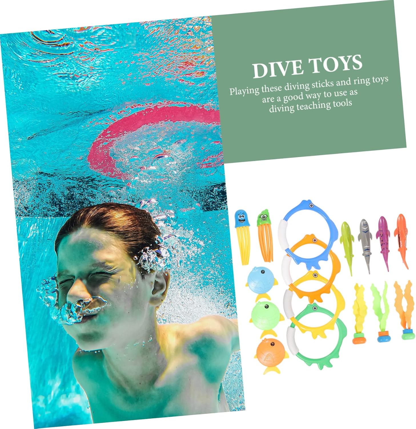 Giocattolo per : buona resistenza all'acqua e all'invecchiamento, più durevole, questi giocattoli subacquei non sbiadiscono facilmente al sole o non si danneggiano, giocattoli per immersioni in piscina Giocattoli subacquei per : questi giocattoli subacquei possono aumentare notevolmente la piscina quando si gioca con i propri , rafforzare il rapporto, giocattolo da piscina Giocattolo per il nuoto: questo divertente kit di giocattoli per immersioni può rendere il momento del nuoto più divertente e attraente per i più piccoli, giocattolo galleggiante con anelli Giocattoli da piscina per piccoli: questi bastoncini da sub e i giocattoli ad anello sono un buon modo per usarli come strumenti didattici per le immersioni, per aggiungere divertimento all'estate, accessori da piscina per Giocattoli da nuoto per : questo set di giocattoli da immersione è un eccellente strumento di allenamento per l'allenamento al nuoto subacqueo, può essere utilizzato per diversi giochi, giocattoli per attrezzature subacquee
