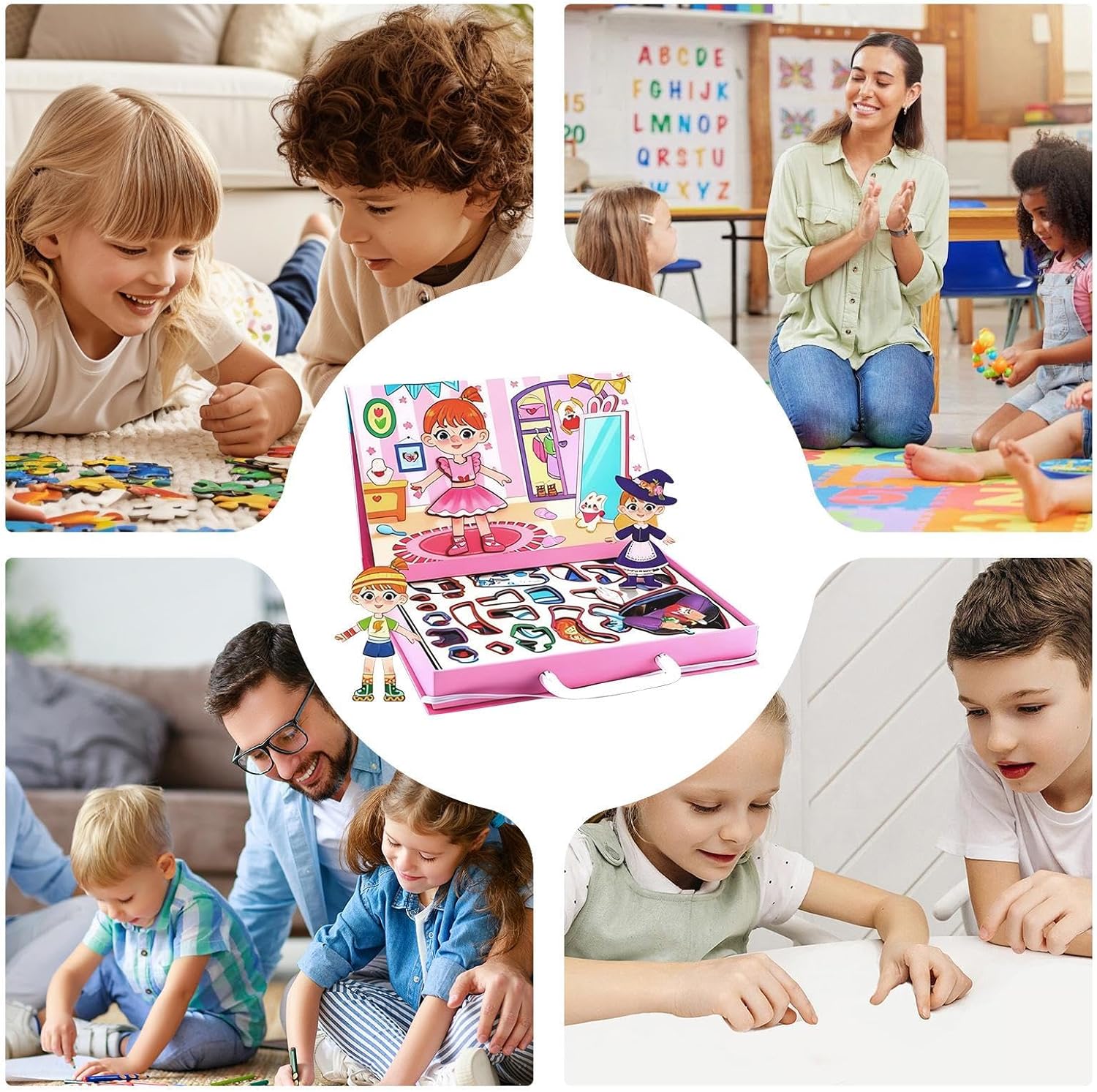 Esperienza di gioco senza rischi: forme morbide e ben tangibili garantiscono una sicurezza assoluta durante i processi di risoluzione dei problemi creativi senza rischi durante il gioco interattivo Design double face: questo puzzle magnetico per bambini combina due motivi in un design a doppia faccia e promuove la capacità di pensiero spaziale e lo sviluppo cognitivo, mentre i bambini possono comporre scene in diversi ambienti come viaggi, asilo nido o tranquille attività indoor. Apprendimento versatile: questo puzzle magnetico combina forme, colori e puzzle logici per promuovere la coordinazione occhio-mano e lo sviluppo cognitivo precoce. Fornisce un"attività divertente ed educativa per i bambini piccoli e in età prescolare a casa o in classe. Intrattenimento organizzato compatto: il puzzle magnetico per bambini è progettato con portabilità e organizzazione facilmente trasportabili, in modo che le famiglie possano godere di un gioco pulito all'interno o all'esterno senza preoccuparsi di parti mancanti Cambio rapido dell'abbigliamento: gli elementi magnetici consentono un cambio di abbigliamento velocissimo e supportano lo sviluppo di abilità motorie. Il puzzle combina giochi di ruolo fantasiosi con design creativo ed è ideale per ore di gioco interattive che favoriscono la coordinazione e l'immaginazione.