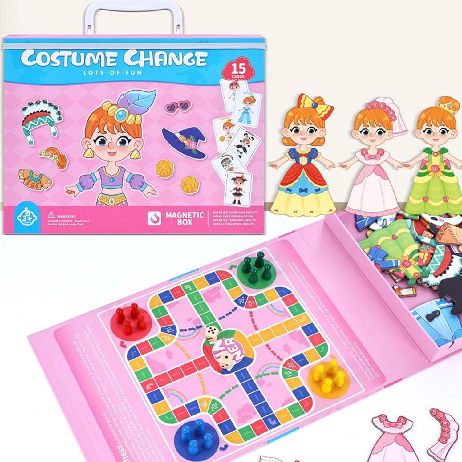 Magazzinaggio Compatto per Divertimento Magnetico: I giochi magnetici per bambini presentano un design di magazzinaggio portatile, assicurando che i pezzi rimangano organizzati e intatti, rendendoli perfetti per uso domestico o di viaggio, prevenendo perdite durante il trasporto Bordi Lisci per Sicurezza: I puzzle magnetici hanno bordi arrotondati e misure adatte alle mani dei bambini, assicurando una manipolazione sicura e prevenendo infortuni durante il gioco a casa o in classe Apprendimento Pratico Divertente: Con formato magnetico a puzzle, mescola esercizi di forme, colori e logica per migliorare la coordinazione occhio-mano e incoraggiare lo sviluppo cognitivo, creando un ambiente immersivo per bambini a casa o a scuola Vestibilità magnetica innovativa: Il magnetico permette cambi d'abito rapidi, migliorando la coordinazione motoria e fondendo il gioco di ruolo con la creatività, ideale per attività interattive che stimolano l'immaginazione e l'apprendimento attraverso il travestimento Esplorazione creativa: Il puzzle magnetico a doppia faccia permette ai bambini di installare temi diversi senza sforzo, favorendo pensiero creativo e abilità spaziali durante viaggi in auto o attività indoor in giorni di pioggia con ore di divertimento educativo