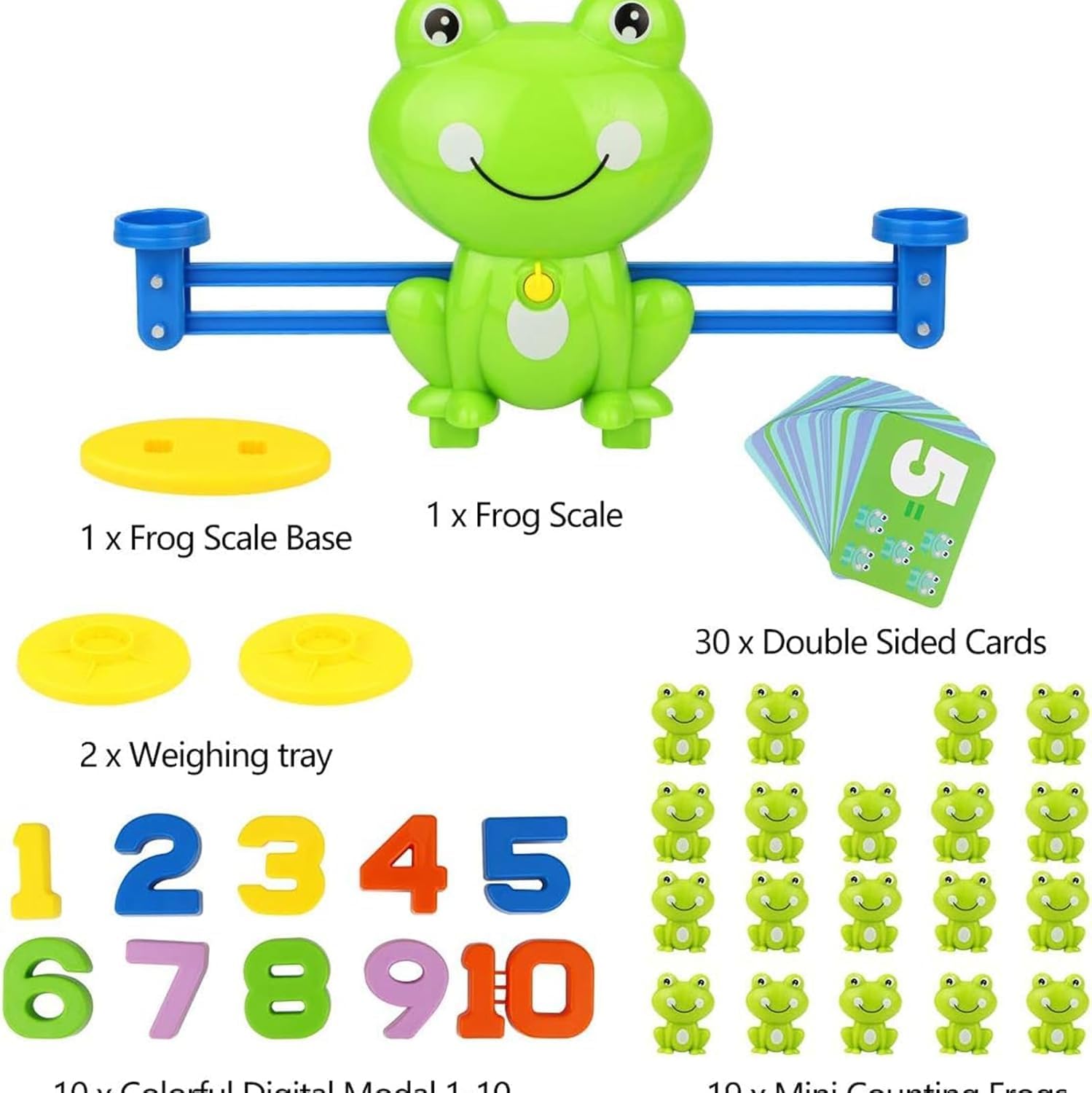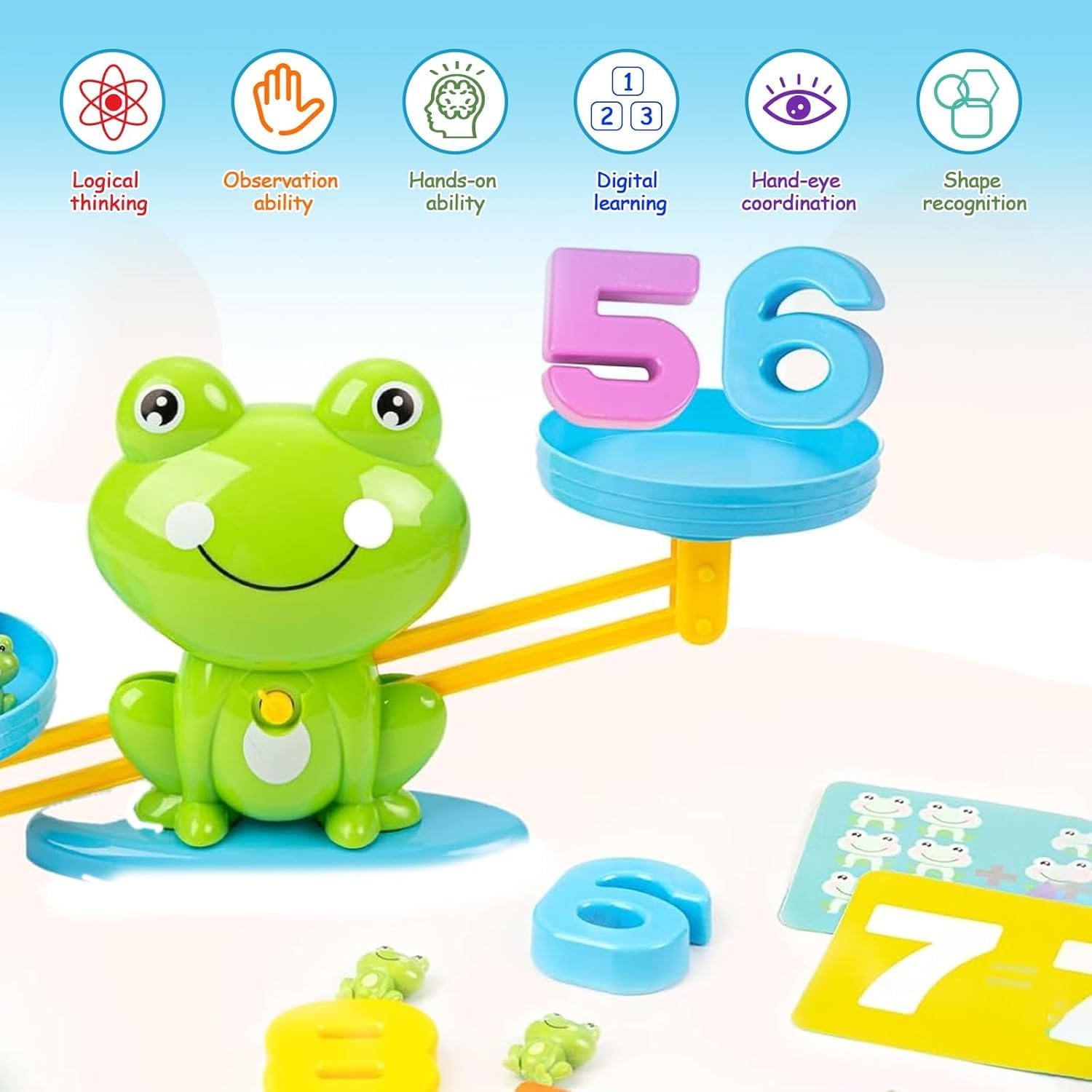 🐸 Giocattoli per l'educazione precoce sicuri: i giocattoli matematici per l'equilibrio sono realizzati in materiale plastico di alta qualità, non tossico, senza sbavature e senza odore per garantire la sicurezza dei bambini. E il giocattolo di conteggio è resistente e non facile da rompere, lunga durata del giocattolo. 🐸 Gioco matematico in equilibrio: i giocattoli matematici in equilibrio sono dotati di scala rana, 19 rane, blocchi numerici 1-10, 30 carte matematiche a doppia faccia. Animali adorabili e carte colorate possono attirare la concentrazione dei bambini, i bambini possono usarli per fare divertenti attivit脿 matematiche. 🐸Facile da usare: Appendi il numero sulle mani. Questo gioco è un'opportunità per tutti i bambini e la famiglia di giocare, fare matematica e contare per ore! Quando le somme della tua scimmia vengono aggiunte correttamente, le braccia della scimmia saranno bilanciate e guarderà dritto davanti a sé. 🐸Giocattoli educativi per la piccola infanzia: Frog Balance aiuta a migliorare la memoria dei bambini, a sviluppare le capacità motorie, la coordinazione occhio-mano, il riconoscimento di colori e numeri, il pensiero logico e la risoluzione dei problemi, e stimolare l'immaginazione. 🐸Regalo perfetto: il gioco di equilibrio della rana è il regalo perfetto per i compleanni dei bambini, Natale, Pasqua e Halloween。Il design creativo, carino e colorato attira gli occhi dei piccoli, è anche un ottimo giocattolo per migliorare l'interazione genitore-figlio.