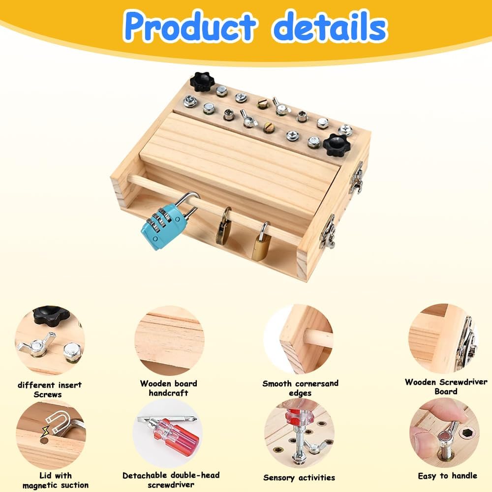 👍【Alta qualità】Questo giocattolo Montessori per bambini dai 3 anni in su, con bordi curvi, è estremamente resistente ed ecologico. Gli angoli e le superfici lisce consentono un gioco confortevole per le piccole mani dei più piccoli. Il materiale in faggio naturale non è solo resistente all'usura e lucido, ma resiste anche alla deformazione anche in ambienti asciutti. Questo giocattolo Montessori per bambini dai 3 anni in su è di alta qualità, quindi puoi essere certo che il tuo bambino non si ferirà durante l'uso. 📕【Gioco educativo】La lavagna Montessori Screw è un gioco educativo unico per bambini dai 3 anni in su. Questa lavagna Montessori promuove lo sviluppo percettivo e cognitivo dei bambini insegnando loro come usare cacciaviti e chiavi inglesi e riconoscere la differenza tra le viti. Allo stesso tempo, allena il pensiero e le capacità pratiche dei bambini e li aiuta a risolvere autonomamente le sfide del mondo reale, fornendo una solida base per il loro sviluppo futuro. 👨👩👧👦【Interazione Genitore-Figlio】La cassetta degli attrezzi Montessori per bambini è uno strumento eccellente per i genitori per stabilire una stretta interazione con i propri figli. L'interazione con il bambino può ridurre la distanza psicologica tra genitori e figli. Quando i bambini imparano e giocano con questi giocattoli, non solo trascorrono momenti felici, ma riempiono anche la casa di un'atmosfera gioiosa e rafforzano il legame emotivo tra i membri della famiglia. 🔐【Tavola di viti in legno per bambini】La tavola Montessori contiene 7 diversi tipi di viti, 1 chiave inglese, 1 cacciavite combinato, 3 lucchetti, 1 chiave, 1 chiave esagonale e 1 tavola di cacciaviti Montessori in legno. Questo giocattolo Montessori per bambini dai 3 anni in su include un cacciavite leggero e tutte le viti e i dadi si inseriscono nei fori della tavola. 🎁【Idea regalo perfetta】Questa cassetta degli attrezzi Montessori in legno per bambini è progettata per rendere il noioso processo di apprendimento creativo e divertente per compleanni, Pasqua, Festa dei bambini, Ringraziamento, regali di Natale per bambini e bambine di 3, 4, 5 anni.