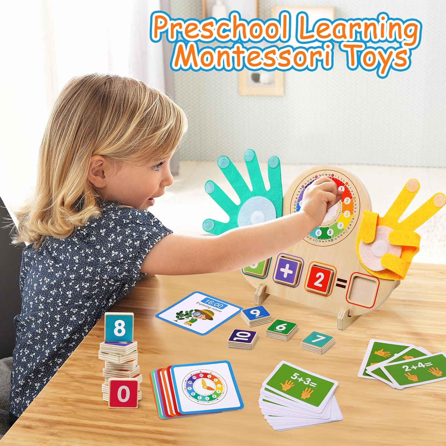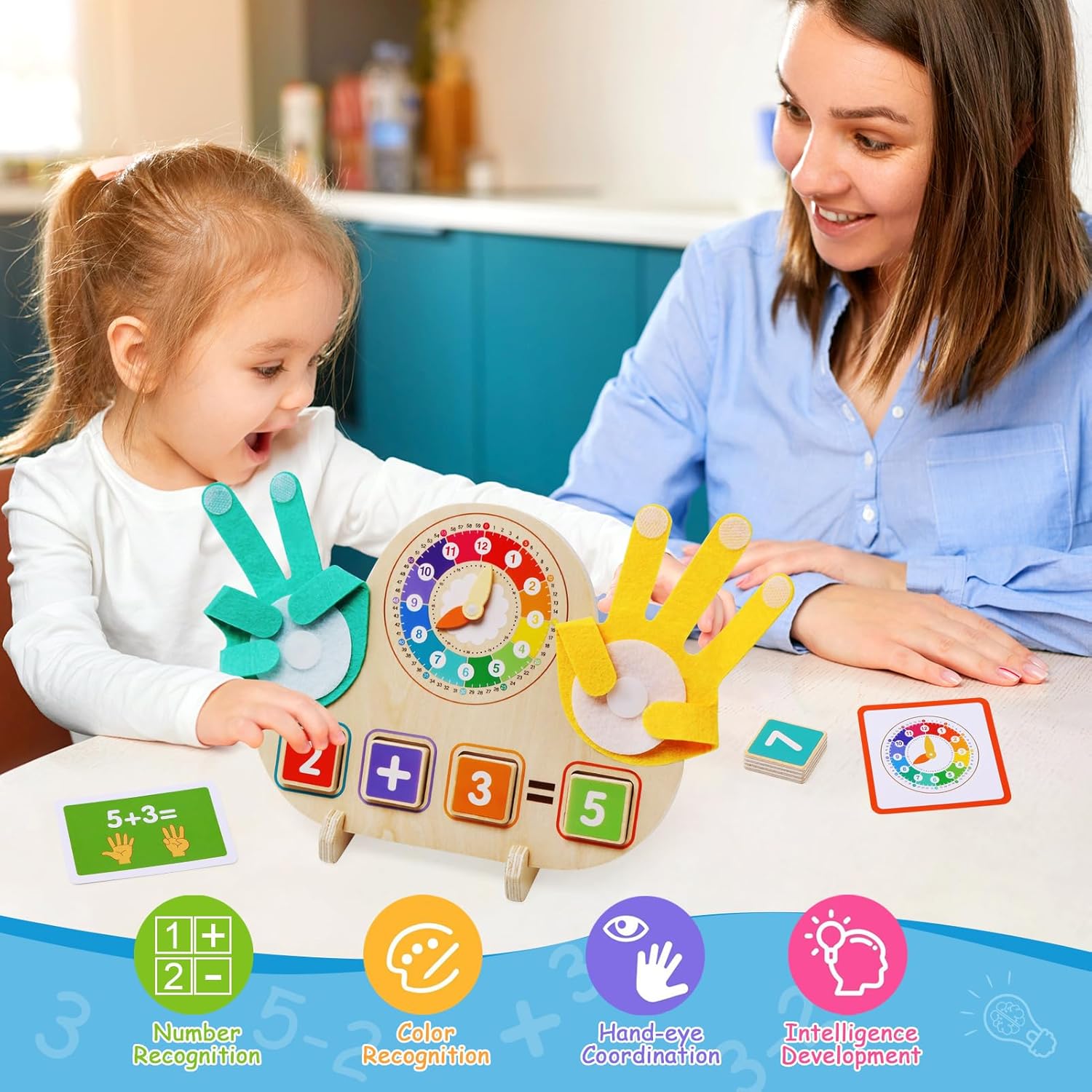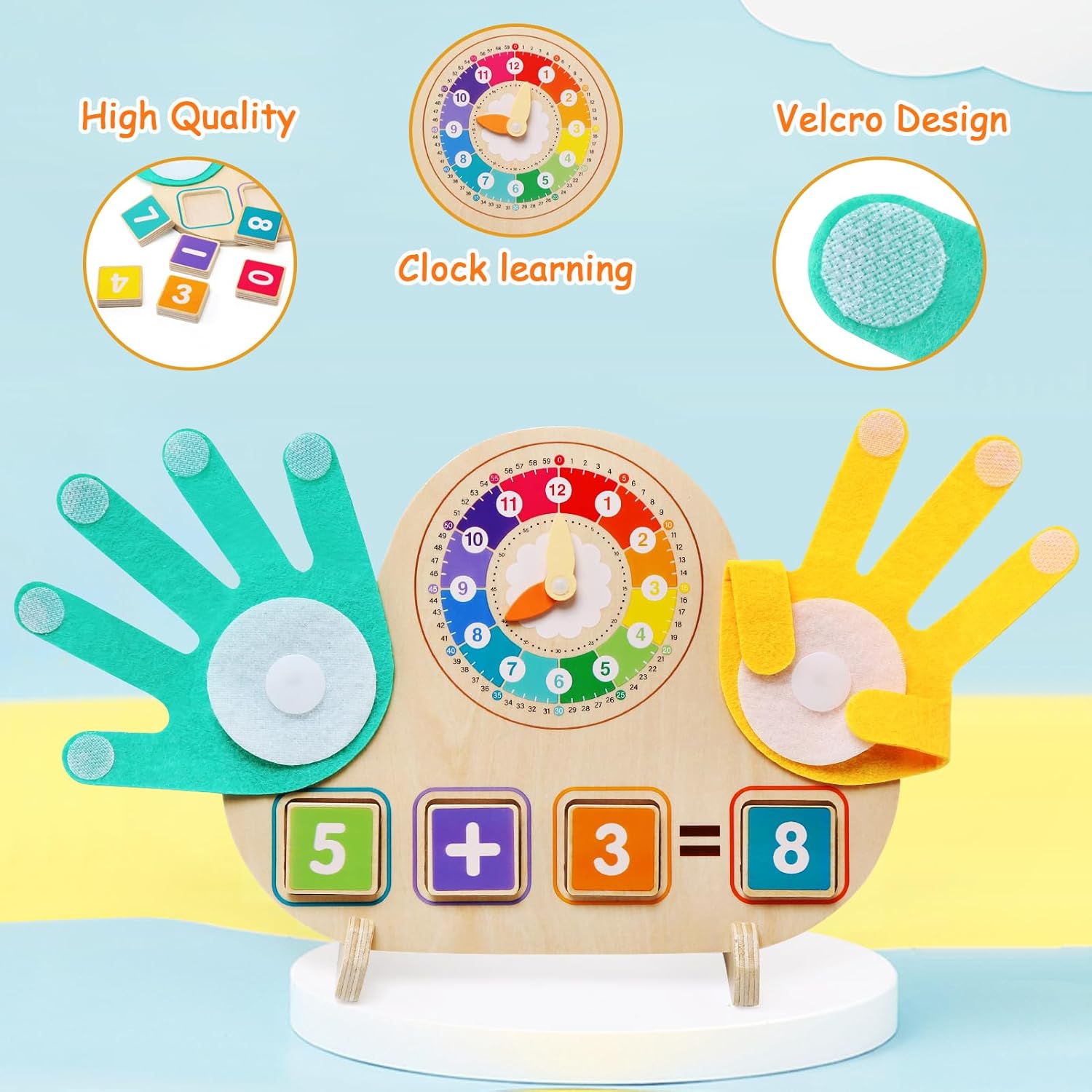 【Giocattoli con Blocchi Numerici per Bambini】- Il nostro set di giochi di matematica e aritmetica con dita in legno include 1 tavola di legno con dita e orologio, 12 blocchi numerici colorati, 23 carte di conteggio, 18 carte orologio con scenario e 1 supporto in legno che supporta l'apprendimento precoce della matematica. Questo giocattolo educativo prescolare è perfetto per i bambini per visualizzare e comprendere il conteggio, l'addizione e la sottrazione. 【Giocattoli Didattici 2 in 1 per Bambini 3 ai 5 Anni】- Un gioco: blocchi numerici in legno. I bambini possono usare blocchi numerici e carte da 1 a 10 per esercitarsi nei calcoli. La lavagna è dotata di mani sinistra e destra interattive, che consentono ai bambini di piegare le dita morbide per contare facilmente i numeri. Un altro gioco: giocattoli con orologio. Utilizzando le carte dell'orologio, è possibile muovere le lancette delle ore e dei minuti, incoraggiando i bambini a esercitarsi e ad acquisire un concetto di tempo. 【Giocattoli Montessori per Bambini 3 4 5 6 Anni】- Il nostro giocattolo matematico per contare con le dita sviluppa le abilità matematiche essenziali incoraggiando i bambini a impegnarsi nel conteggio con le dita, nella costruzione dei numeri e in semplici esercizi di addizione e sottrazione. Oltre all'apprendimento precoce della matematica, aiuta le capacità motorie fini, le capacità cognitive, la coordinazione occhio-mano e le capacità di problem solving dei più piccoli. 【Qualità Premium】- Questi giocattoli matematici in legno sono realizzati in legno naturale con una superficie liscia e vernici ad acqua atossiche. I giocattoli per contare le dita sono realizzati in feltro resistente, non facile da rompere. Durevoli e sicuri per i bambini dai 3 ai 5 anni. È più di un semplice giocattolo; è un supporto didattico per la matematica, adatto per la scuola materna, la scuola materna e qualsiasi bambino pronto a imparare i numeri. 【I Migliori Regali per Bambini in Età Prescolare】- Cerchi il regalo educativo perfetto? Questo set di blocchi matematici aggiornato è ideale per bambini di 3, 4, 5 e 6 anni, maschi e femmine, come fantastica scelta regalo per compleanni, Ringraziamento, Natale o qualsiasi altra festività. È il modo perfetto per combinare apprendimento e gioco, contribuendo a sviluppare una varietà di abilità nella prima infanzia, offrendo sia divertimento che valore educativo.