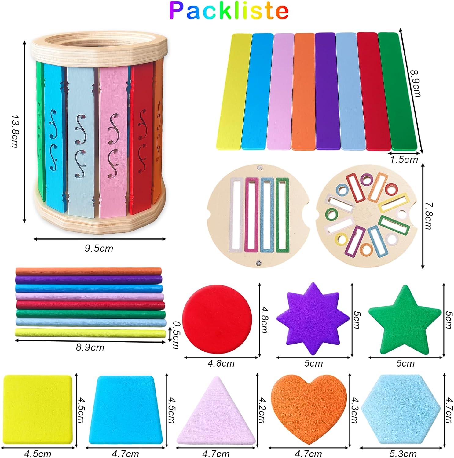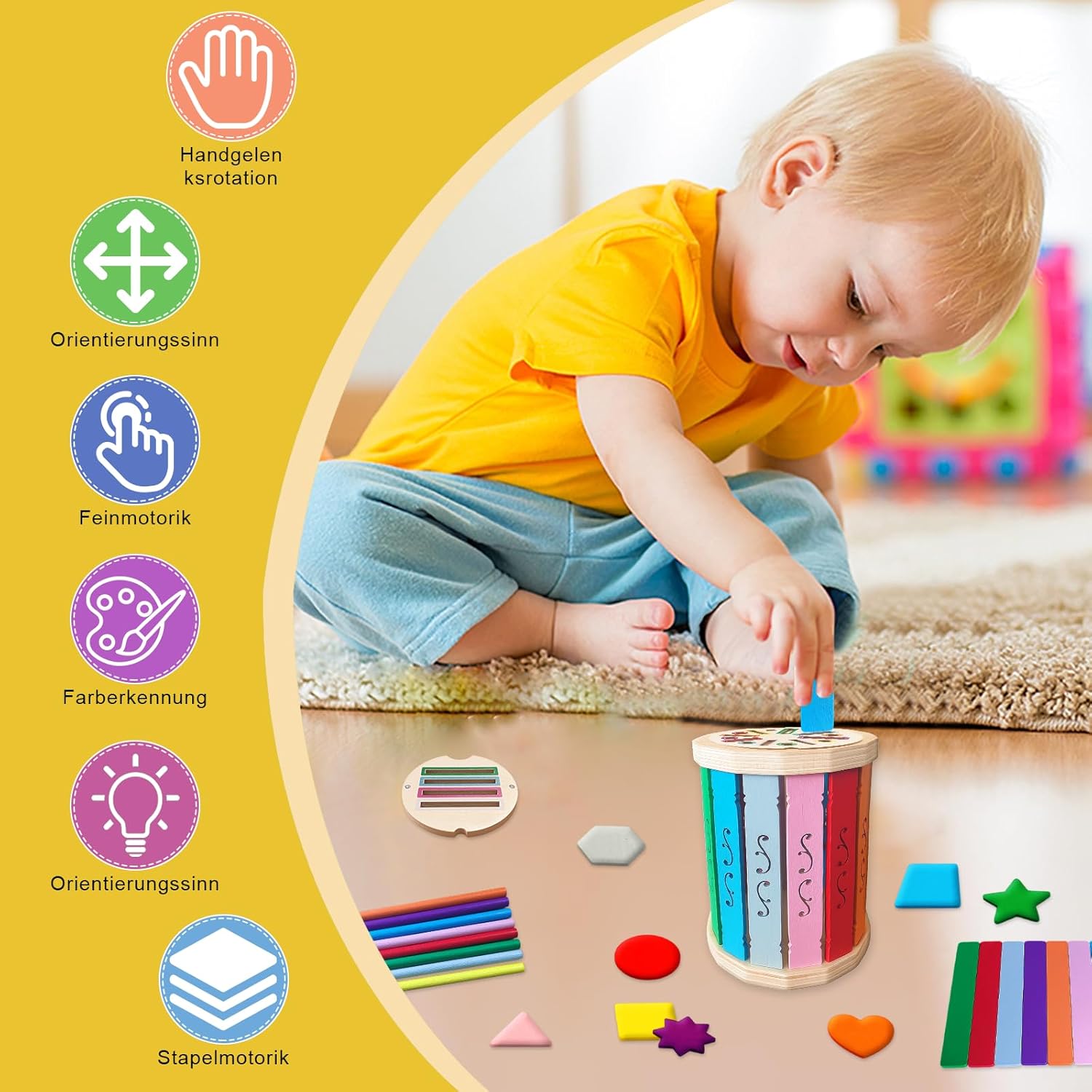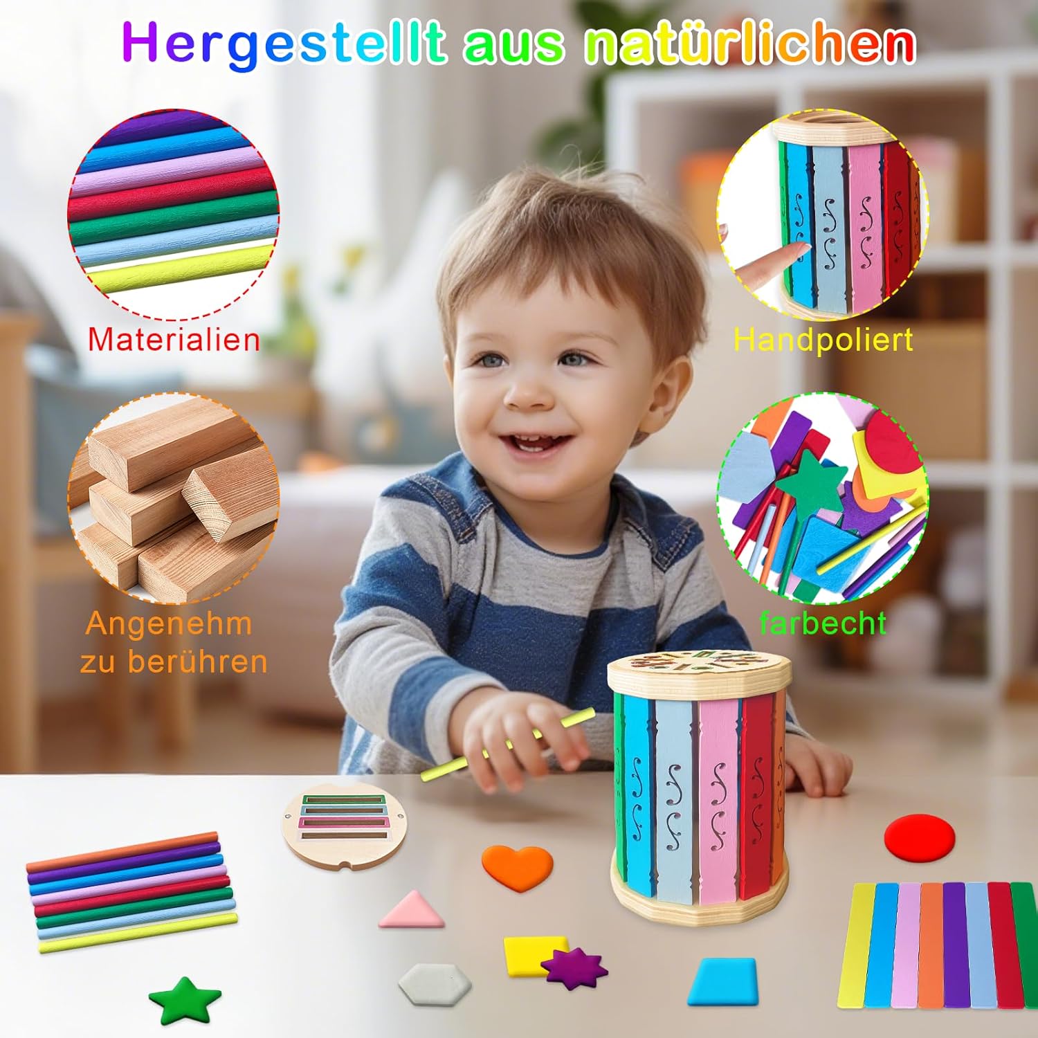 【Materiali in Legno Sicuro】: giochi montessori 1 anno gioco a incastro realizzato in legno naturale massiccio di alta qualità, accuratamente levigato a mano per superfici senza schegge e tenuta ottimale per le mani piccole, rivestito con vernice ad acqua atossica ed ecologica secondo rigorosi standard di sicurezza dei giocattoli, durevole e non stinge anche in caso di uso intensivo, garantisce un'esperienza di gioco sicura per bambini dai 3 anni in su, i genitori possono stare tranquilli 【Promozione Montessori】: progettato come un autentico giocattolo Montessori a partire dai 3 anni, questo gioco di smistamento promuove efficacemente lo sviluppo del bambino attraverso molteplici attività come il riconoscimento del colore e della forma, la percezione delle dimensioni e l'assegnazione di aste, diversi blocchi di forma e blocchi, allena le abilità motorie, la coordinazione occhio-mano, la concentrazione e il pensiero logico, stimola la curiosità e pone le basi giocosamente importanti. per l'apprendimento precoce Ideale come giocattolo sensoriale per stimolare i sensori 【Struttura Robusta】: gioco bambino 1 anno la struttura particolarmente stabile con un contenitore di legno a pareti spesse e parti solide resistono anche al gioco vivace, il legno di alta qualità combinato con la resistente verniciatura ad acqua previene lo sbiadimento, la scheggiatura o la deformazione, una maggiore resistenza e durata rispetto ai giocattoli tradizionali a partire dai 3 anni in su, un gioco di smistamento sostenibile a partire dai 3 anni in su 【Facile da Riporre】: giochi educativi 2 anni tutto riposto in un robusto contenitore di legno con botti, diversi blocchi di forma, bastoncini, il design compatto e leggero e la confezione accattivante lo rende il compagno perfetto per la casa, in viaggio o all'asilo, consente di imparare spontaneamente ovunque, giocattolo in legno un giocattolo da viaggio ideale per i piccoli esploratori 【Ideale Come Regalo di Illuminazione】: giochi legno bambini 1 anno confezionato in una confezione regalo di alta qualità, unisce divertimento, valore educativo, come giocattolo Montessori e gioco di classificazione, e massima sicurezza, il regalo educativo perfetto per bambini dai 3,4,5,6 anni in su, per compleanni, Natale, festa dei bambini o Capodanno, stimola il gioco creativo e offre gioia duratura e occupazione stimolante per i bambini in età prescolare