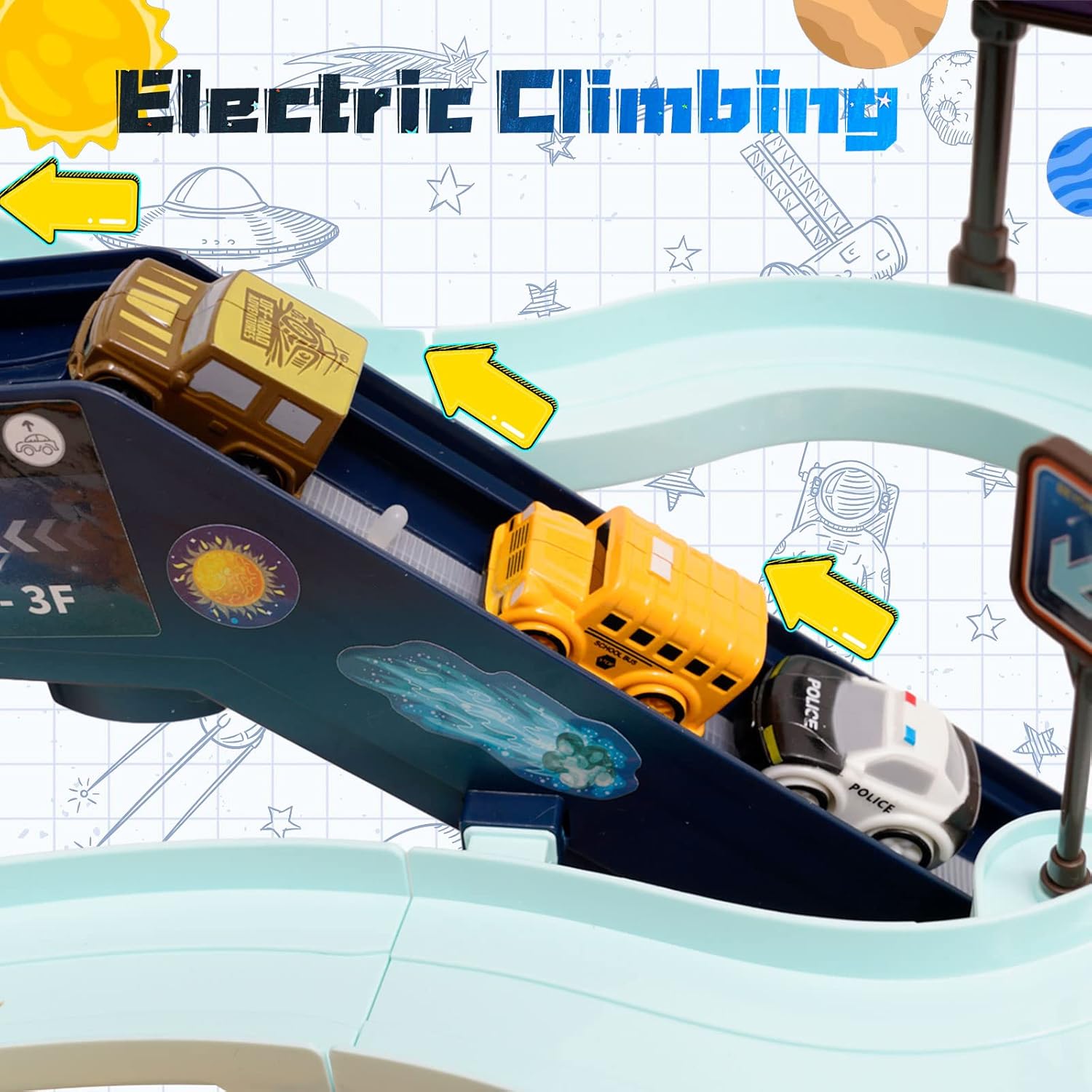 🚗 【Esercita l'abilità pratica dei bambini】 Questo giocattolo per vagoni ferroviari è assemblato per migliorare la creatività e l'immaginazione dei bambini. I nostri giocattoli in orbita spaziale aiutano a coltivare il pensiero logico dei bambini, il pensiero creativo, esercitare le loro capacità di coordinazione occhio-mano e sviluppare capacità motorie 🚕 【Dispositivo nastro trasportatore】 quando viene acceso per il funzionamento, il nastro trasportatore inizia a funzionare. Metti l'auto sul nastro trasportatore e l'auto andrà in autostrada per la guida automatica. Quando la modalità musica è attiva, verranno emessi effetti sonori e luci fantastiche 🚐 【Simula uno scenario spaziale reale】 Questa pista per macchinine è dotata di varie strutture come Marte, disco volante, segnali stradali, parcheggi, che equivalgono a modelli in miniatura della vita reale. Aiuta a coltivare l'interesse dei bambini nell'esplorazione dello spazio 🚓 【La sicurezza prima di tutto】 Questo set di veicoli da pista è realizzato con materiali ABS di alta qualità e non tossici, ha superato test fisici e meccanici, soddisfa gli standard dei giocattoli, non danneggia la salute dei bambini. Il bordo arrotondato e il design della superficie liscia ti consentono di non preoccuparti più che i bambini si facciano male. 🚙 【Regalo popolare per i bambini】 Questa avventura in auto è il regalo preferito per i bambini di 3 4 5 6 7 anni. È il regalo ideale per compleanni, feste, festa dei bambini, Natale, Halloween, Ringraziamento e Capodanno.