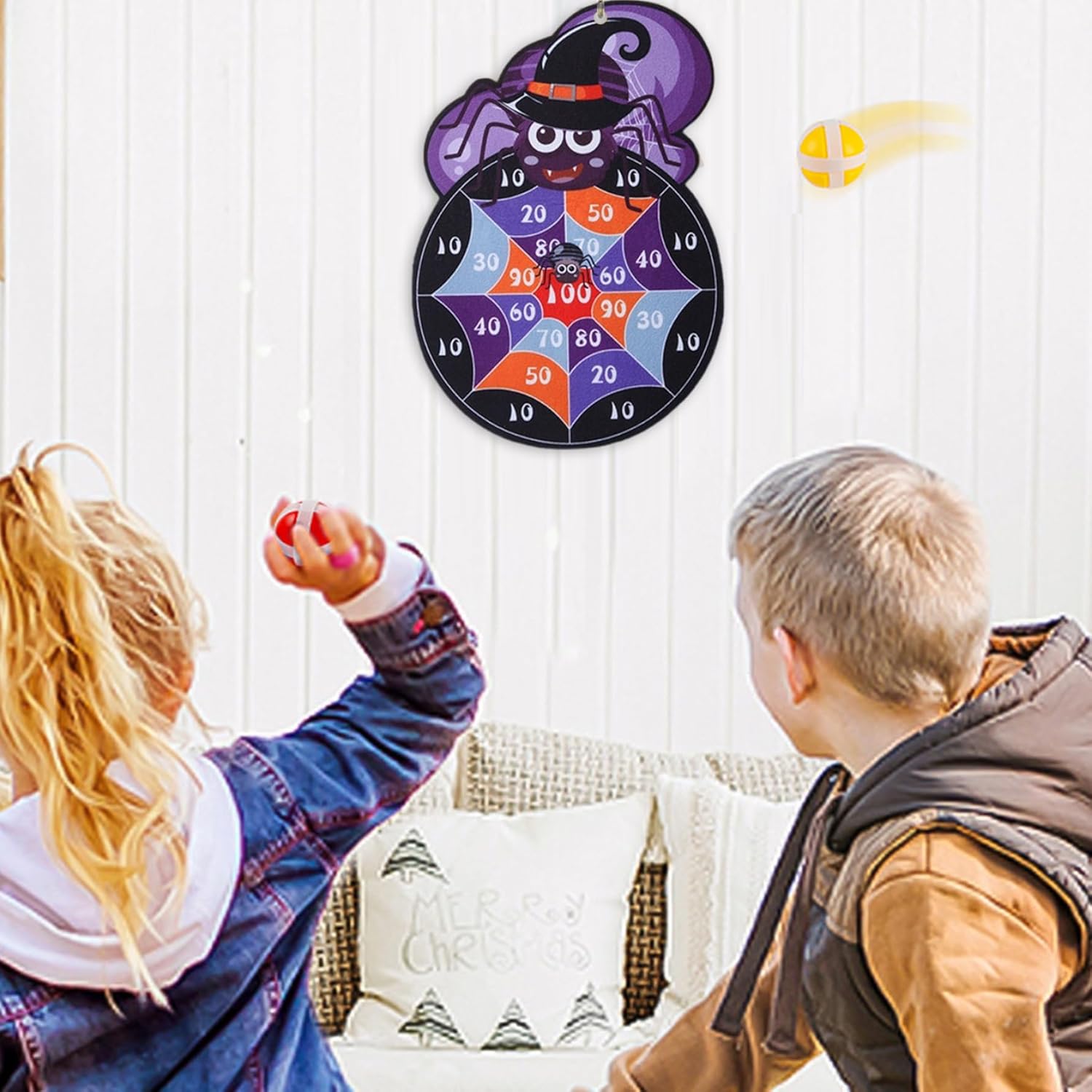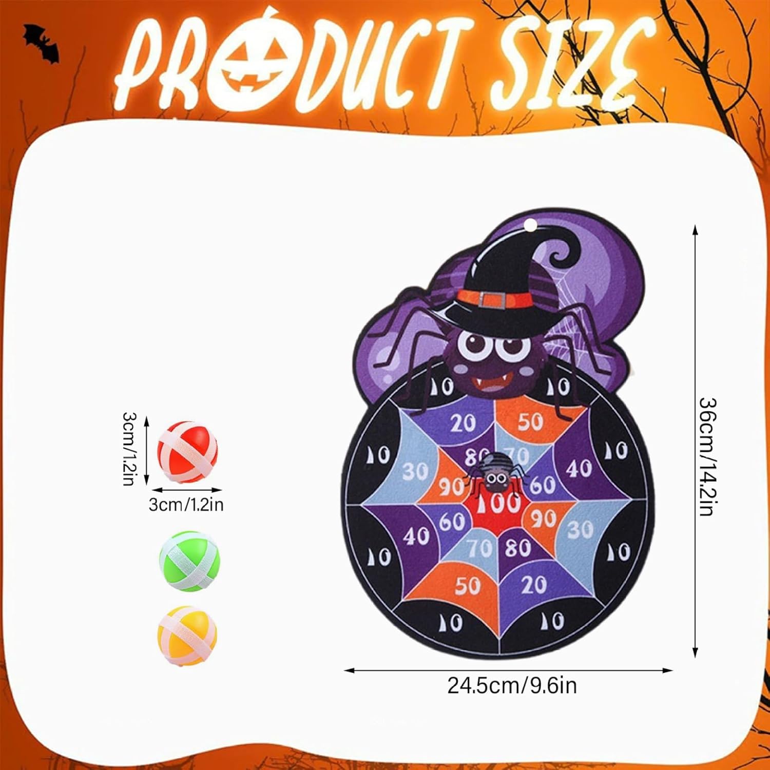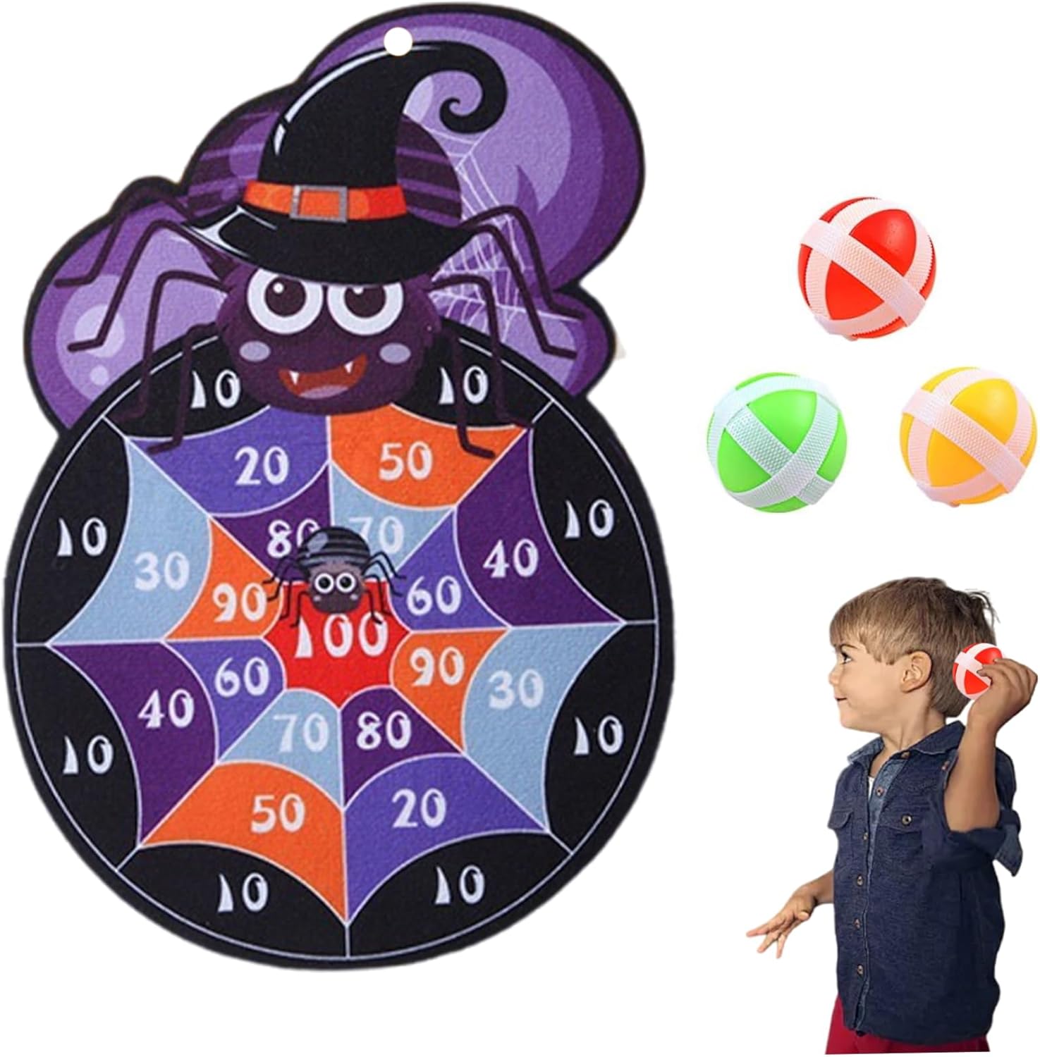 Decorativo e funzionale: questa scheda Darts di Halloween di Spider funge anche da spettrale decorazione e gioco per feste di Halloween, aggiungendo un tocco festivo alle forniture per le tue feste e migliorando immediatamente l'atmosfera dell'evento di Halloween. Set completo per comodità: include un gancio e 3 palline appiccicose, fornendo tutto il necessario in un set per iniziare immediatamente il gioco, preparando la preparazione delle parti senza problemi e divertenti per tutte le età. Balli appiccicosi sicuri inclusi: viene fornito con 3 palline appiccicose morbide che sono sicure sia per bambini che per adulti, garantendo un'esperienza di gioco priva di rischi mantenendo il brivido delle freccette che si lanciano senza oggetti taglienti. Portabilità e archiviazione facile: il design pieghevole rende compatto o memorizzare la scheda di dardi di Halloween di Spider, perfetta per feste di Halloween in movimento, eventi del bagagliaio o tratto o una configurazione rapida a casa. Divertente Entertainment di Halloween: coinvolgere sia i bambini che gli adulti con questo ragno di Halloween Darts Board, progettato per portare eccitazione e risate a qualsiasi festa o evento di Halloween..È un'attività interattiva che mantiene gli ospiti intrattenuti e coinvolti.