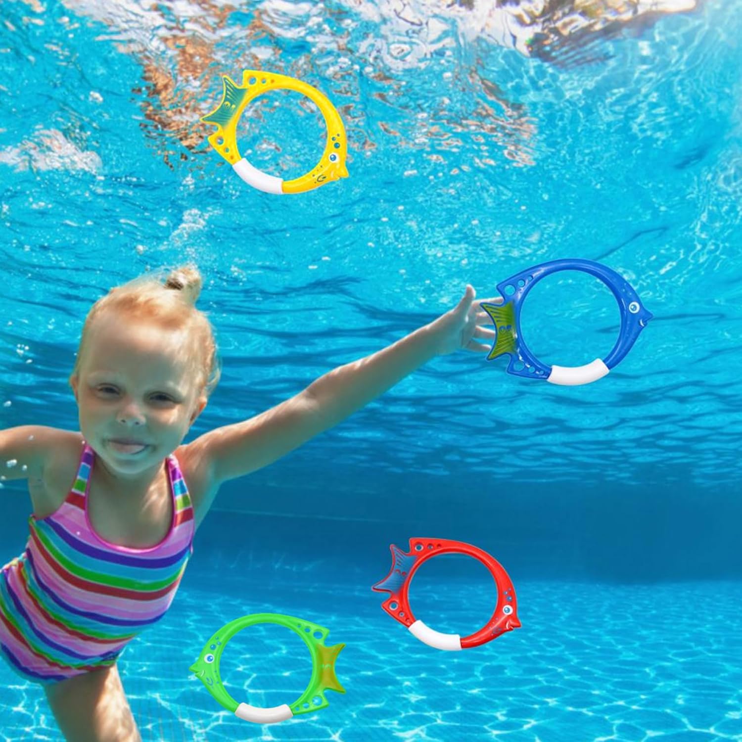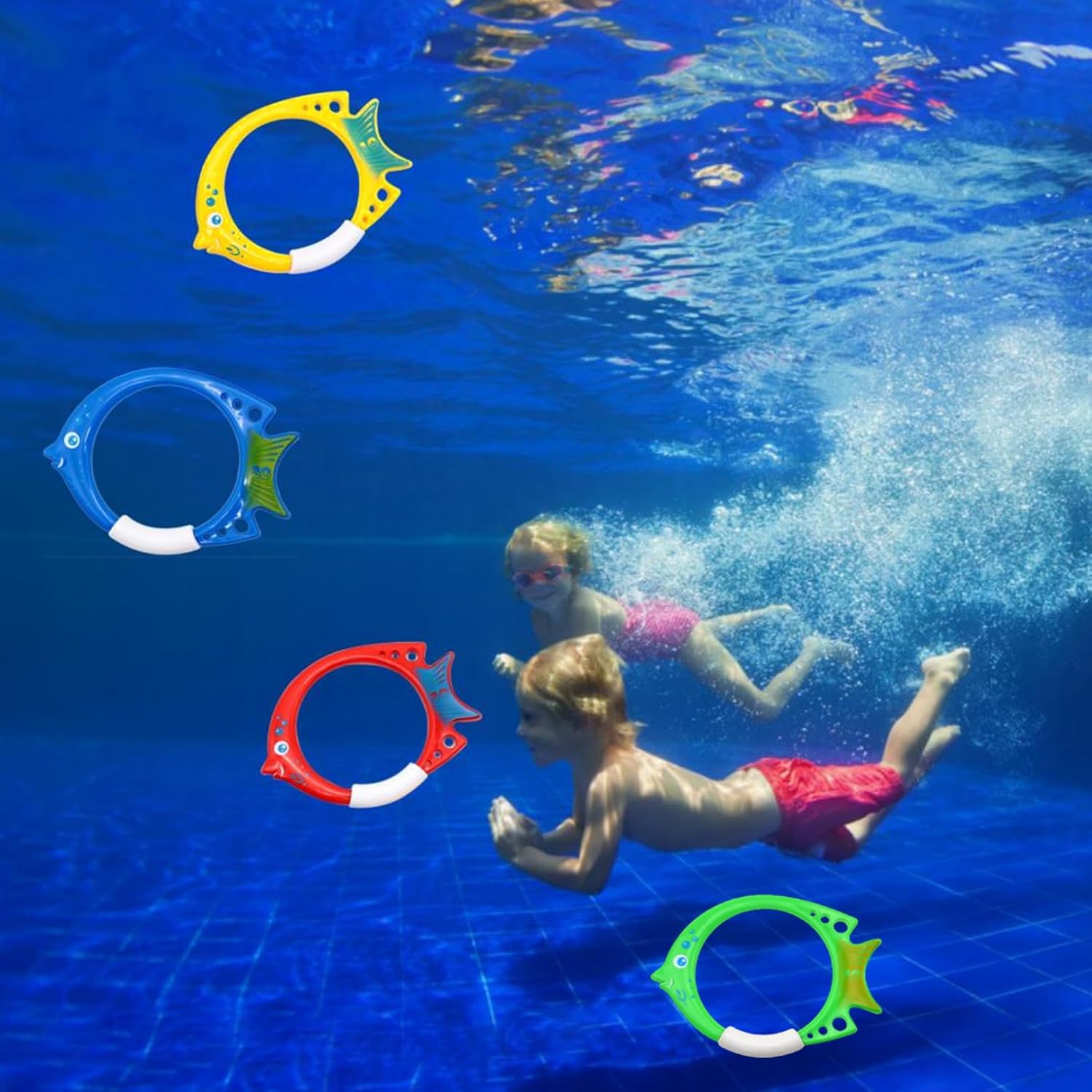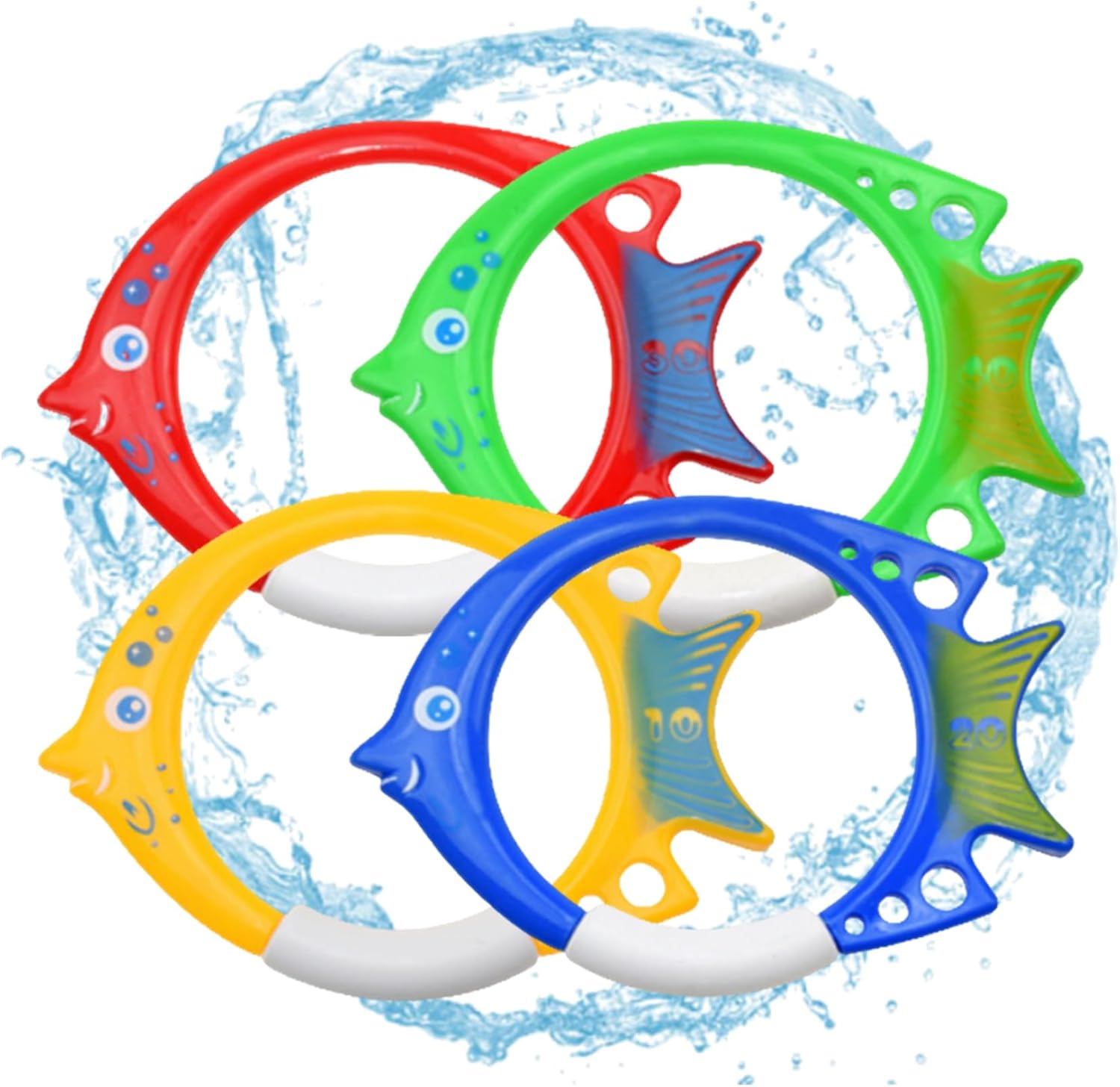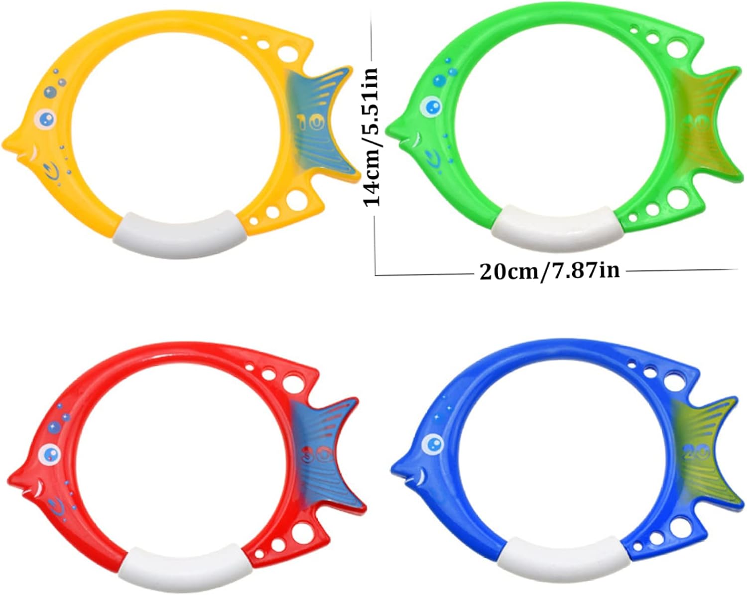 Facile da usare: getta semplicemente questo anello subacqueo nell'acqua, guardalo affondare e poi tuffati per prenderlo..Questo è un buon modo per migliorare le abilità di nuoto e immersione dei bambini. Materiale: gli anelli per immersione sono realizzati in materiale PVC, il nostro anello affondante è ecologico da usare. Dimensioni e colore brillante: le dimensioni degli anelli per le immersioni sono 20x14 cm/7,87x5,51 pollici, giocattoli da piscina con colori vivaci, facili da afferrare per i giovani nuotatori. : Riceverai 4 anelli da immersione..I giocattoli subacquei per bambini sono perfetti per i tuoi bambini durante la festa di compleanno, le vacanze estive, le lezioni di nuoto, ecc. Anello da allenamento: gli anelli affondanti per il nuoto subacqueo sono un ottimo modo per aiutare i nuotatori a migliorare le proprie abilità. I nostri giocattoli subacquei sono un'ottima aggiunta a qualsiasi festa in piscina.