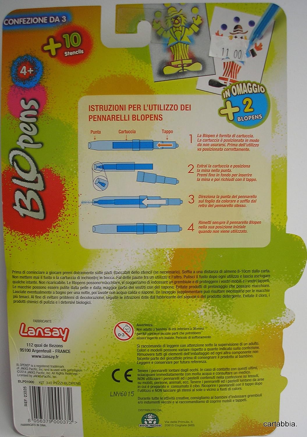 Pennarelli Blopens Confezione Da 3 Pezzi La Blopens È Fornita Di Cartuccia Che Deve Essere Correttamente Posizionata Prima Dell'Utilizzo Direziona La Punta Del Pennarello Sul Foglio E Soffia Dal Retro Del Pennarello Stesso