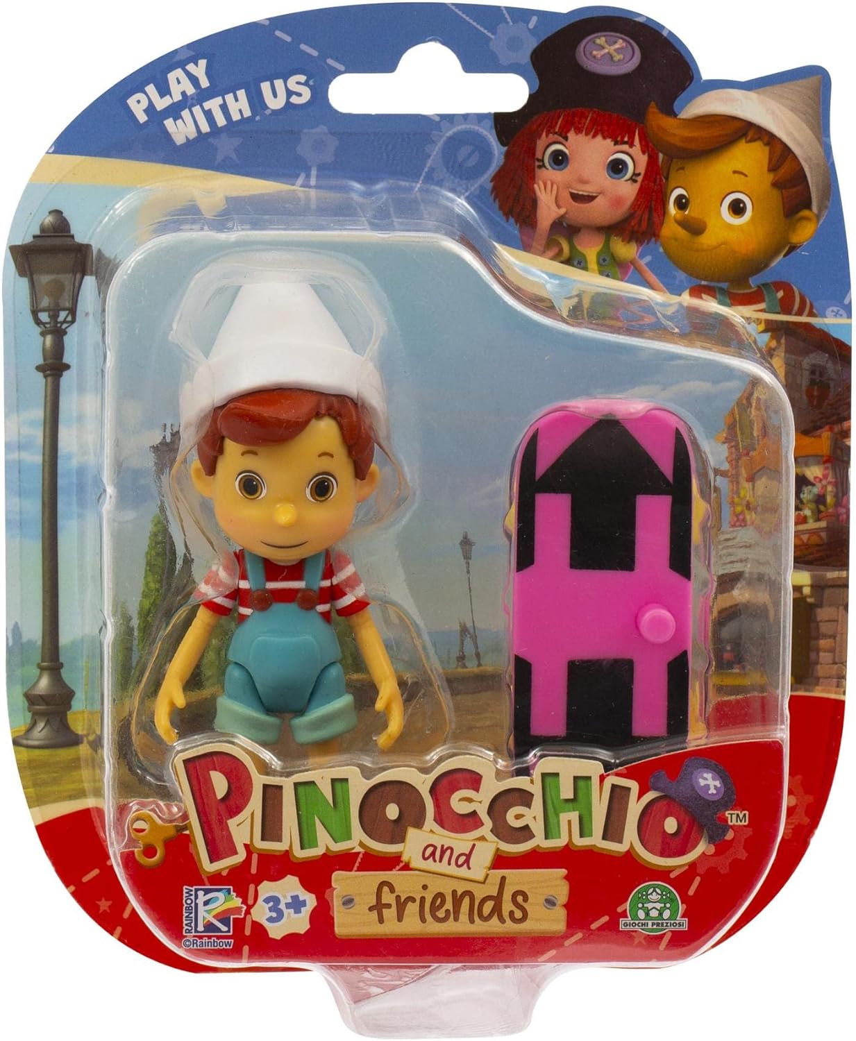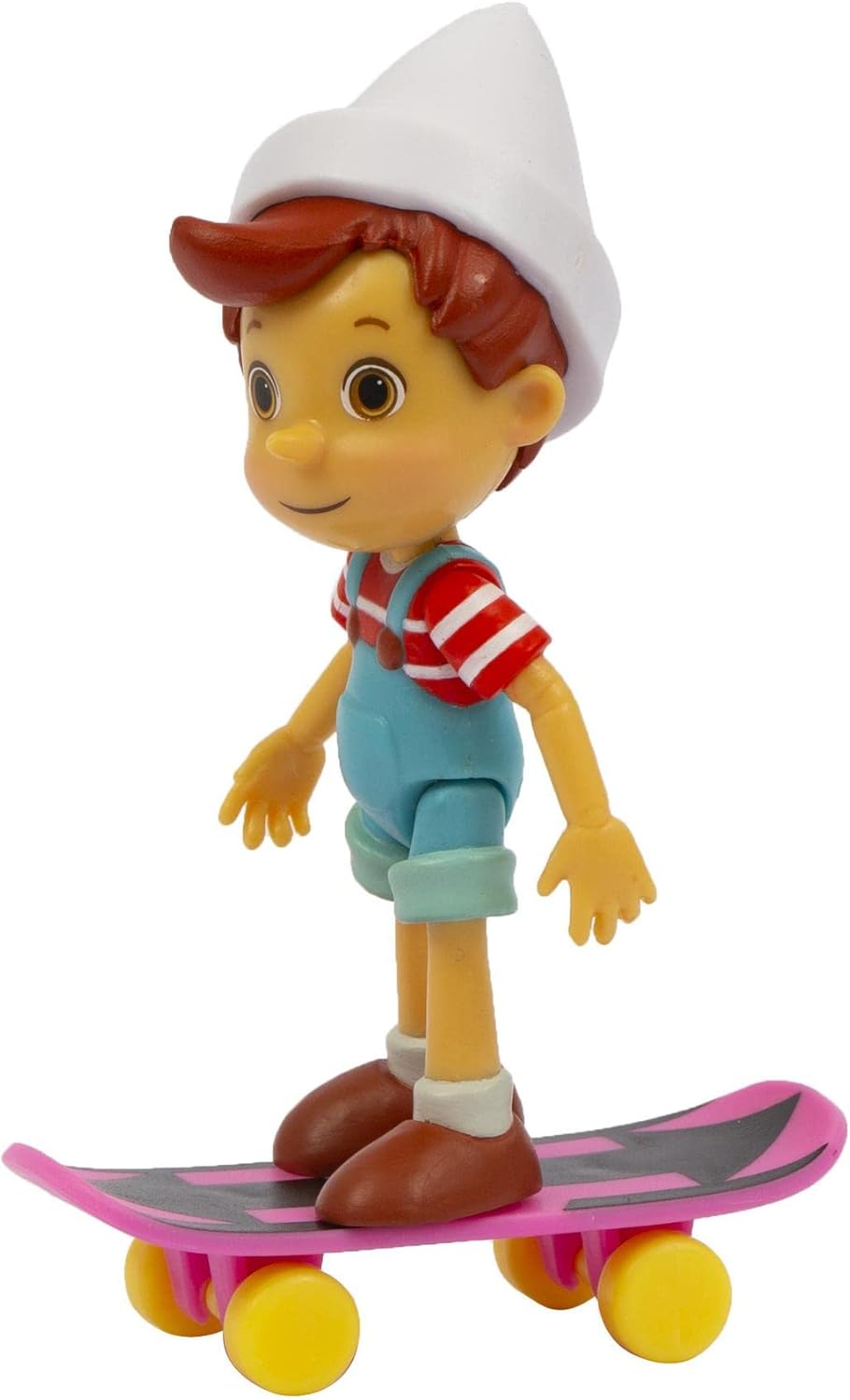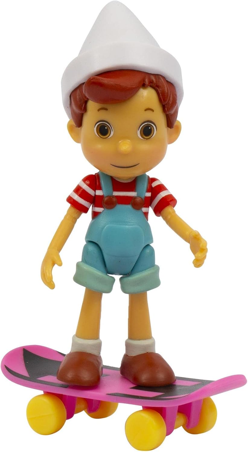 Pinocchio personaggio singolo articolato con skate Personaggi Pinocchio e Frida alti circa 9 cm Pinocchio proprio come nel cartone animato Collezionali tutti; in 3 versioni: Pinocchio con skateboard; Pinocchio con manina appiccicosa e Frida con skateboard. Cod Personaggi con PIN sotto i piedi per fissarli allo skateboard