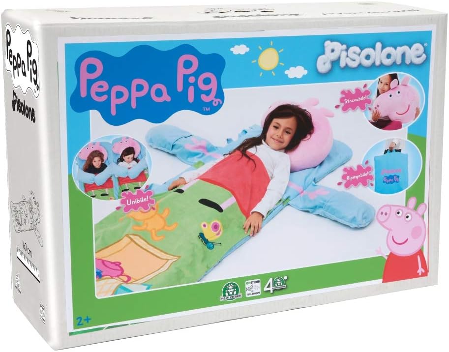 Pisolone Peppa Pig La testa di Peppa è un cuscino staccabile e lavabile Nicchia nelle zampe per poter inserire le mani del bambino e consentire l'abbracci Possibilità di unire 2 o più pisoloni Lavabile in lavatrice a 40