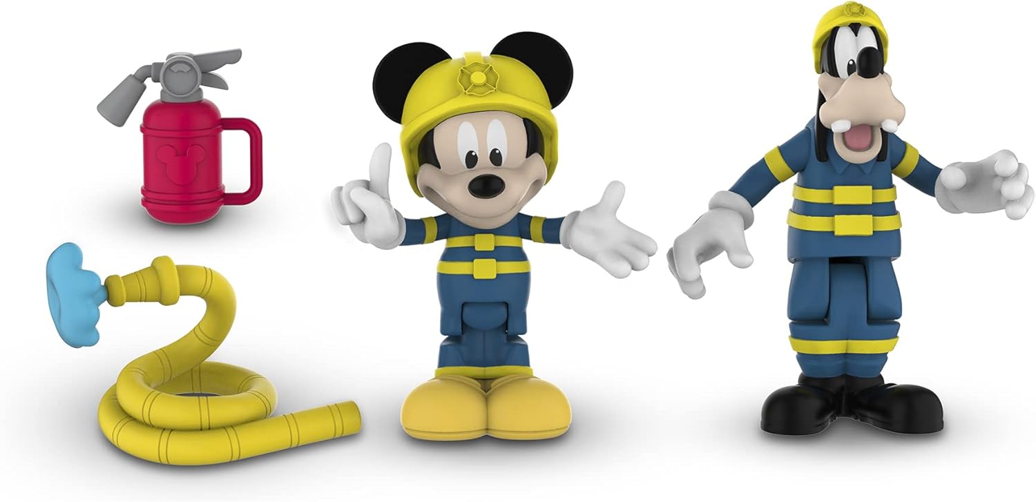 Giochi Preziosi - Topolino Coppia di Mini Personaggi, Topolino e Pippo Pompieri 8 cm, Articolati con 4 Punti di Articolazione, Collezionali Tutti, per Bambini a Partire dai 3 Anni, MCC04310