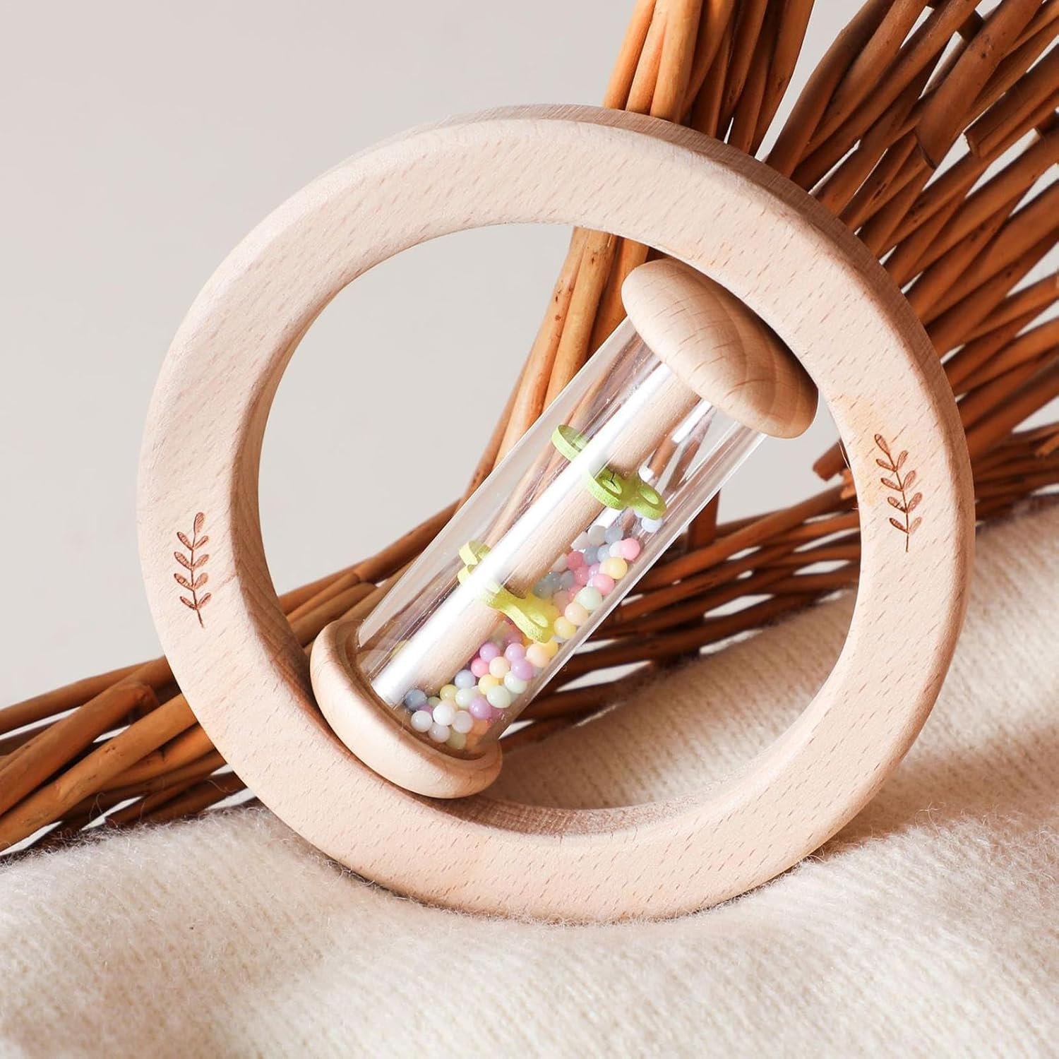 Sviluppo motorio: Favorisce il perfezionamento delle abilità visive, acustiche e tattili con elementi cromatici accattivanti, stimoli sonori armoniosi e superfici levigate adatte alle piccole mani Esperienza Sensoriale:I sonagli di legno generano un morbido fruscio allo scuotimento con particelle sonore incorporate che imitano suoni naturali, aggiungendo divertimento e stimolando la scoperta durante l'esplorazione ludica. Lunga Durata::La struttura in materiale resistente e antiscivolo previene deformazioni nel , garantendo un sonaglio in legno durevole che accompagna il bambino in diverse fasi di crescita con sicurezza costante. 3. Design Sicuro: Angoli arrotondati e curvatura studiata prevengono urti e scivolamenti, offrendo una presa confortevole che risponde alle preferenze di presa dei bimbi durante il gioco. Tappe Evolutive: Favorisce le tappe dello sviluppo combinando stimolazione sonora ed elementi manipolabili, migliorando la risposta uditiva e la sincronizzazione occhio-mano attraverso scenari d'uso variati