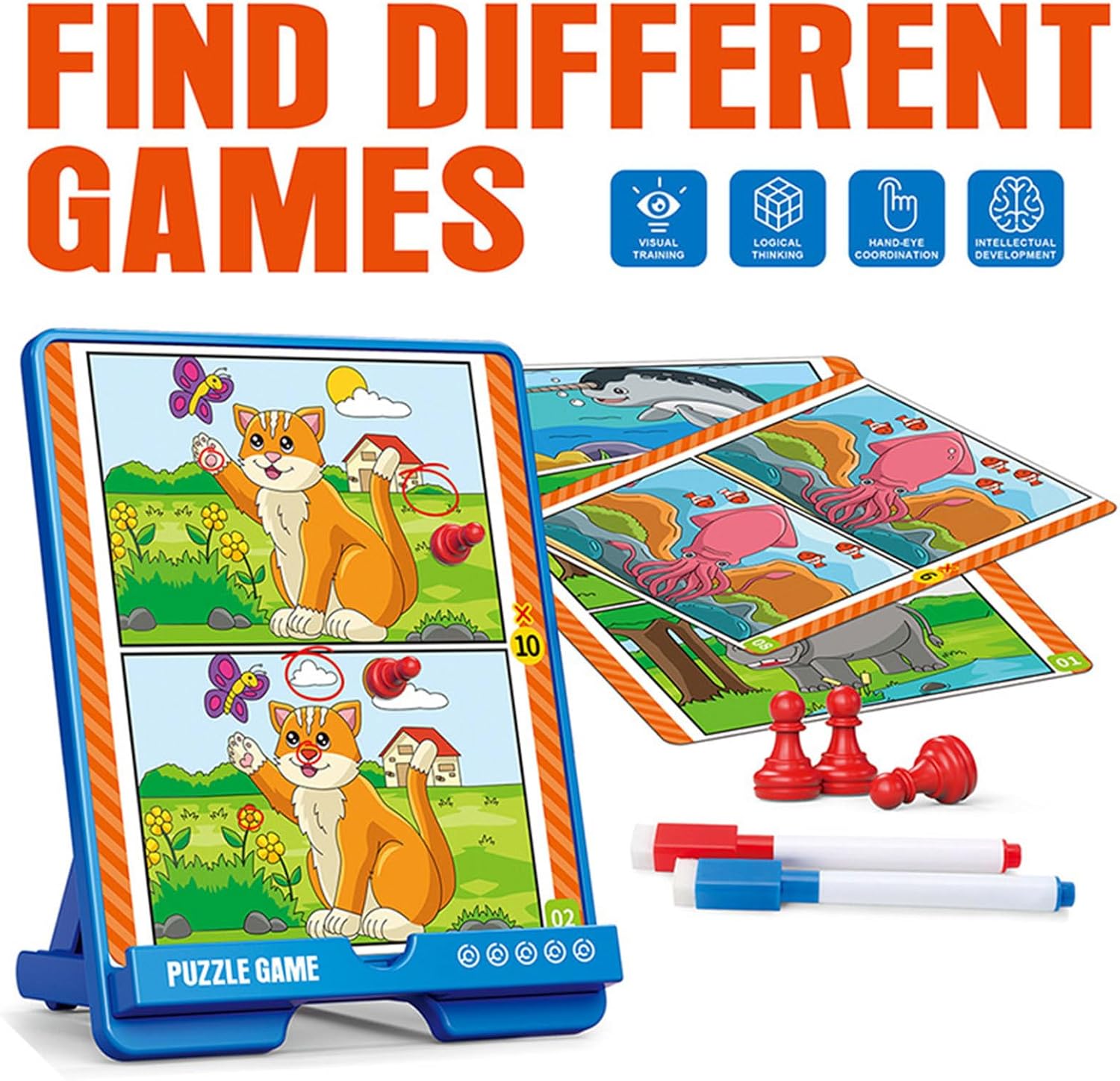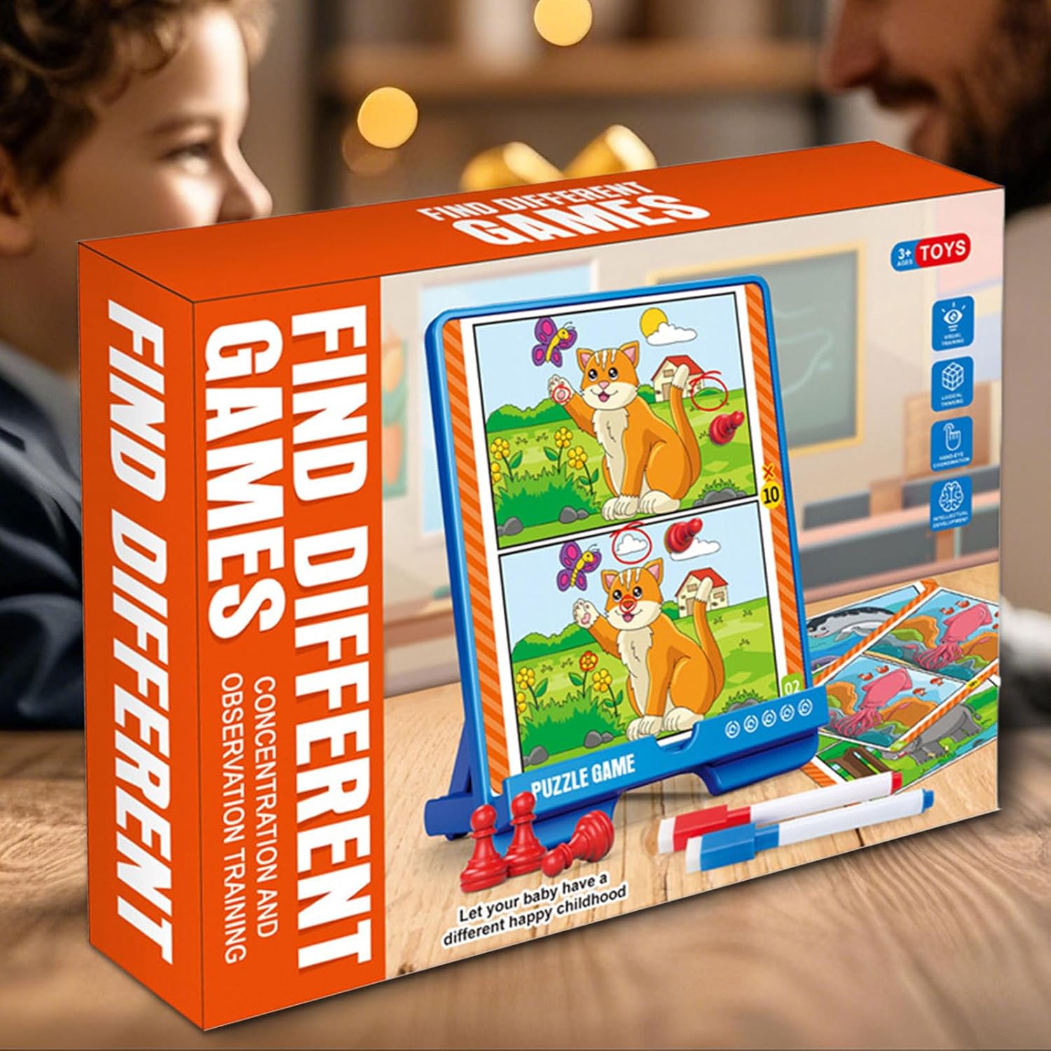 Allenamento Mentale: Ogni sessione di gioco allena capacità cognitive attraverso l'osservazione attenta e il pensiero critico, rafforzando memoria a lungo termine, pazienza e coordinazione occhio-mano, mentre i rompicapo strutturati sviluppano competenze logiche essenziali per l'apprendimento quotidiano. Consolida i rapporti familiari: Gameplay interattivo che incoraggia il insieme, insegna la collaborazione e rinsalda i legami familiari durante attività condivise e piene di divertimento Sicuro e resistente: Realizzato con materiali sicuri e progettato per i bambini, questo gioco "trova le differenze" favorisce un gioco salutare riducendo il davanti schermo, garantendo resistenza per un divertimento duraturo Interesse all'Apprendimento: Migliora concentrazione e coinvolgimento con immagini vivaci ad alto contrasto, stimolando la curiosità didattica e garantendo divertimento nelle attività di scoperta giocosa per tutte le età Logica e Precisione: Aumenta la precisione nell'identificare dettagli, consolida le abilità osservative e favorisce la discriminazione visiva con lo sviluppo del pensiero logico in formato stimolante