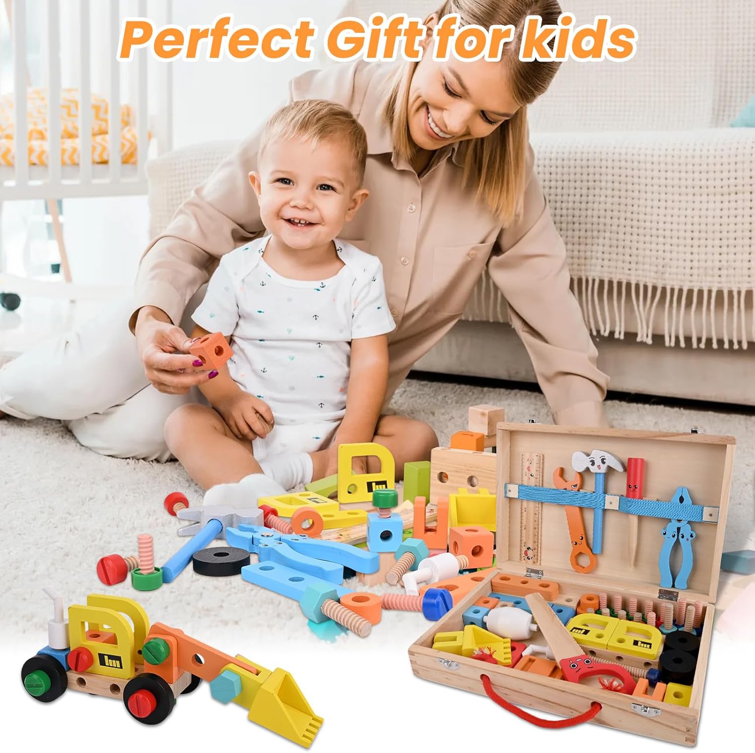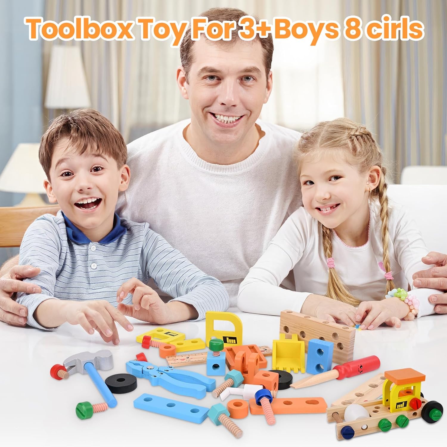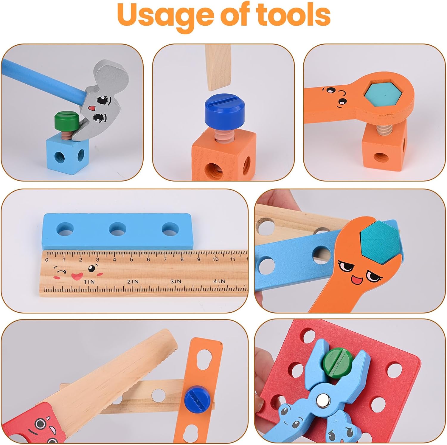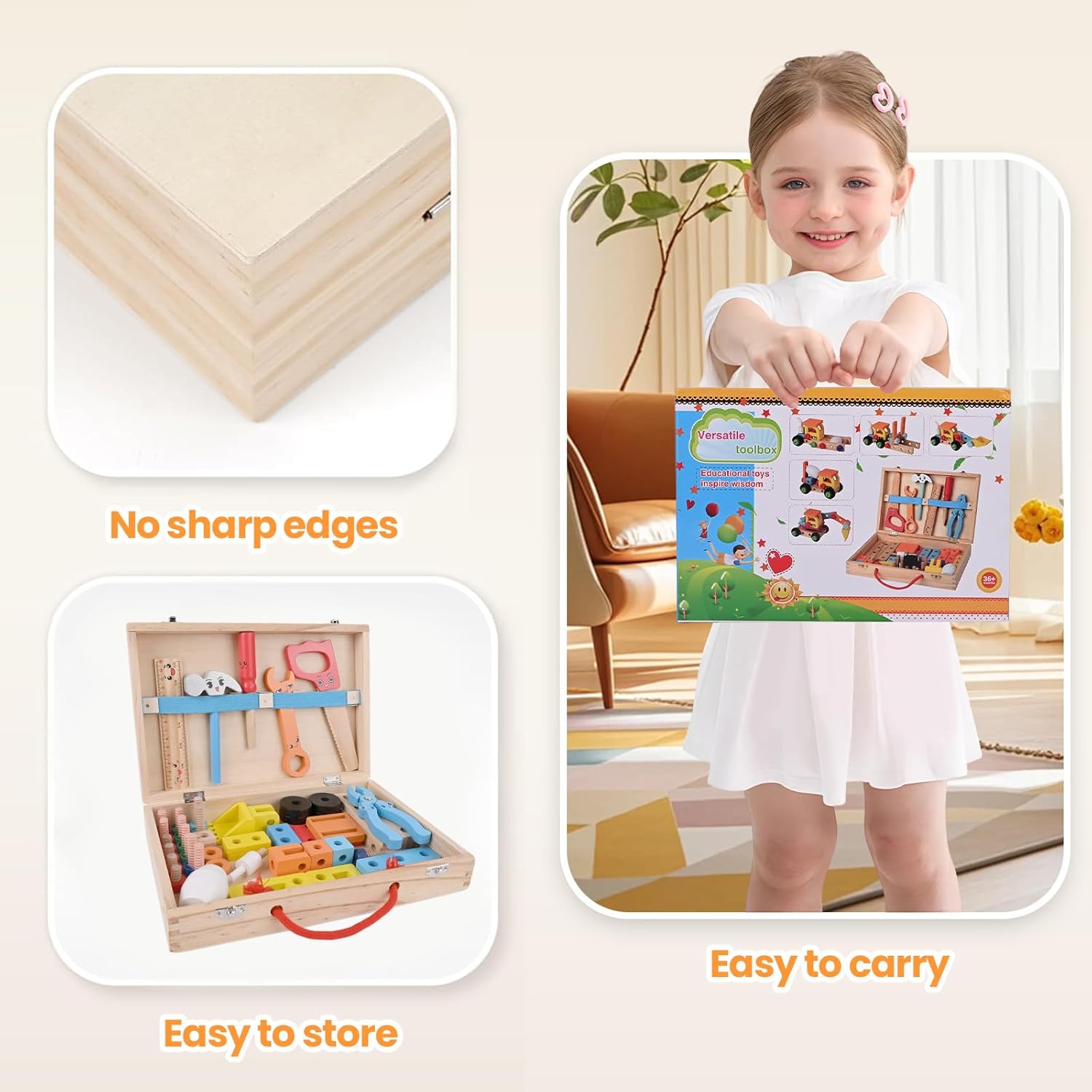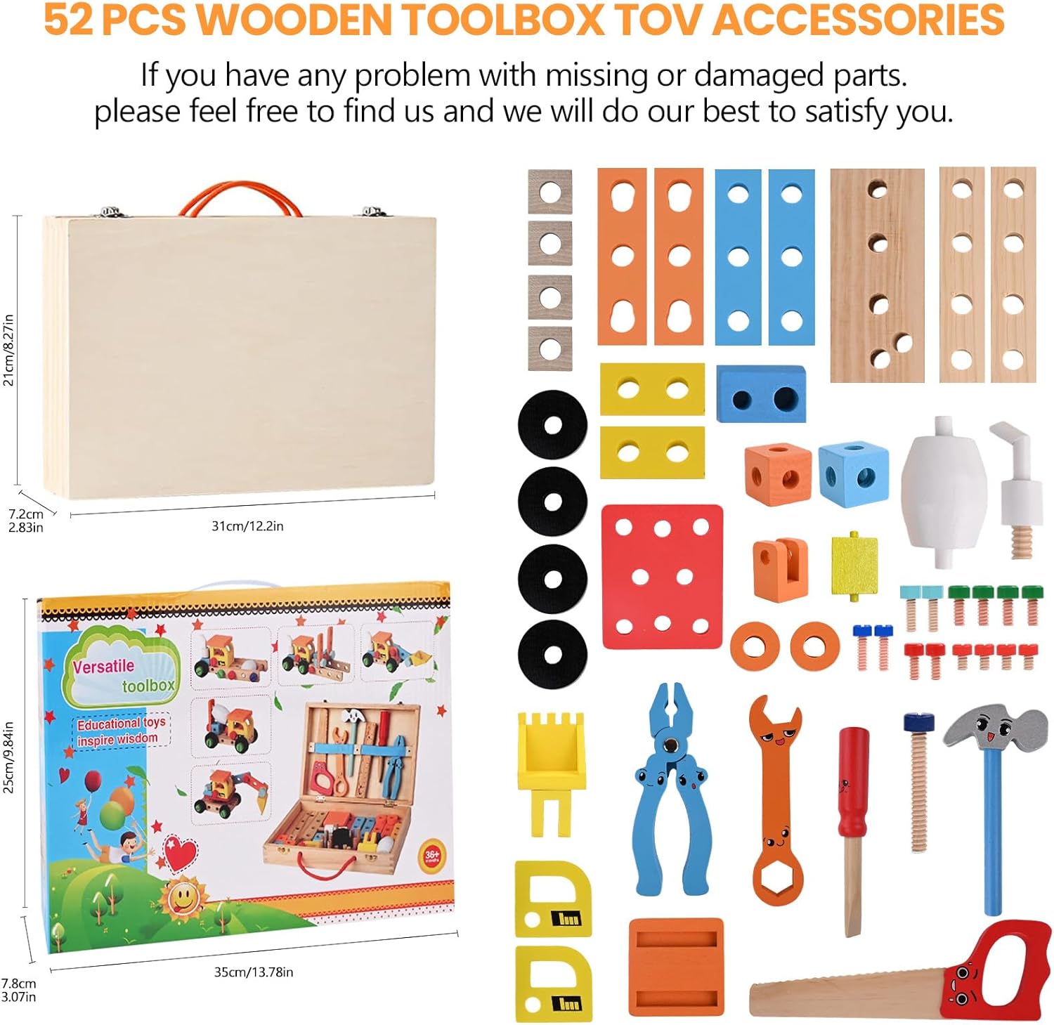 【Set di 52 pezzi di giocattoli Montessori in legno per auto】 Un set completo di utensili in legno con martello, cacciavite e viti per sviluppare le capacità motorie fini e la coordinazione occhio-mano: il giocattolo didattico perfetto per gli ingegneri in erba dai 3 anni in su. 【Giocattoli educativi per bambini dai 3 anni in su】 Mentre i bambini giocano a fare gli ingegneri e sperimentano l'assemblaggio di pezzi colorati in vari modi, imparano a risolvere i problemi e a riconoscere le forme. 【Cassetta degli attrezzi portatile in legno】 Questa cassetta dei giocattoli funge anche da contenitore e custodia per il trasporto. Tutti i pezzi e gli accessori possono essere organizzati ordinatamente al suo interno, incoraggiando i bambini a riordinare dopo aver giocato e a sviluppare capacità organizzative. È anche comoda per le avventure in movimento. 【Giocattolo in legno sicuro e resistente】 Realizzata in legno di alta qualità, questa cassetta degli attrezzi per bambini è costruita per resistere a un uso prolungato e al gioco. Senza spigoli vivi o parti appuntite, garantisce un gioco sicuro per le manine dei più piccoli. 【Legame genitoriale】 Questa cassetta degli attrezzi serve come mezzo per l'interazione familiare e il rafforzamento delle relazioni. I genitori possono costruire giocattoli in legno insieme ai loro figli, approfondendo il loro legame. 【Regalo premuroso per bambini e bambine】 Ideale per l'educazione prescolare, i giochi di ruolo, lo sviluppo delle capacità motorie fini, i giochi Montessori, Natale, compleanni e giochi educativi. Adatto a bambini di 3, 4, 5 anni e oltre.