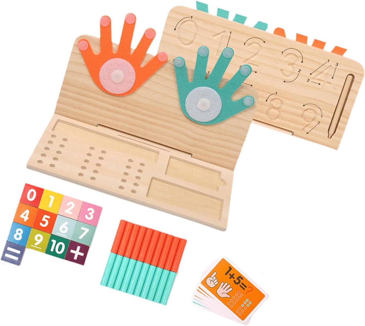 【Capacità motorie fini】: i blocchi di conteggio numerico per bambini possono migliorare le capacità di pensiero logico, cognitive, la coordinazione occhio-mano e la capacità di problem solving dei bambini. È un giocattolo molto pratico per l'interazione genitore-figlio. 【Regalo】: Il gioco di matematica con le dita è adatto a bambini dai 3 anni in su. È un giocattolo ideale per compleanni, vacanze e viaggi per bambini e bambine. 【Giocattoli di conteggio】: il giocattolo di apprendimento prescolare può aiutare i bambini a comprendere e padroneggiare i concetti matematici di base, tra cui il conteggio, il riconoscimento dei numeri, l'addizione e la sottrazione e a sviluppare le capacità cognitive matematiche dei bambini 【Materiale】: ausili didattici per l'addizione e la sottrazione matematica sono realizzati in legno e carta, con bordi lisci, resistenti all'usura, non facili da deformare e di lunga durata. 【Educativo e divertente】: i per la matematica sono progettati per i bambini dell'asilo, per aiutarli a imparare le operazioni matematiche attraverso le dita. I bambini possono imparare e comprendere la matematica attraverso la pratica.