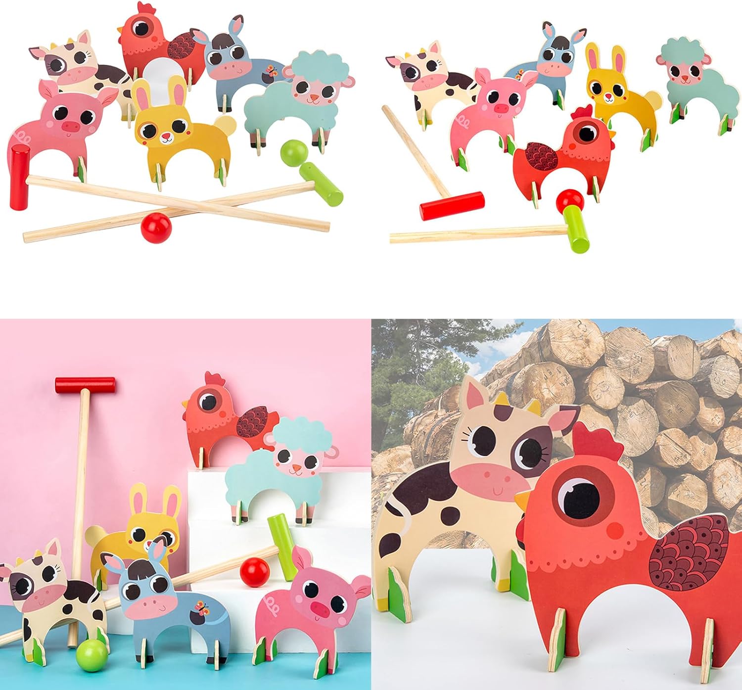 Sia per una giornata informale nel tuo cortile, riunioni di famiglia o attività educative in età prescolare, questo set da biliardo offre un coinvolgente gioco all'aperto per bambini e adulti Gioco in legno progettato per intrattenere e sfidare giocatori di tutte le età Realizzato in legno, questo set da biliardo presenta parti staccabili per una facile portabilità e stoccaggio, insieme a forma di animale dei cartoni animati che aggiungono un tocco giocoso al gioco classico Crea un ambiente divertente e coinvolgente per i bambini, sia in giardino che al coperto Adatto per bambini dai 3 anni in su, questo gioco di animali in legno migliora la coordinazione occhio-mano, le abilità motorie e accelera i tempi di risposta