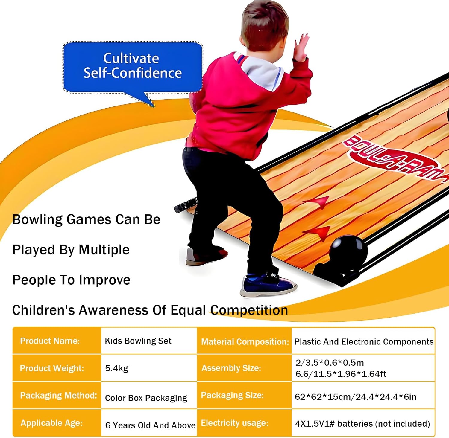 【BOWLING ELETTRICO】Realizzato in plastica atossica di alta qualità e componenti elettronici robusti, questo set da bowling è sicuro per bambini dai 6 anni in su. Il set da bowling include 6 birilli in plastica e 2 palle da bowling. I birilli e le palle da bowling sono realizzati in plastica di alta qualità, atossica e sicura per i bambini. 【PUNTEGGIO ELETTRONICO E RESET AUTOMATICO DEI BIRILLI】Il tabellone segnapunti a LED integrato tiene traccia automaticamente del punteggio dopo ogni lancio. I birilli si resettano con un suono realistico per un'esperienza più coinvolgente. Consiglio: evitare di lanciare la palla quando la luce di reset è accesa per garantire il corretto funzionamento. 【FEEDBACK REALISTICO DEL COLPO】Simula il peso e il movimento reali delle palle da bowling con prestazioni di rotolamento fluide. Goditi un feedback realistico del colpo ogni volta che colpisci i birilli. La corsia di ritorno curva assicura che la palla scivoli indietro senza sforzo. Facile da piegare e riporre quando non in uso. 【FACILE DA INSTALLARE】Set da bowling elettrico portatile per uso domestico, che semplifica e velocizza l'installazione del gioco, simula bene il peso relativo della palla ed è abbastanza scorrevole da poter essere ripiegato quando non in uso, senza lasciare angoli. 【DIVERTIMENTO INTERATTIVO PER TUTTA LA FAMIGLIA】Goditi il momento di creare un legame tra genitori e figli con questo gioco di bowling elettronico interattivo. Supporta sia la modalità a 1 giocatore che a 2 giocatori: basta premere un pulsante per iniziare! Perfetto per giocare al chiuso e rafforzare i legami familiari attraverso una competizione amichevole.