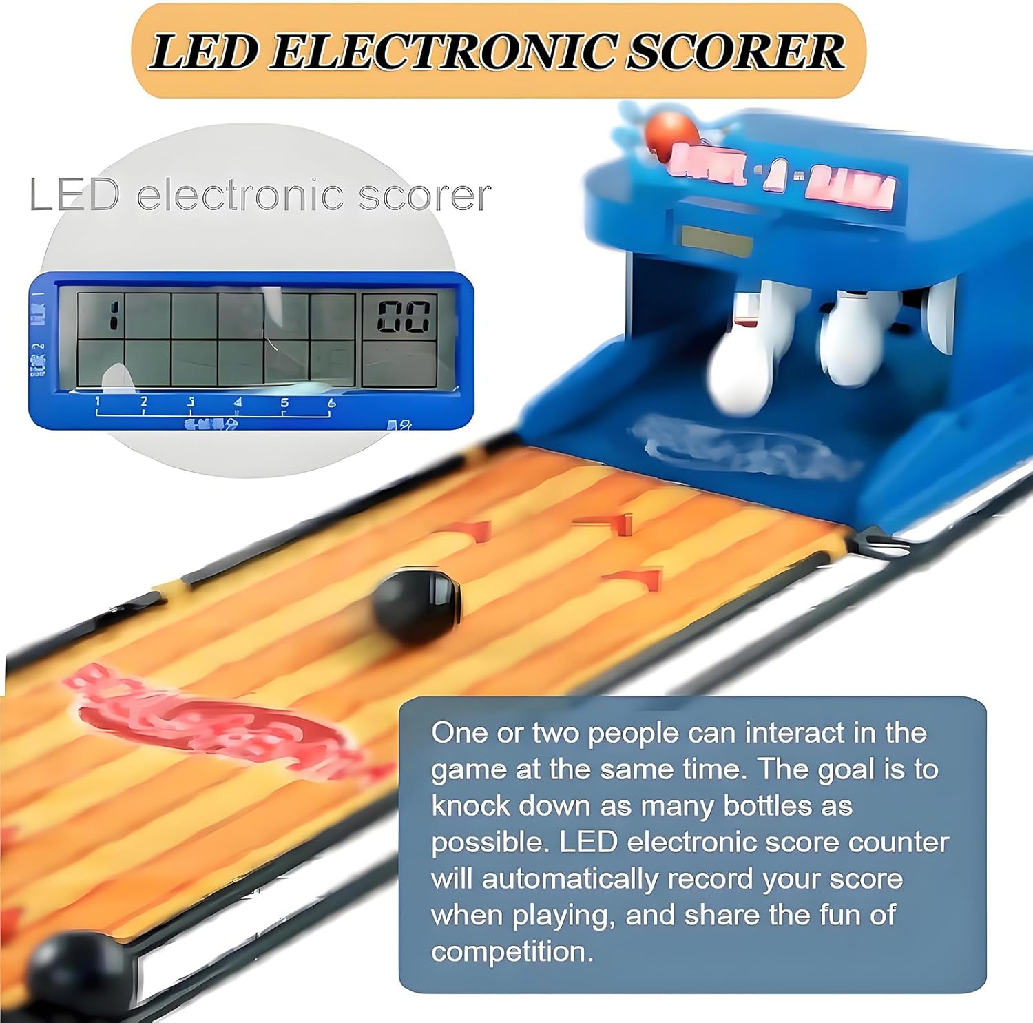 【Set da bowling elettronico】Trasforma il tuo soggiorno in una pista da bowling con il nostro set da bowling elettronico. Goditi la comodità del ritorno automatico della palla e delle funzioni di punteggio. Viene fornito con 6 birilli in plastica e 2 palle da bowling. 【Dispositivo di punteggio a LED】Le piste da bowling domestiche supportano giochi interattivi per 1 o 2 persone contemporaneamente. L'obiettivo è abbattere il maggior numero possibile di birilli. Durante il gioco, il segnapunti elettronico a LED registrerà automaticamente il tuo punteggio e condividerà il divertimento del gioco. 【Ritorno automatico della palla】La palla si ripristinerà automaticamente quando colpisce la bottiglia dopo averla lanciata nella tua mano ed emetterà un suono simulato di ripristino per rendere il gioco più reale e pratico. 【Migliora il legame familiare】Il bowling è divertente, interessante, competitivo e abile. I giochi possono avvicinare le persone. È un ponte di comunicazione tra famiglia e bambini, rendendo la famiglia più armoniosa e gioiosa. 【Installazione semplice】Compatto e leggero, questo set da bowling elettrico può essere rapidamente montato o ripiegato, rendendolo comodo per l'uso domestico senza occupare molto spazio.