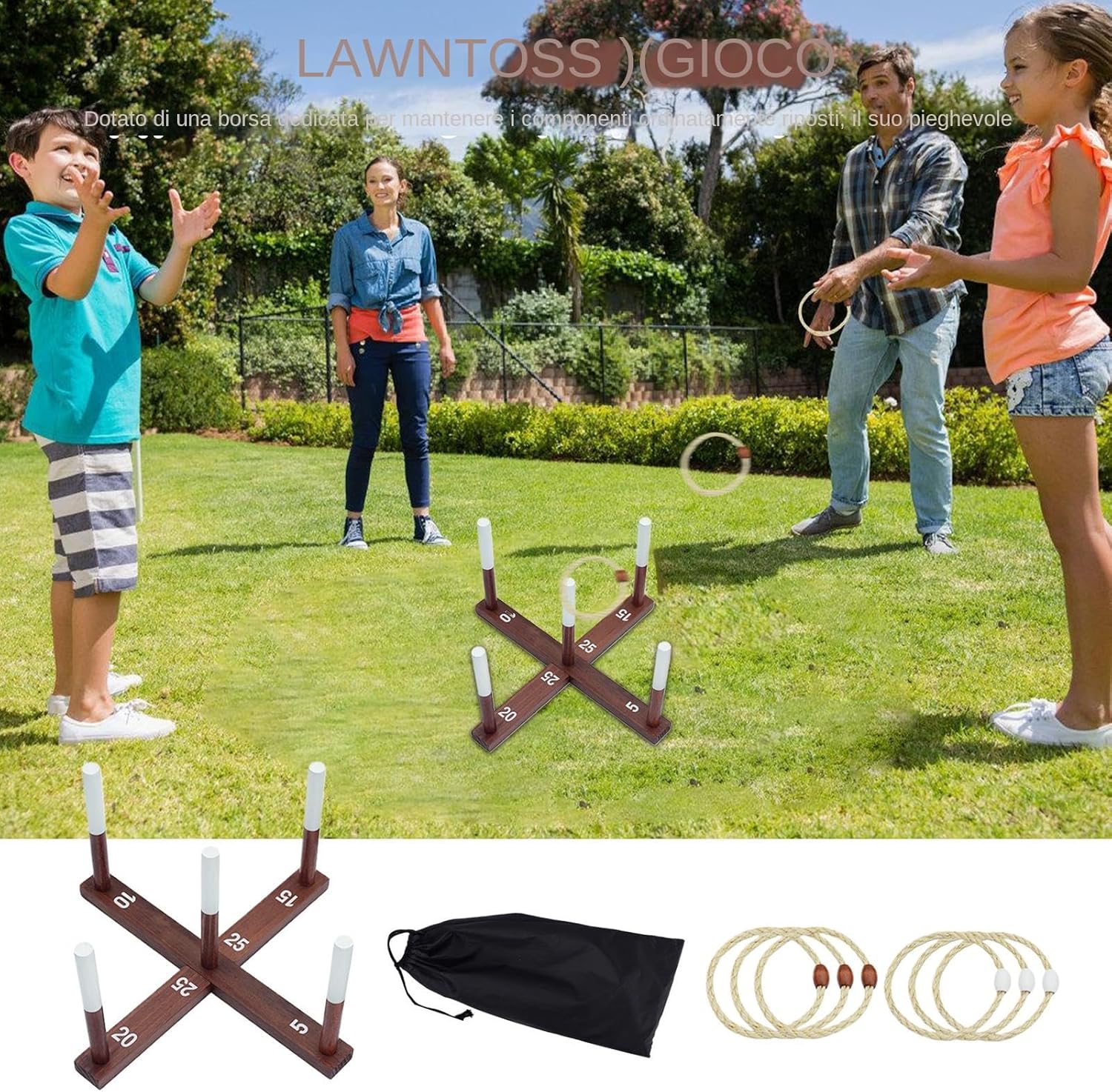 Divertimento Inclusivo: Realizzato per una presa confortevole dei bambini e un uso senza fatica degli adulti. Il gioco leggero incoraggia il coinvolgimento immediato, promuovendo momenti di gioia condivisa durante raduni e libero. Divertimento Affidabile: Progetto con telaio robusto e anelli intrecciati a mano con materiali adattabili migliora la sicurezza e garantisce un lancio per utenti di qualsiasi età. Promuove Abilità Motorie: Offre un'azione di lancio emozionante con anelli multipli e livelli di difficoltà adattabili, potenziando le capacità motorie garantendo competizione piacevole per tutti i partecipanti Design Efficiente e Pratico: Borsa inclusa per organizzazione immediata; concepito per trasporto agevole, design compatto adatto a divertimento indoor e outdoor Montaggio Rapido e Utilizzo Adattabile: Progettato per installazione immediata e gioco versatile, questo gioco di lancio anelli è adatto a diverse superfici, per attività di gruppo, campeggio e feste con intrattenimento coinvolgente per tutte le età garantendo divertimento senza sforzo