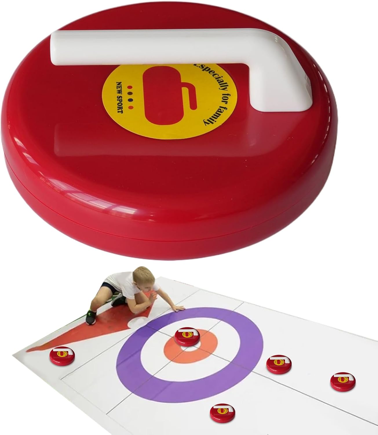Gioco Curling Robusto: Progettato per un utilizzo intenso, questo gioco del curling combina un gameplay realistico con materiali ABS perfetti, assicurando resistenza all'usura e agli urti per un divertimento costante in molteplici sessioni di allenamento. Design Leggero e Compatto: Offre compatibilità multiscenica per divertimento indoor/outdoor. Il peso contenuto assicura portabilità estrema e stoccaggio semplificato, ideale per uso didattico e competitivo, creando momenti di condivisione familiare. Nessuna Pista Ghiaccio: Ottieni scorrimento su superfici artificiali, elimina la necessità di una pista di ghiaccio reale e rende il prodotto ideale per l'insegnamento del curling a secco in modo efficace. Scelta Ottimale: Strumento per curling su pavimento offre dinamiche di rotazione stabili e feedback tattile migliorato, permettendo agli utenti di affinare la con precisione e sicurezza durante l'allenamento di curling indoor Sicurezza Accessibile:Offre un'esperienza di curling sicura e intuitiva che sviluppa lavoro di e strategia, adatta a contesti di gruppo come palestre e centri ricreativi.