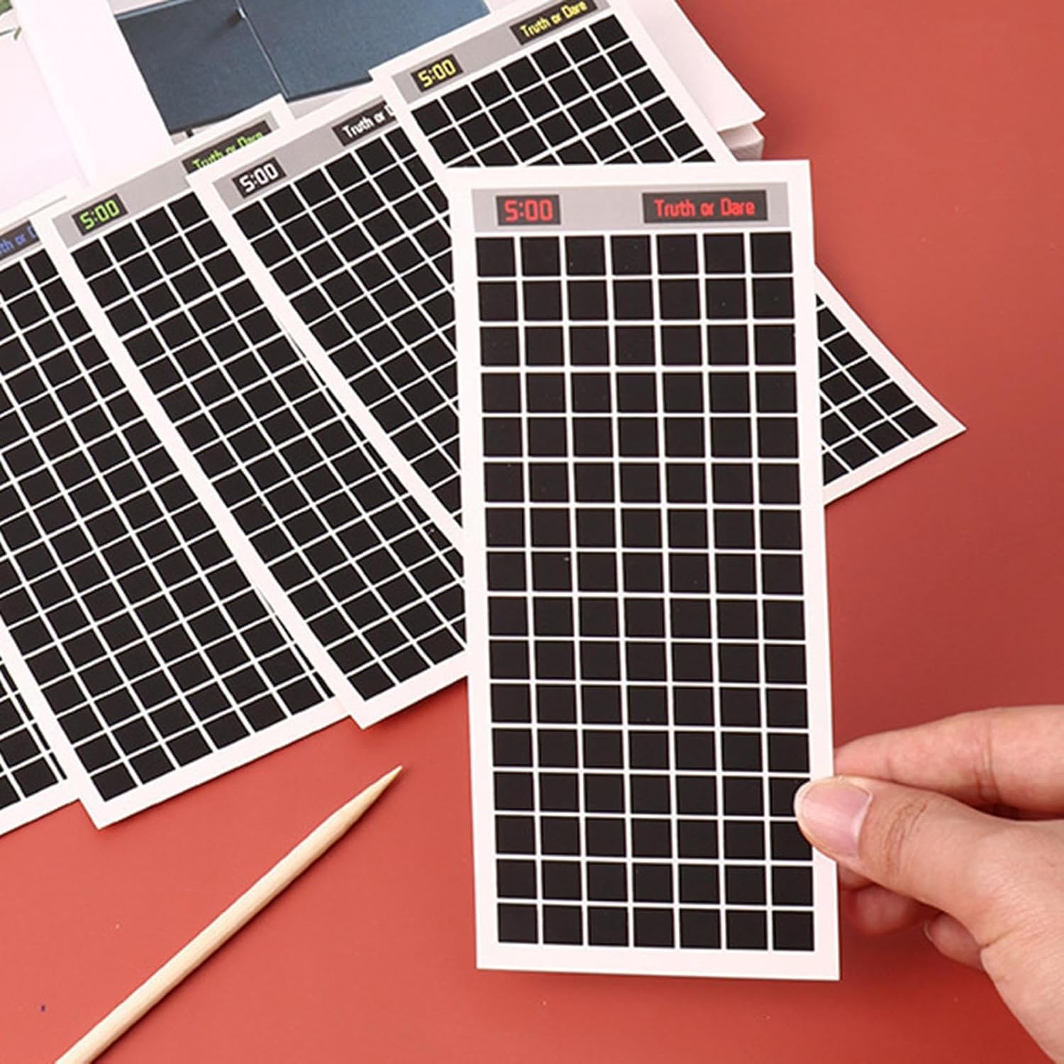 Gioco sociale e intelligente: non è solo un hobby, è un"attività divertente per riunioni che migliora l"interazione grazie al suo design intelligente e al suo concetto di gratta che incoraggia il gioco strategico e il divertimento condiviso. Attività di gruppo energetica: mescola le sfide di grattare familiari con colpi di scena competitivi, crea un'atmosfera festosa vivace che alimenta lavoro di squadra e connessione tramite dinamiche multiplayer Facile da riporre: la struttura ultraleggera permette di riporlo rapidamente in qualsiasi borsa o zaino, facilitando l'accesso quotidiano durante i viaggi o momenti di intrattenimento casual. Opzione versatile: set da grattare indispensabile per eventi familiari, riunioni con gli amici o collaborazione tra colleghi. Offre un modo innovativo per godersi momenti in viaggio, avventure in campeggio, feste e altro ancora. Regole semplici: Progettato per essere facile, la sua natura intuitiva consente ai giocatori di concentrarsi sul godersi l'emozione di scoprire soluzioni raschiando e deduzione, adatto a tutte le età.