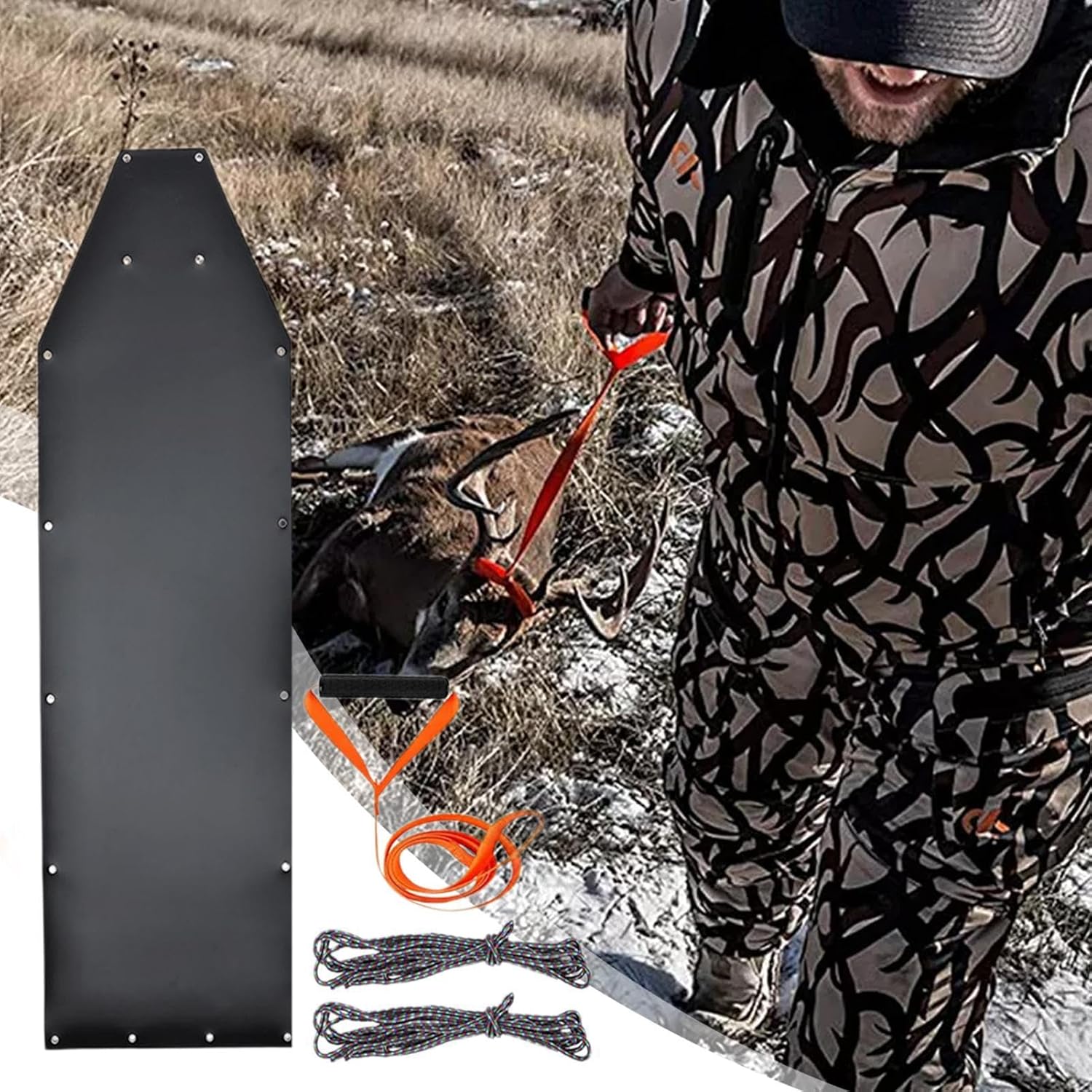 Spessore e alta resistenza: realizzato in PVC composito resistente spesso 1,2 mm, un design robusto con corda di nylon per la massima resistenza e stabilità, garantendo che possa sopportare il peso anche del cervo più grande Efficienza migliorata: grazie alla struttura robusta, questa slitta da cervi trasporta il vostro prezioso pescato, risparmiando tempo ed energia durante le vostre battute di caccia. Goditi un'esperienza più fluida sul campo Trasporto efficiente del gioco: rivoluziona il tuo gioco con questa slitta di cervi. La sua consistenza liscia rende la pulizia dopo l'uso un gioco da ragazzi consentendo un carico e uno scarico facili e veloci Capacità versatile: pronta per qualsiasi terreno, questa slitta scivola senza sforzo su erba, radici degli alberi, sabbia, terra, fango, neve e ghiaccio, rendendolo perfetto per trasportare prede su una varietà di terreni Prestazioni versatili e facilità: sperimenta il trasporto e lo stoccaggio senza sforzo di questa slitta per cervi dal design portatile e compatto. Perfettamente adatto per una varietà di attività all'aperto, può facilmente gestire carichi pesanti, trasportare legna da ardere, attrezzatura da campeggio o qualsiasi altra attrezzatura.