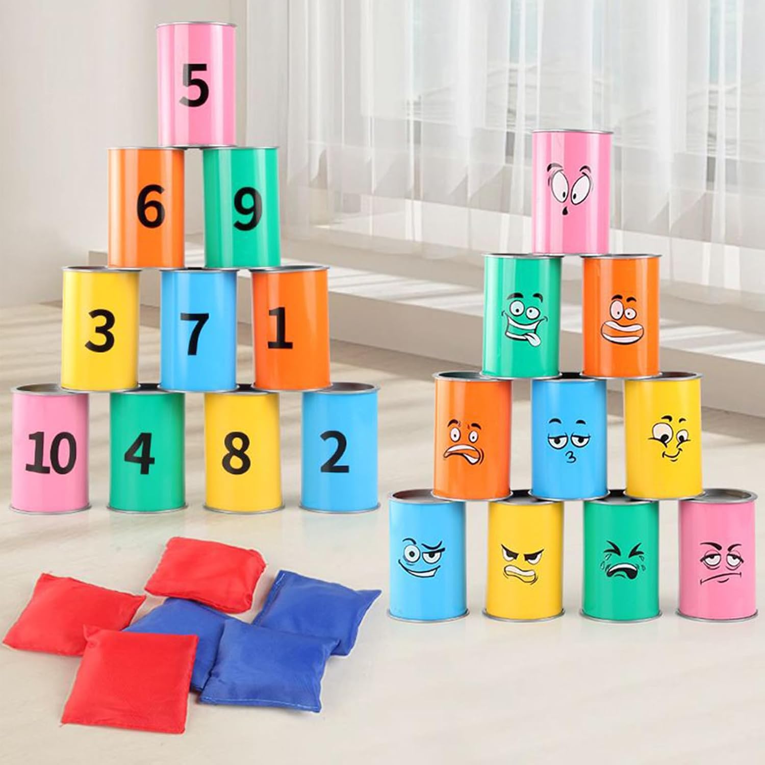 Materiale ABS Resistente: Realizzato in robusto materiale ABS, questo gioco del bagher resiste a lanci e cadute ripetuti, garantendo divertimento duraturo all aperto e prestazioni costanti in vari ambienti grazie alla sua costruzione e affidabile Costruisce Concentrazione e Precisione: Aumenta la coordinazione occhio-mano mentre migliora la concentrazione e la precisione per i bambini, con un gioco coinvolgente di lancio del sacchetto Lattine Impilabili Divertenti: Scopri la gioia di un gioco di lancio con lattine impilabili progettate per l'azione di caduta, unendo le famiglie durante riunioni, feste o campeggi con risate condivise e esperienze di indimenticabili per tutti i gusti e le età in svariate occasioni di intrattenimento Design interattivo: Scopri la versatilità di gioco con un design a doppia faccia, che offre numeri su un lato e simpatiche facce buffe per rendere ogni sessione di lancio più coinvolgente e dinamica Opzione Regalo: Eccellente per compleanni, barbecue e raduni, assicura divertimento per tutte le età, favorisce l'interazione e crea momenti memorabili in ogni evento