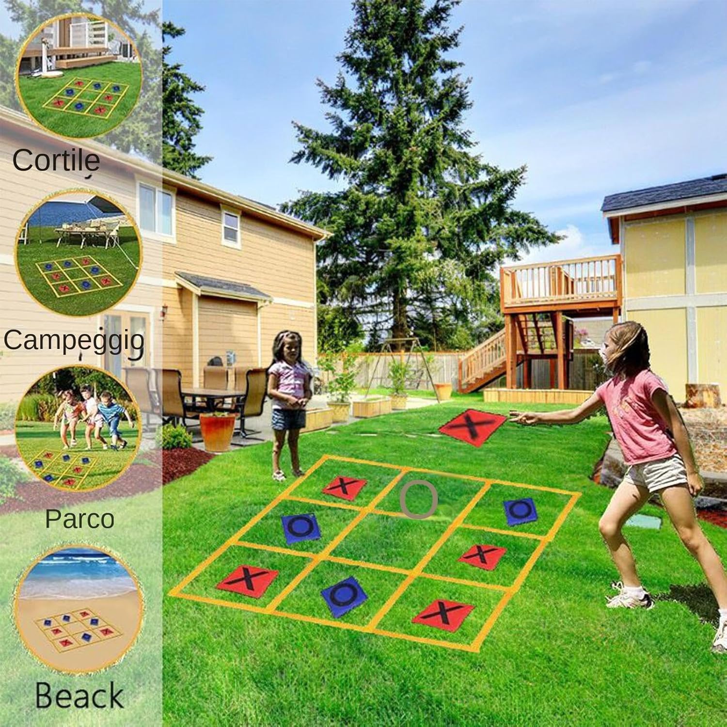 Facile da Trasportare: Progettato per l'uso outdoor con di difficoltà personalizzabile e sacchetto dedicato. Include 6 sacchetti pesati, 4 pioli stabili e tabellone pieghevole che si ripone in 20 secondi, per trasportarlo in auto o conservarlo in spazi ridotti Manutenzione Semplice: Il tessuto spesso mantiene la forma prevenendo deformazioni. Lavaggio rapido assicura igiene e prontezza per nuove sessioni di gioco all'aperto Stabilità Immediata: di fissaggio con integrato permette di cambiare location mantenendo la stabilità del campo da gioco. Nessun assemblaggio complesso - pronto in 3 passaggi. Attività coinvolgente all'aperto: Gioco dinamico per famiglie ed eventi di gruppo, combina strategia e movimento fisico attraverso sfide di lancio. Disponibile con modalità di gioco multiple e opzioni staffetta a squadre per esperienze immersive all'aria aperta che stimolano coordinazione e divertimento condiviso. Include regole personalizzabili per adattarsi a tutte le età. Divertimento Competitivo: Dinamiche di gioco bilanciate equilibrio tra abilità fisica e mentale, perfette per tornei amichevoli. Regole personalizzabili permettono di adattare la difficoltà al livello dei partecipanti, mantenendo alta l'adrenalina del gioco.