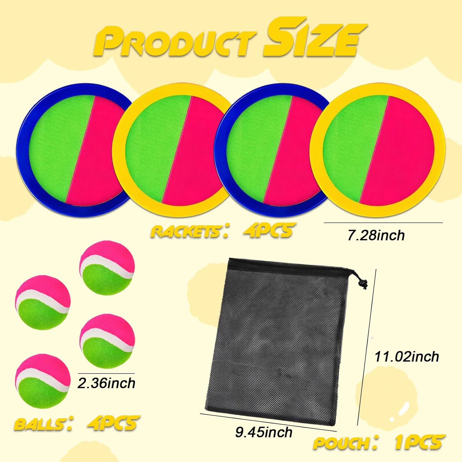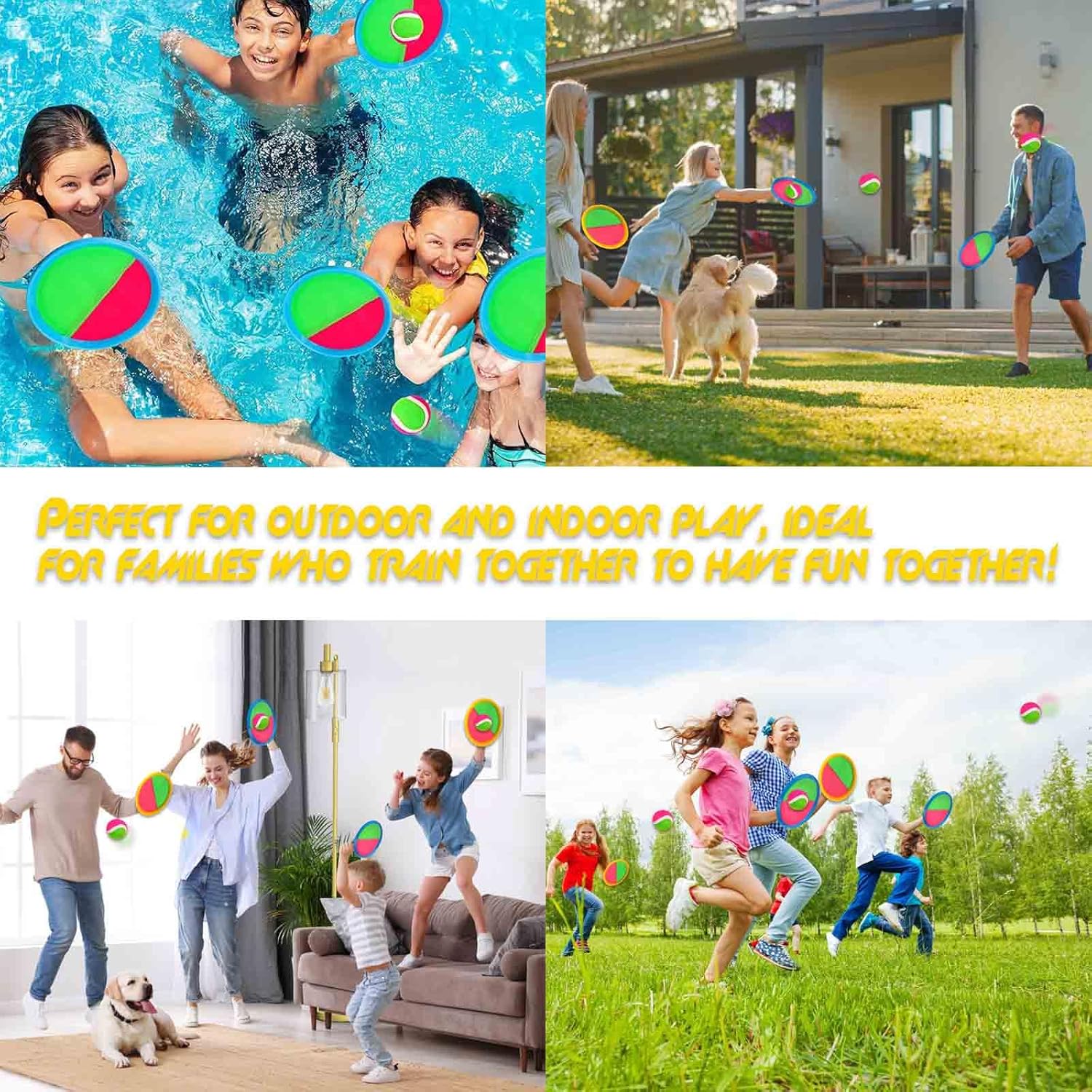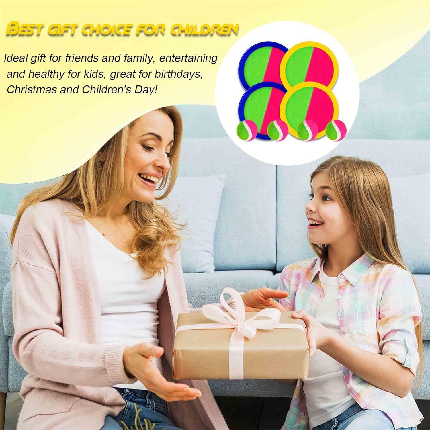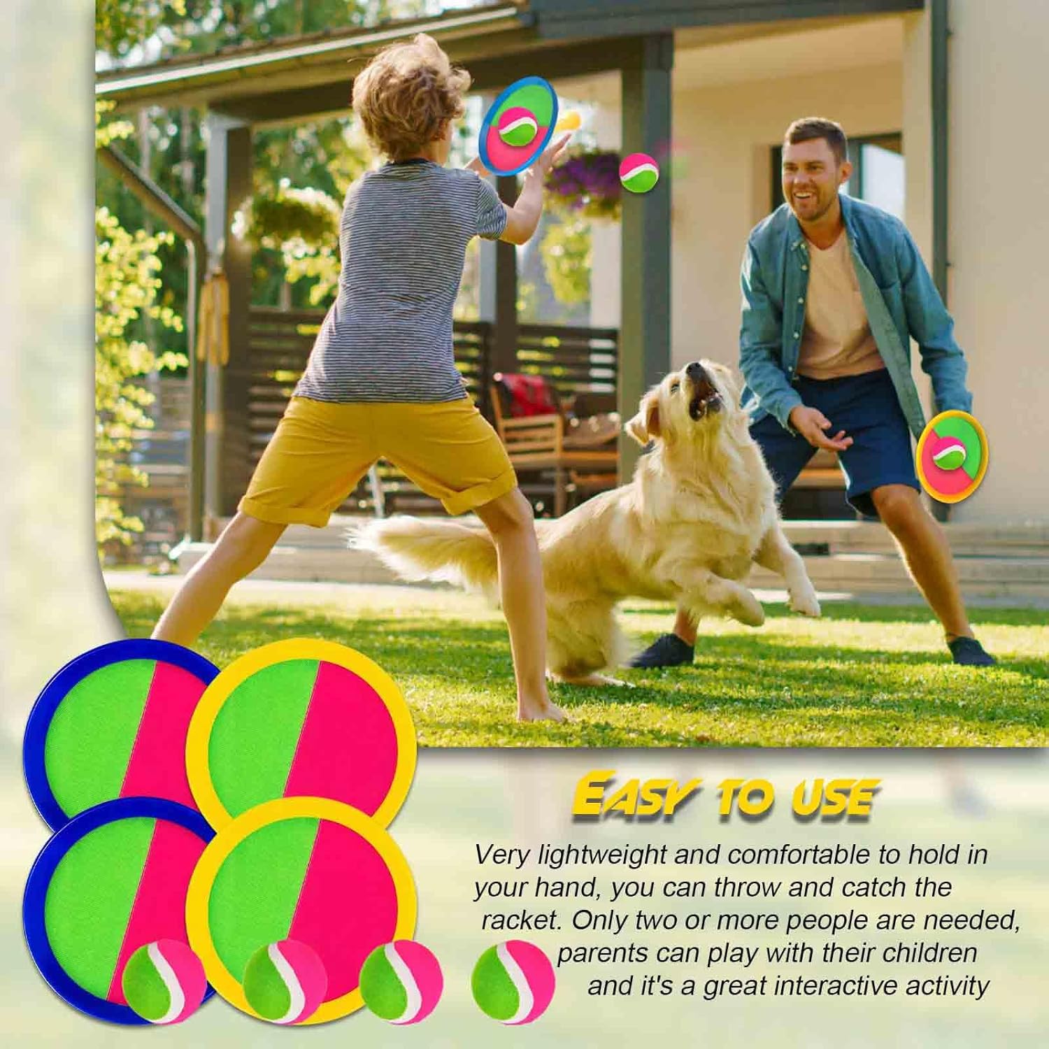 Pacchetto: 1 gioco di palla in per bambini, ogni set contiene 4 dischi di cattura e 4 palline, sufficienti per giocare con la fa Materiali: Realizzati in gomma e nylon di alta qualità, difficili da perdere. Hanno anche chiusure in sul retro, dimensioni regolabili, adatte a bambini e adulti per giocare. Facile da usare: Basta prendere la racchetta e la palla e il bambino può facilmente iniziare. Questo gioco da lancio per bambini allena la coordinazione occhio-mano e i muscoli delle braccia, aiuta il bambino a imparare a lanciare e prendere la palla e migliora i suoi riflessi. Giochi perfetti per l'esterno e l'interno: Il set di giochi da lancio per bambini è dotato di una pratica borsa, comoda da trasportare e riporre. I bambini possono giocare con la palla giocattolo in salotto, sul prato, in giardino o in qualsiasi altro luogo all'interno e all'esterno. Servizio: se avete problemi con il prodotto, vi preghiamo di contattarci in tempo in modo che possiamo offrire una soluzione rapida.