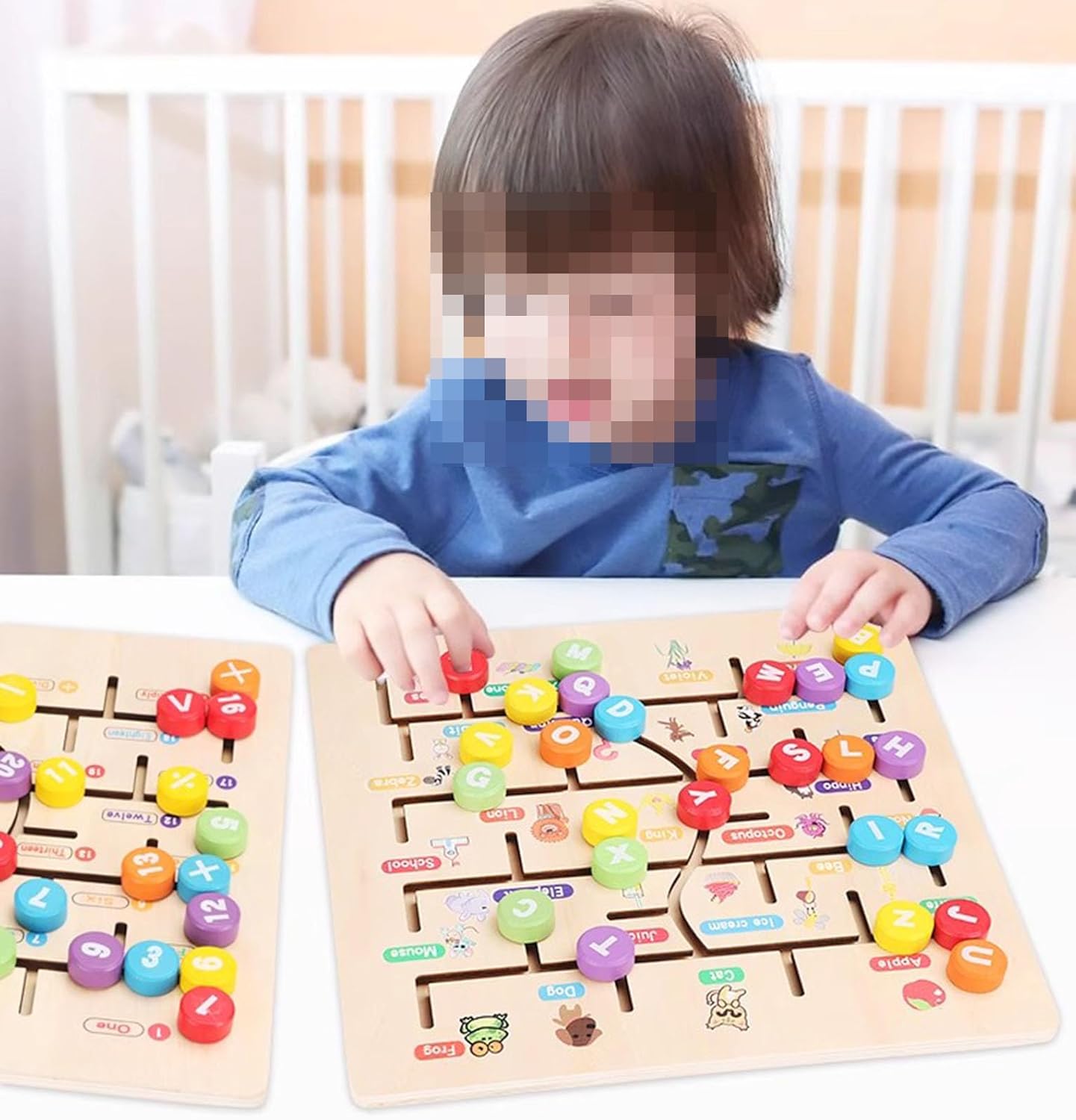 Giocattoli cognitivi: insegnano ai bambini a riconoscere numeri e lettere e migliorano la loro capacità di pensiero matematico e le loro abilità linguistiche. Abbinamento del labirinto: Le piastre di base sono rispettivamente decorate con motivi e parole. Anche i colori di sfondo delle parole hanno colori diversi, corrispondenti ai colori dei pezzi degli scacchi. I bambini possono abbinarli in base ai colori. Le particelle tridimensionali sono più facili da afferrare: rispetto ai tradizionali labirinti con movimento a penna, il nostro labirinto accoppiato è più comodo da usare. Processo di incisione laser: assicurati che il percorso del labirinto sia liscio e privo di sbavature e non danneggi le manine del bambino. La smussatura su tutto il perimetro è liscia e non fa male alle mani: ogni angolo è stato levigato e lucidato per garantire la sicurezza senza sbavature, e puoi sentire la sua consistenza rotonda ad ogni angolo.