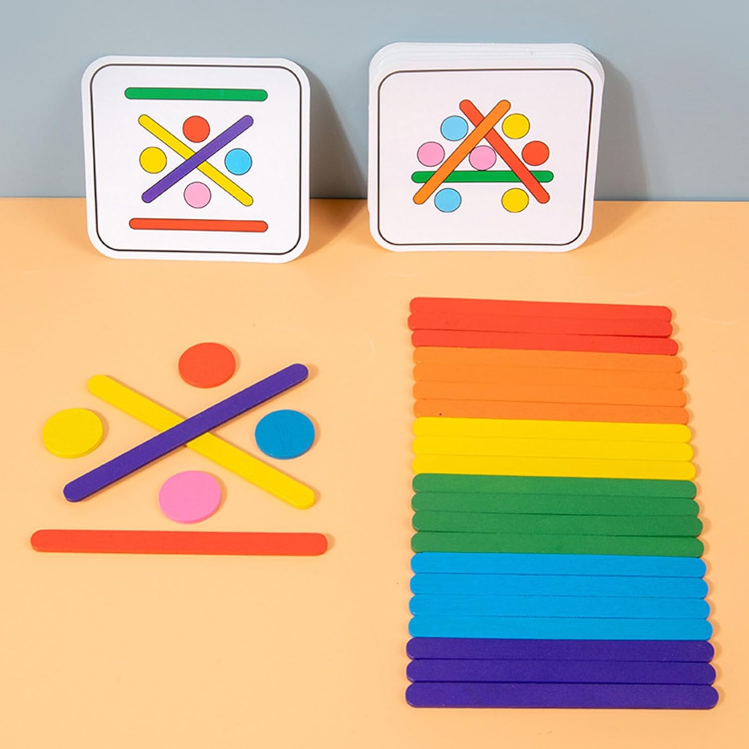 ABBINAMENTO DI STICK COLORATI: il suo design promuove lo sviluppo cognitivo e del pensiero dei bambini attraverso giochi puzzle. Esercita capacità di ragionamento logico e di risoluzione dei problemi, consentendo ai bambini di pensare in modo critico. RICONOSCIMENTO DEL COLORE: è adatto sia a ragazzi che a ragazze, aiutandoli a migliorare il riconoscimento dei colori e le capacità di abbinamento. E i bambini migliorano le loro capacità cognitive sviluppando la coordinazione occhio-mano. MATERIALE IN LEGNO DI TIGLIO: Realizzato con materiali in legno sicuri, il giocattolo garantisce il benessere dei bambini. È privo di sostanze nocive e offre un'esperienza di gioco senza preoccupazioni sia ai bambini che ai genitori. MOLTI MODI DI GIOCARE: è dotato di blocchi di diverse forme e colori, consentendo ai bambini di esplorare varie combinazioni. Sperimentando diverse disposizioni, i bambini possono liberare la loro creatività. INTERAZIONE GENITORE FIGLIO: Ideale per la partecipazione della famiglia, il giocattolo favorisce l'interazione genitore figlio e rafforza il legame tra i membri della famiglia.
