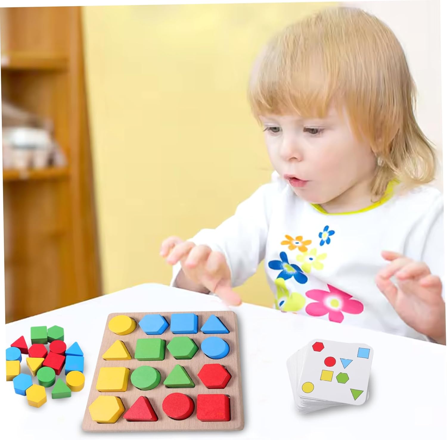 Versatile per tutte le età: adatto non solo ai bambini ma anche agli anziani, questo gioco di abbinamento di forme è un'attività rilassante e coinvolgente per tutte le età..È un ottimo modo per mantenere la mente acuta e divertita. Pezzi dal design accattivante: ogni pezzo del puzzle è progettato meticolosamente con colori vivaci e forme chiare, rendendo facile per i bambini identificarlo e abbinarlo..L'aspetto estetico contribuisce al godimento generale del gioco. Costruzione in legno: costruiti per durare, questi puzzle in legno sono realizzati con materiali ecologici di alta qualità..Il design robusto garantisce che possano resistere per ore di gioco, rendendoli una scelta affidabile per un uso a lungo termine. Design ispirato a Montessori: realizzato pensando ai metodi Montessori, questo gioco incoraggia l'apprendimento pratico e il pensiero indipendente..È ideale per i bambini dai 3 ai 6 anni e favorisce lo sviluppo della prima infanzia attraverso attività interattive e ricche di sensi. Divertimento educativo coinvolgente: questo gioco di abbinamento di forme è progettato per migliorare le capacità cognitive, il riconoscimento dei colori e le capacità di risoluzione dei problemi nei bambini..I puzzle in legno sono perfetti sia per il gioco educativo che per il tempo libero, rendendo l'apprendimento un'esperienza deliziosa.