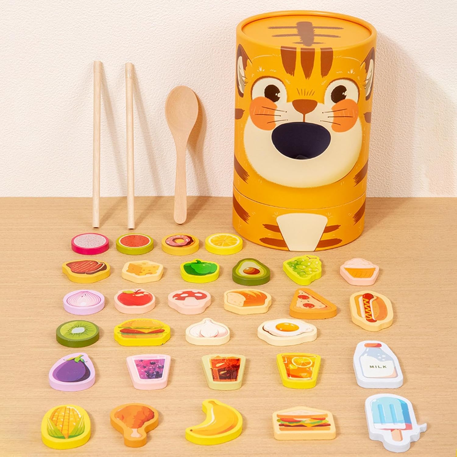 【Sviluppo della concentrazione e delle abilità】: il gioco del cibo finto è progettato per migliorare la concentrazione e le capacità motorie fini mentre i bambini danno da mangiare all'orso, offrendo un'esperienza di crescita divertente ma educativa 【Qualità e】: il giocattolo per l'alimentazione in legno è realizzato in legno massello selezionato per, questo giocattolo presenta motivi chiari e luminosi che sono visivamente accattivanti per i bambini 【Gioco interattivo di alimentazione】: il gioco educativo di alimentazione degli animali coinvolge il tuo bambino con un gioco interattivo di alimentazione degli orsi che migliora le capacità motorie fini 【Varietà di carte alimentari】: questo gioco di alimentazione degli animali include 30 diverse carte alimentari bifacciali con frutta, verdura e dessert comuni. Questa varietà non solo rende il gioco divertente, ma anche educativo, poiché i bambini imparano a conoscere diversi alimenti. 【Pratica scatola portaoggetti】: la scatola di legno funge anche da contenitore portaoggetti, un set da gioco interattivo per l'alimentazione che aiuta a sviluppare buone abitudini organizzative nel tuo bambino, fungendo sia da giocattolo che da soluzione di stoccaggio
