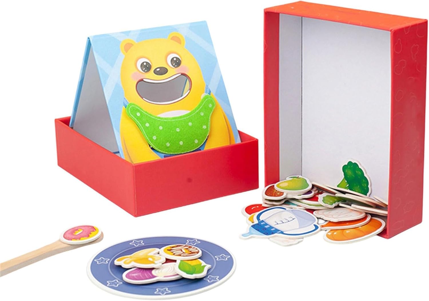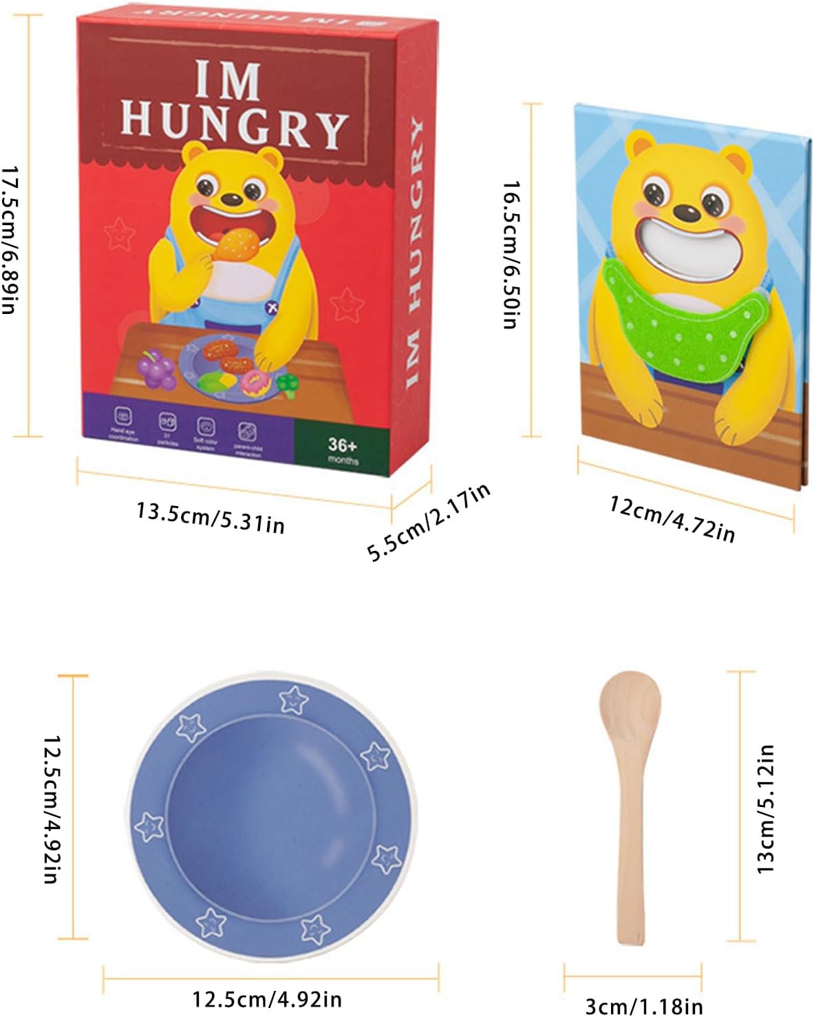 Migliorare l'apprendimento interattivo del tuo bambino con questo giocattolo realistico per l'alimentazione del bambino, design per promuovere la responsabilità e gli amici giocando con e più accessori Perfetto per casa, aula o playdates, giochi di ruolo per bambini l'orso di salotti, scuole materne o dintorni all'aperto mentre praticano routine di cura e riconoscimento alimentare Usa carta e legno amichevoli, questo giocattolo da tavolo contiene oggetti di scena alimentari rimovibili, superfici facili da pulire e una costruzione stabile per giochi fantasiosi sicuri e duraturi Ideale per bambini e genitori che cercano un giocattolo educativo dedicato, i genitori promuovono l'attaccamento dei bambini e allo stesso tempo incoraggiano il lavoro di squadra con gli amici durante l'attività di gruppo Stimolare la crescita cognitiva insegnando il sequenziamento attraverso la fase di alimentazione, migliorare le capacità motorie fini attraverso gli utensili ed espandere il vocabolario con le possibilità di narrazione di cibo