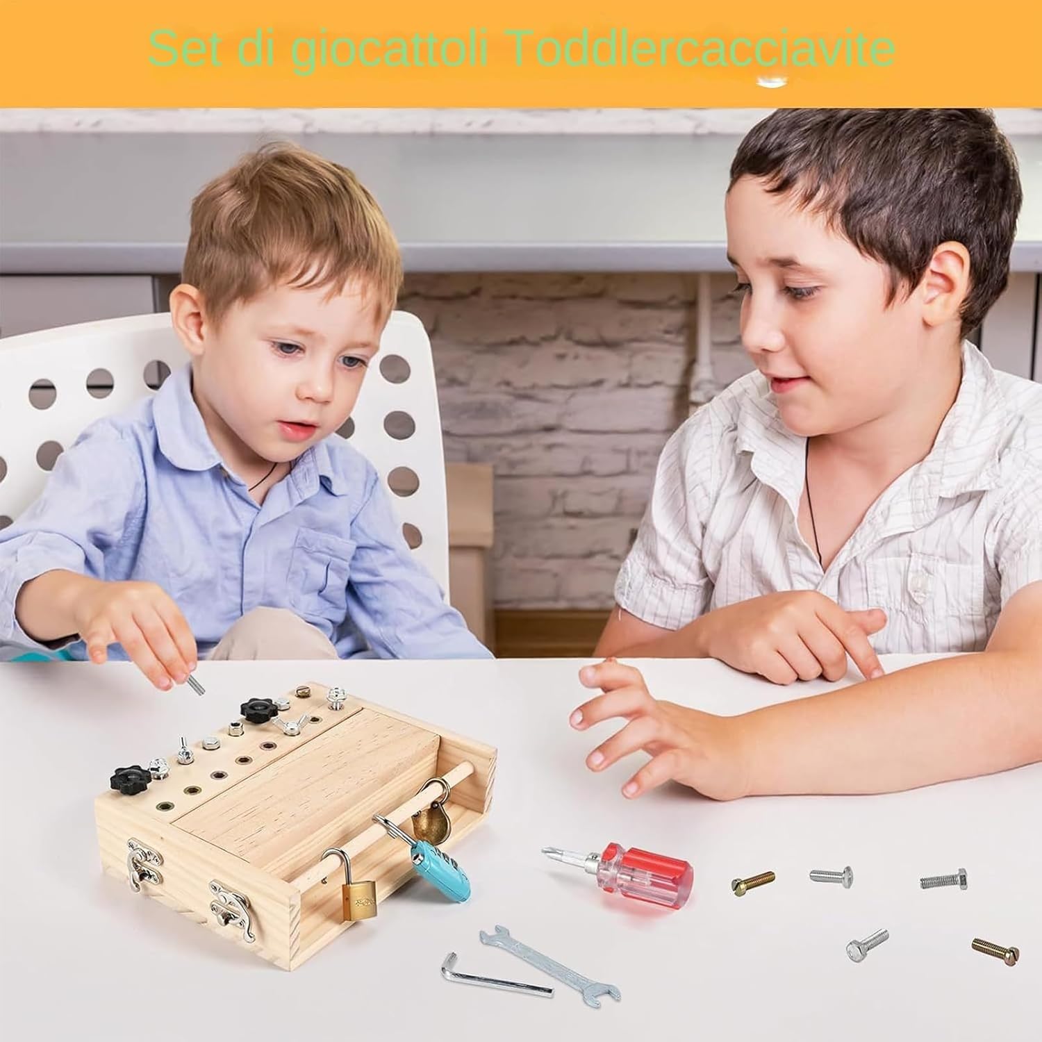 Facile da Portare: Combina portabilità e design compatto per soddisfare le esigenze di gioco in viaggio, rendendo semplice il trasporto e il riporre mentre supporta la mobilità interna per bambini Durabilità Garantita: Combina la costruzione in legno con superfici resistenti all'usura per mantenere l'integrità strutturale, fornendo ritenzione della forma a lungo termine e eccellente durata durante ripetute sessioni di gioco Favorisce il delle Abilità: Grazie a un design orientato all'educazione, questo giocattolo aiuta i bambini a migliorare la coordinazione occhio-mano e affinare le capacità motorie attraverso pratiche divertenti di apertura serrature e avvitamento in un ambiente di apprendimento coinvolgente Gioco Intuitivo: Costruzione in materiale naturale e design con bordi arrotondati assicura parti non removibili per maggiore sicurezza, unendo usabilità e strumenti ergonomici per bambini Regalo Straordinario: Una scelta di ricordo significativo e giocattolo didattico premuroso, è il regalo per compleanni o feste per bambini che amano attività divertenti ed educative durante il gioco.