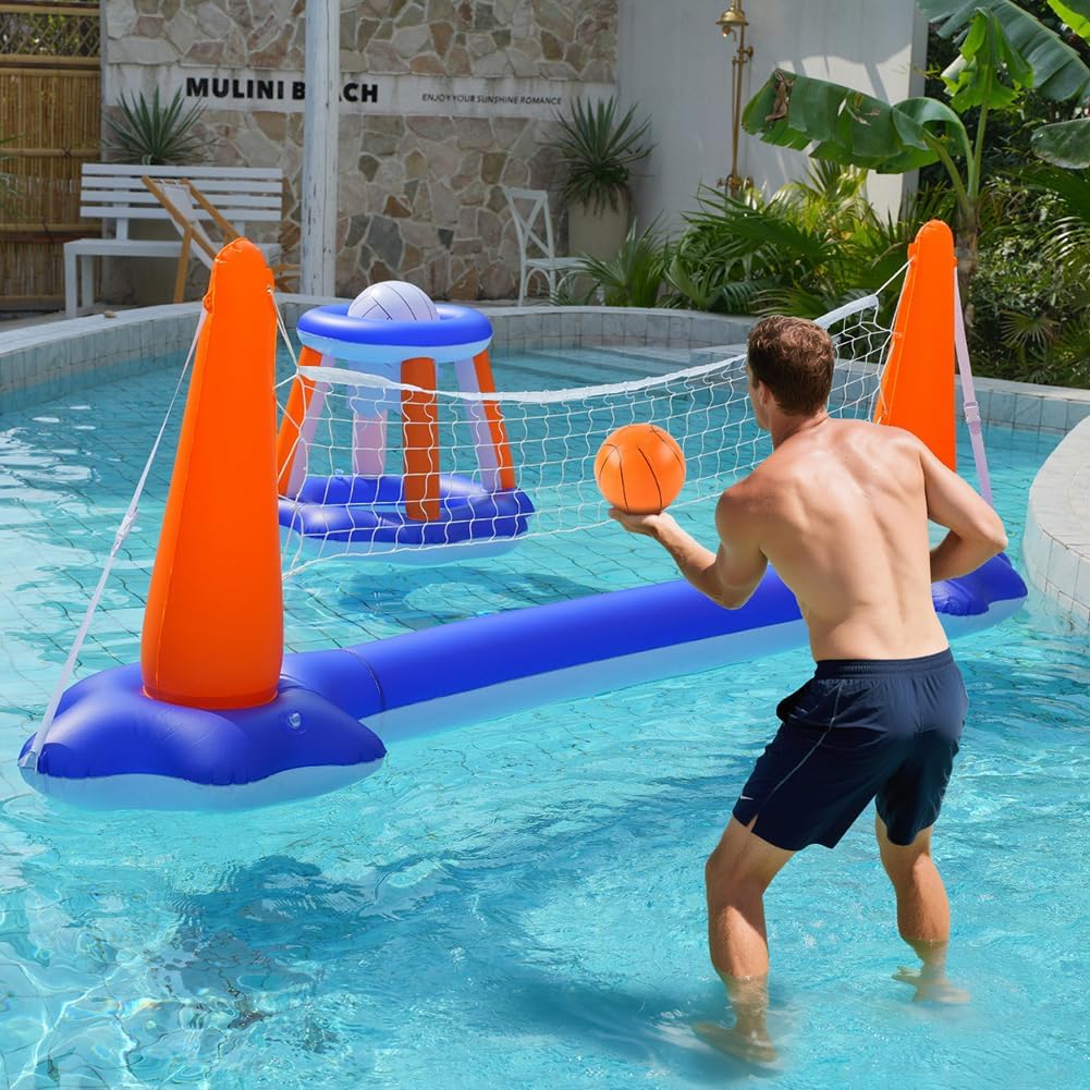 Divertimento due in : questo gioco di piscina gonfiabile con una varietà di costruzioni può essere facilmente commutato tra un cestino da basket e una rete di pallavolo. Doppia tensione e divertimento infinito, ideale for feste in piscina, riunioni di famiglia o competizioni amichevoli. Costruzione non tossica e for famiglie: realizzato con materiali sicuri e privi di sostanze chimiche, questo set di pallavolo galleggiante garantisce un ambiente di gioco spensierato. Bambini e adulti possono giocare in piscina senza esitazione perché la salute e la sicurezza vengono prima. Divertimento in piscina for tutte le fasce d'età: questo giocattolo da nuoto è stato progettato for ispirare sia i bambini che gli adulti e unisce tutti alla gioia e ridono insieme. Perfetto for le riunioni familiari e promuove la cooperazione e il piacere nelle calde giornate estive o feste in piscina del fine settimana. Materiale in PVC robusto: realizzato in PVC di alta qualità, questo set di pallavolo e basket in piscina è resistito da colpi di gioco attivi. La costruzione stabile garantisce una gioia a lunga durata e la rende affidabile for le celebrazioni familiari e le feste in piscina. Semplice assemblaggio gonfiabile e conservazione: il design gonfiabile pratico consente la costruzione rapida e le alette. Facile da trasportare e ritornelli, ideale for il divertimento spontaneo for il bagno o le vacanze in piscina.