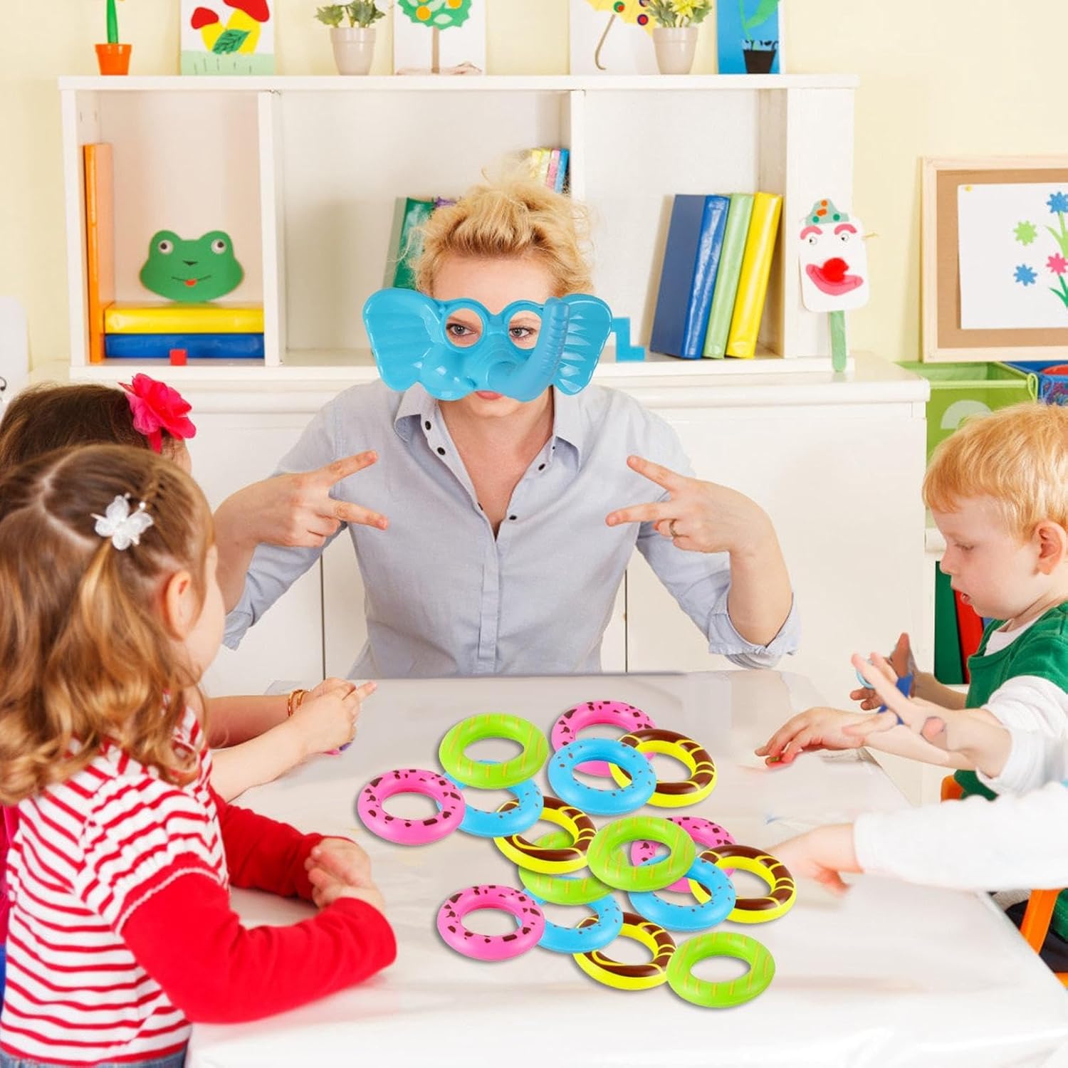 Gioco divertente: questo gioco può stimolare l'attività cerebrale del tuo bambino. Raccogli le ciambelle rapidamente e correttamente, competere con amici e familiari. Gioco multiplayer: il nostro gioco è adatto a 3 o 4 persone. Con 4 maschere di elefante, puoi renderlo un gioco di festa per compleanni, vacanze e altre occasioni. Facile da giocare: assembla tu stesso la faccia dell'elefante, quindi usa il naso dell'elefante per raccogliere le ciambelle visualizzate sulla tua carta d'azione, metti le ciambelle in ordine e il più veloce vince la partita. Puoi staccare la copertina dopo aver giocato. Materiale piacevole: il nostro set di ciambelle è progettato per il. Utilizza materiale ABS sicuro, possono giocare con un amico spensierato. Regalo divertente: li adorerebbe condividere questo gioco con i loro amici durante feste di compleanno o di vacanza. Adatto a tutte le occasioni di vacanza.
