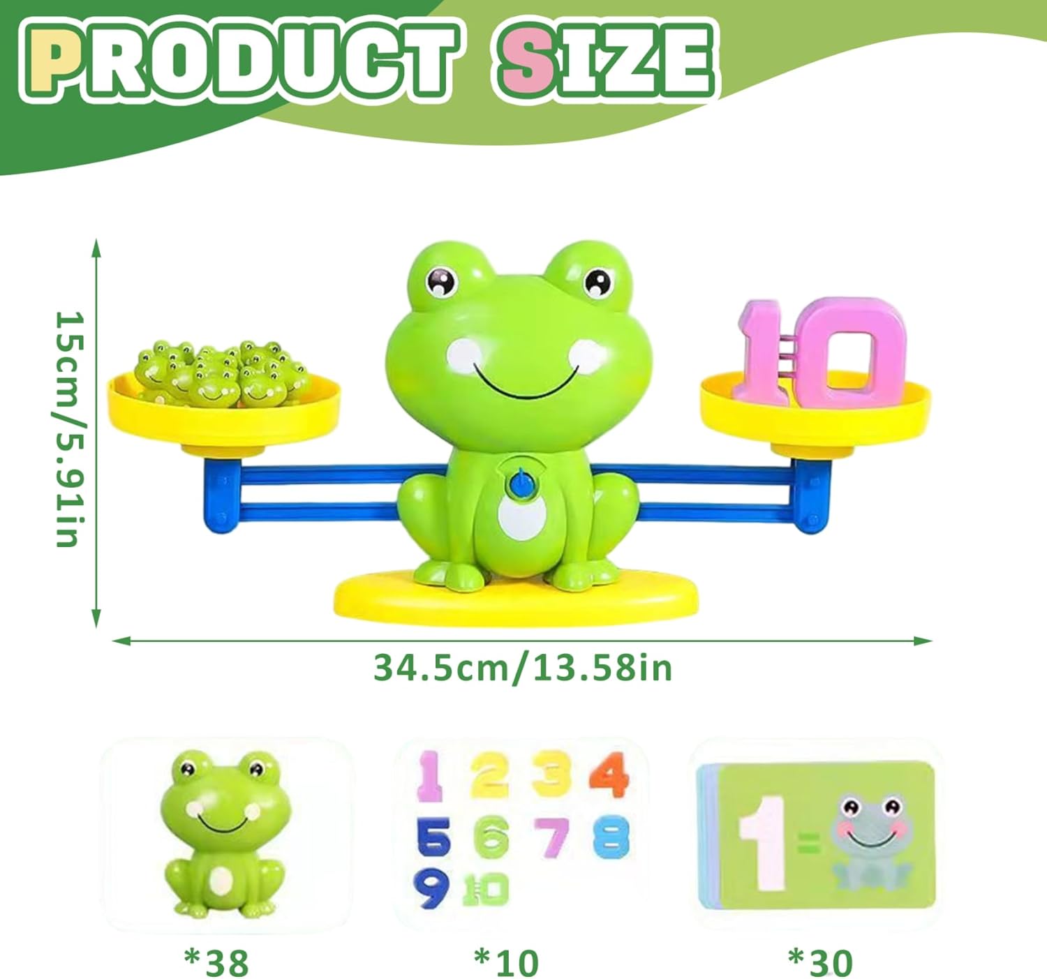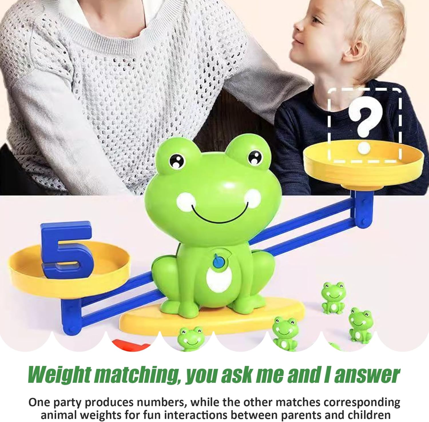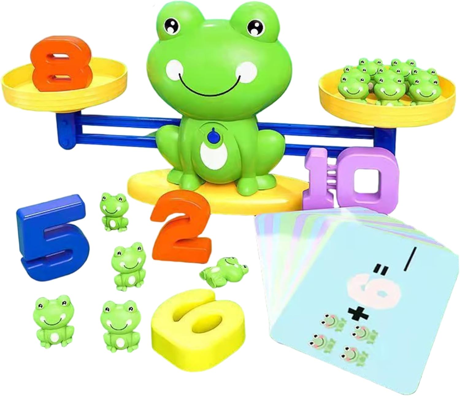 Educativo e divertente: il gioco dell'equilibrio delle rane combina apprendimento e gioco, rendendolo uno strumento eccellente per insegnare concetti matematici di base ai bambini piccoli..Questo gioco avvincente aiuta i bambini a sviluppare capacità di conteggio e riconoscimento dei numeri in modo divertente e interattivo. Ideale per l'educazione all'asilo: perfettamente adatto per le aule dell'asilo, questo gioco è in linea con gli standard educativi della prima infanzia..Supporta lo sviluppo delle competenze matematiche essenziali, rendendolo una preziosa aggiunta a qualsiasi contesto educativo. Esperienza di apprendimento interattivo: dotato di una bilancia in plastica, rane colorate e carte numeriche, questo gioco incoraggia l'apprendimento interattivo..I bambini possono esercitarsi a contare, pesare ed equilibrare, migliorando le loro capacità cognitive e motorie. Design affidabile e sicuro: realizzata in plastica di alta qualità, questa bilancia è affidabile e sicura per i bambini dai 3 anni in su..I bordi lisci e i materiali atossici garantiscono un ambiente di gioco sicuro per i bambini. Versatile e creativo: il gioco può essere giocato in diversi modi, consentendo creatività e adattabilità..Che lo utilizzi per giocare da soli o con gli amici, il Frog Balance Game offre infinite possibilità di apprendimento e divertimento.