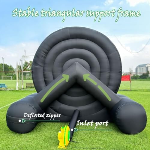 Gioco di calcio gonfiabile Design robusto e durevole: con le sue dimensioni di 3 metri per 3,3 metri, il nostro tabellone è realizzato in tessuto Oxford 210D di alta qualità, resistente all'elettricità statica per una maggiore durata. La tecnica a doppia cucitura garantisce una migliore tenuta all'aria e una maggiore resistenza complessiva, rendendolo costruito per durare. Gioco di calcio gonfiabile: un'entusiasmante combinazione di sport: scopri l'emozione di tirare a freccette, uno sport unico che unisce il brivido del calcio alla strategia delle freccette. Questo bersaglio per freccette extra-large è progettato per gli appassionati di sport adulti ed è dotato di una superficie autoadesiva per un gioco senza sforzo. Gioco di calcio gonfiabile: montaggio semplice e stoccaggio compatto: prova un montaggio rapido e semplice con questo bersaglio gonfiabile per freccette che si gonfia in soli 2 minuti. Basta chiudere la cerniera prima di gonfiarlo e, quando è il momento di riporlo, si ripiega comodamente in un formato compatto per un facile stoccaggio. Gioco di calcio gonfiabile versatile: calcia palloni da calcio pelosi sull'enorme bersaglio da freccette da 3 metri per segnare punti, creando un'esperienza divertente e coinvolgente per riunioni di famiglia, eventi scolastici, feste in giardino o attività di team building. Crea le tue regole e tieni traccia dei punteggi per ore di divertimento. Set di accessori completo per gioco di calcio gonfiabile: questo set di freccette include un soffiatore elettrico, una pompa a pedale, birilli, punte, corda, telo di riparazione, borsa portaoggetti e sacco di sabbia. Questi accessori offrono tutto il necessario per una piacevole giornata di divertimento, garantendo al contempo facilità di montaggio e stoccaggio.