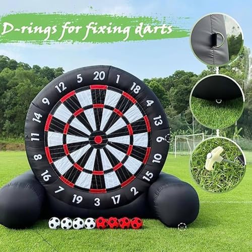 Gioco di calcio gonfiabile: installazione rapida e semplice: il potente soffiatore da 370 W gonfia il bersaglio per freccette in soli 3 minuti. Basta chiuderlo con la cerniera prima di gonfiarlo. Si sgonfia facilmente e occupa solo 0,3㎡ una volta piegato. La confezione include una comoda borsa per il trasporto e un set completo di accessori, tra cui picchetti antigraffio e sacchi di sabbia per un doppio fissaggio e resistenza al vento. È necessario un gonfiaggio continuo durante il gioco. Gioco di calcio gonfiabile Costruzione professionale e durevole: realizzato in tessuto Oxford antistatico 210D con cuciture doppie, questo bersaglio gonfiabile per freccette è progettato per essere resistente all'usura e agli strappi. La sua struttura triangolare migliora la stabilità del 70% e il bersaglio autoriparante presenta un'elevata adesività per una facile rimozione senza danneggiare le palline. Gioco da calcio gonfiabile: opzioni di gioco versatili: con oltre 15 modi creativi di giocare, questo bersaglio gonfiabile per freccette include 8 palloni da calcio in feltro e supporta varie attività all'aperto come calci, lanci, tiri e modalità competitive. Goditi giochi originali ed esclusivi e un divertimento senza fine, adatto per gare di freccette, fuoricampo, golf e altro ancora. Bersaglio per freccette adesivo migliorato per gioco di calcio gonfiabile: niente più preoccupazioni per le freccette che cadono. Questo bersaglio è appositamente progettato per la massima aderenza e una presa superiore, rendendo facile anche per i giocatori più piccoli recuperare le freccette dal bersaglio. Pacchetto completo di accessori per il gioco del calcio gonfiabile: il set di freccette gonfiabili è dotato di un grande bersaglio gonfiabile per freccette da calcio, un soffiatore elettrico, una pompa da calcio, birilli, picchetti, corde, telo di riparazione, borsa per il trasporto e sacchi di sabbia per tutte le tue esigenze di gioco.