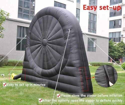 Bersaglio da calcio gonfiabile con freccette dal design innovativo e sicuro: caratterizzato da un esclusivo design a forma di X sul retro, questo bersaglio gonfiabile per freccette sfrutta i principi di stabilità triangolare, garantendo stabilità e resistenza ai colpi di vento. Questo design studiato nei minimi dettagli si concentra sulla praticità e sulla sicurezza per tutti gli utenti. Bersaglio gonfiabile per freccette da calcio: maggiore durata e stabilità: il nostro bersaglio gonfiabile per freccette da calcio misura 3 m x 3 m (larghezza x altezza) ed è realizzato in tessuto Oxford 210D di alta qualità per prevenire l'elettricità statica e garantire una maggiore resistenza all'usura. Le giunture a doppia cucitura migliorano la tenuta all'aria e la durata, rendendolo una scelta affidabile per un uso ripetuto. Freccette da calcio gonfiabili: montaggio rapido e semplice: di' addio al montaggio complicato! Basta collegare il soffiatore, gonfiare il bersaglio e chiudere la cerniera per essere pronti a giocare in pochi minuti. Con 8 palloni da calcio gonfiabili inclusi, il divertimento senza fine è a portata di mano. Piega e riponi facilmente per un intrattenimento portatile ovunque tu vada. Freccette da calcio gonfiabili. Applicazione versatile: questo gioco di freccette da calcio gonfiabile è perfetto per chi vuole migliorare le proprie abilità o per le squadre che competono per ottenere punteggi elevati. Che si tratti di scatenare rivalità familiari o di promuovere il lavoro di squadra, questa attività promette ore di divertimento in cortili, palestre, scuole, eventi comunitari o ambienti aziendali. Pacchetto completo con bersaglio gonfiabile per freccette da calcio: il set da 3 x 3 metri (larghezza x altezza) include un soffiatore da 350 W, 8 palline in velcro, 8 goblin, 4 sacchi di sabbia, 1 pompa, 4 corde, 4 toppe di riparazione e 1 martello da terra. Scegli il gioco sportivo con bersaglio per freccette per rendere più coinvolgenti i tuoi incontri, accendere la competizione e creare ricordi di divertimento duraturi.