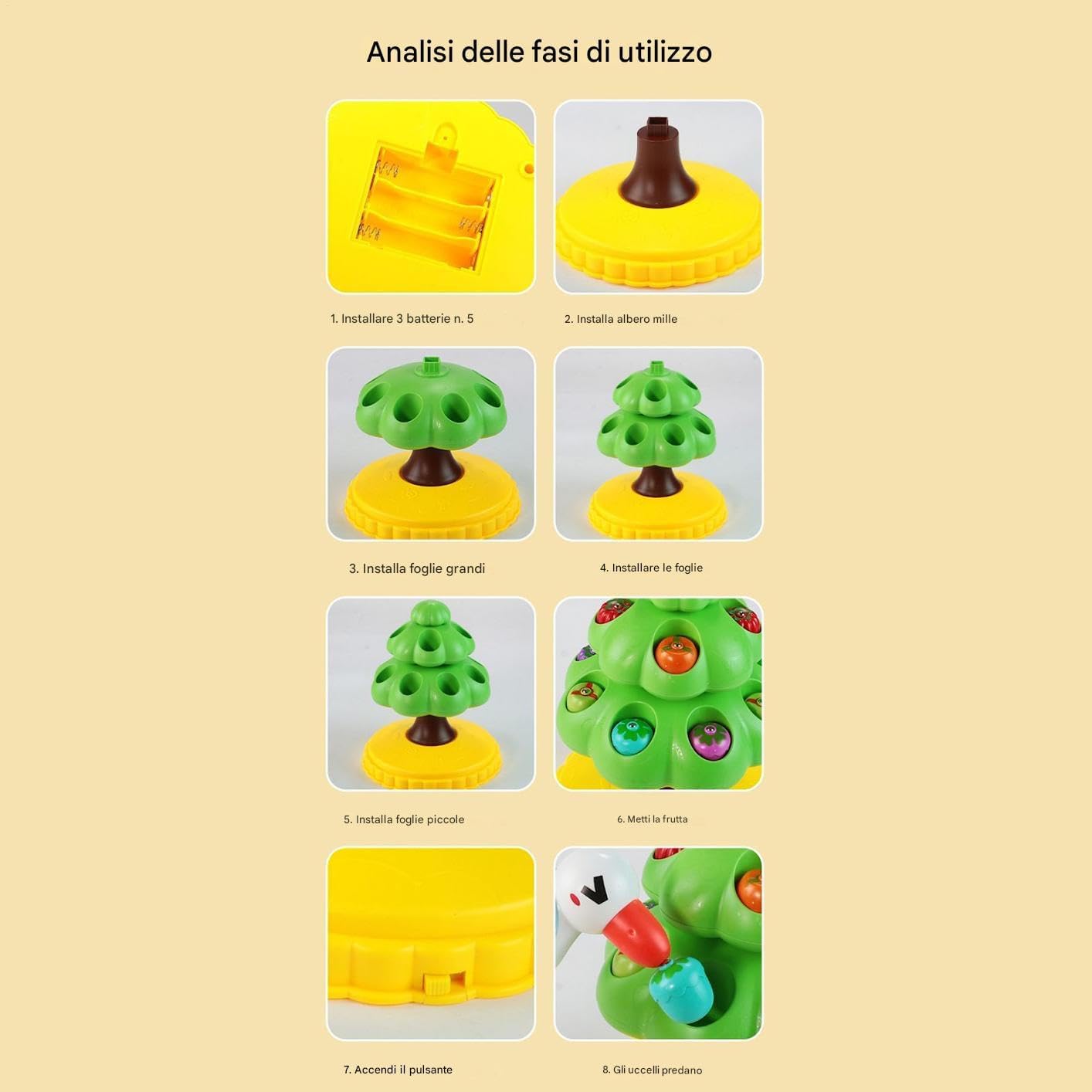 Design Accattivante: Giocattolo da con picchio magnetico per attività interattive che simulano movimenti naturali, potenziando la coordinazione occhio-mano e affinando la precisione di presa durante il gioco coinvolgente Stimolo Mentale: Attraverso il riconoscimento di forme di frutta e attività di ruolo, questo gioco di attiva la mente dei bambini, favorendo la crescita intellettiva introducendo concetti base su piante e animali in modo interattivo e piacevole Praticità garantita: Rafforza il controllo motorio con assemblaggio dettagliato, nutrendo processi logici e migliorando riconoscimento spaziale, bilanciando intrattenimento e benefici evolutivi per l'infanzia Interattività Coinvolgente: Combinazione di luci, suoni e movimento rotatorio a tre velocità stimola l'esplorazione tattile e visiva, incoraggiando lo sviluppo cognitivo durante il gioco Migliora Abilità: Rinforza la coordinazione occhio-mano attraverso attività progressive che sviluppano competenza operativa, ideale per esperienze di gioco educativo adatte a tutte le età durante momenti di divertimento interattivo