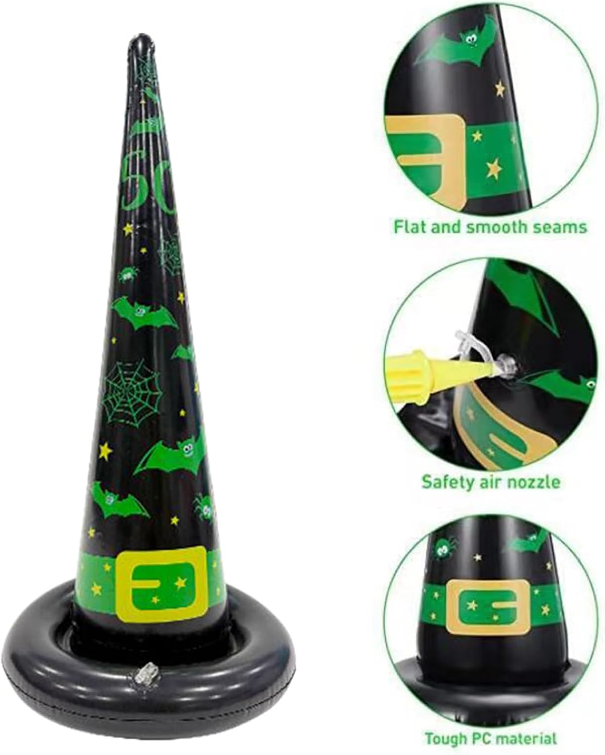 Intrattenimento Familiare Semplice: Il gioco del lancio degli anelli di Halloween è progettato per coinvolgere i bambini in un'attività facile ma divertente che affina la coordinazione occhio-mano. Crea opportunità per rafforzare i legami familiari e condividere risate durante le celebrazioni di Halloween o momenti rilassati. Questo gioco è accessibile a tutte le età e promuove un'intrattenimento pratico per la famiglia, enfatizzando l'interazione e il gioco condiviso. Aggiunta Divertente: Caratterizzato da stampe incantevoli di fantasmi e zucche, il gioco di lancio Halloween fornisce intrattenimento interattivo che aggiunge un'atmosfera vivace di Halloween. Ottimo per ravvivare feste e celebrazioni adatte alle famiglie, contribuisce a creare un'ambiente gioioso e spensierato, ideale per momenti di divertimento condiviso. Portatile e Facile da Riporre: Con la capacità di piegarsi in modo compatto e supportare gonfiaggio e sgonfiaggio rapidi, il gioco del lancio del cappello da assicura un trasporto agevole e risparmio di spazio. per divertimento in giardino o setup di intrattenimento in viaggio, offre praticità suprema grazie al design ottimizzato. La sua natura portatile lo rende un compagno affidabile per momenti di gioco ovunque, massimizando la fruibilità senza ingombri. Gioco Versatile per Halloween: Progettato per essere multifunzionale, funziona sia come prop per giochi durante gli eventi che come simpatico festivo. Aumenta l'energia delle feste ed è una pensata gradita come ricordo o per gli ospiti durante le feste a tema. Assenza di Bordi Appuntiti: Grazie all'utilizzo di materiale di alta qualità sicuro per i bambini, il gioco offre una costruzione morbida e leggera senza spigoli , garantendo un'attività piacevole e sicura per i bambini sia in interno che in esterno.